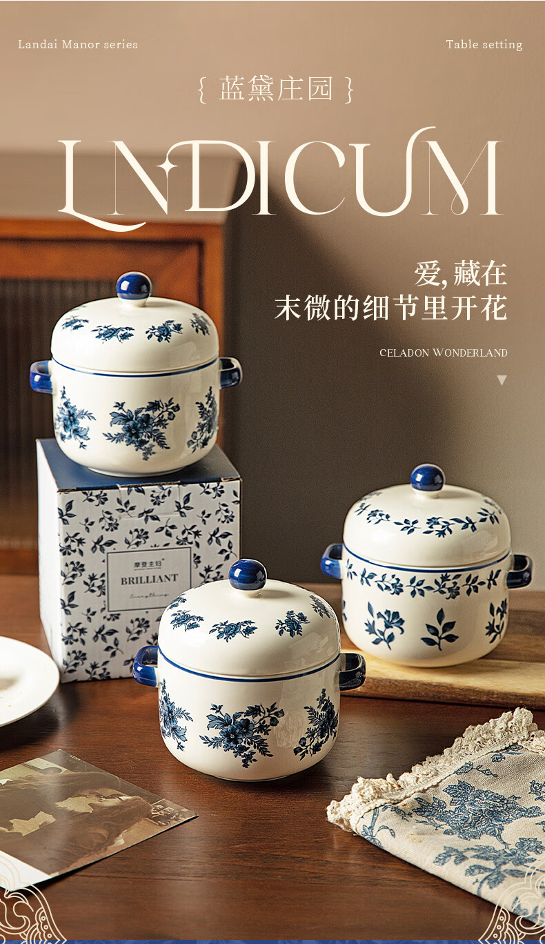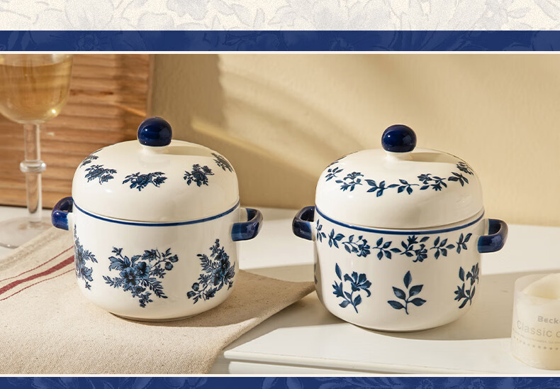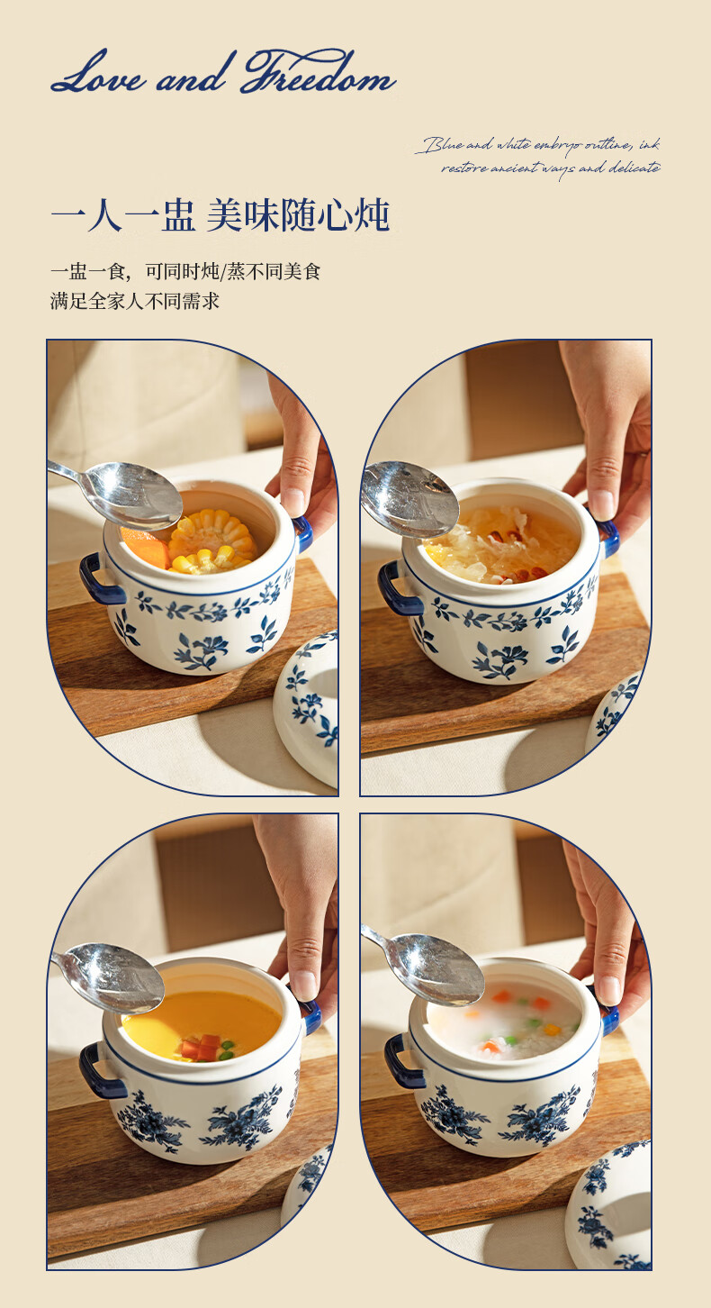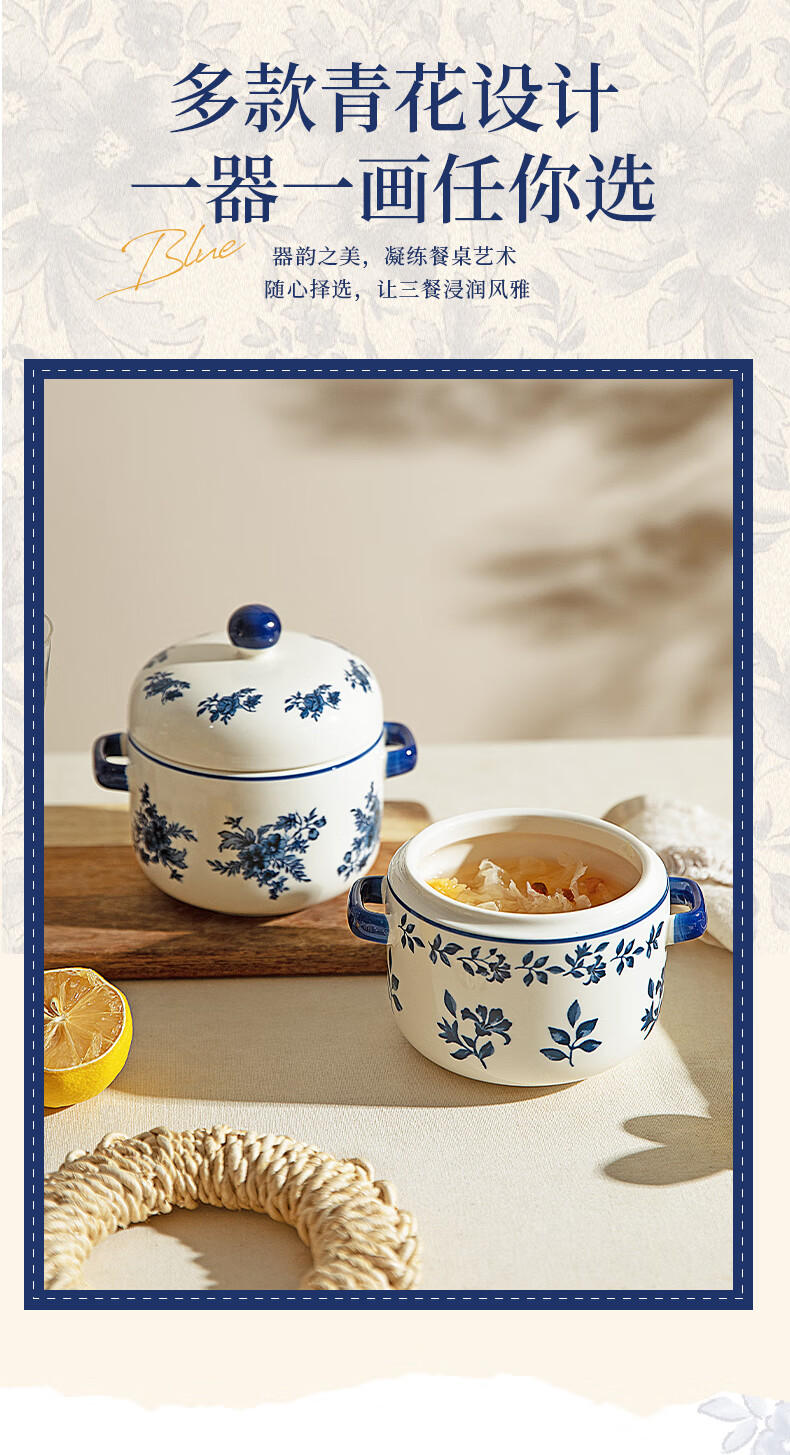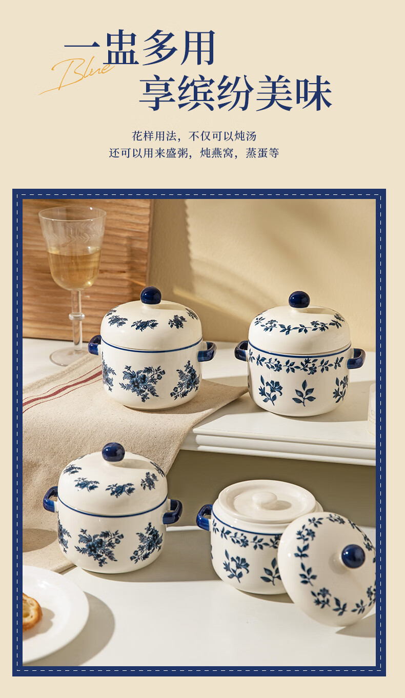 Modern Housewife Landai Manor Stew Cup Water-proof Household Ceramic Steaming Cup Stew Pot One-person Bird's Nest Soup Small Crock Pot Landai Manor Flower Mirror Stew Cup 550ml