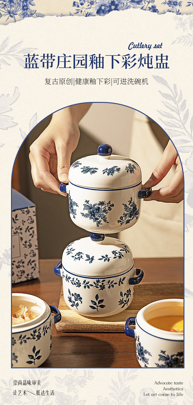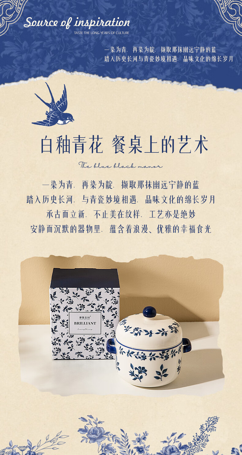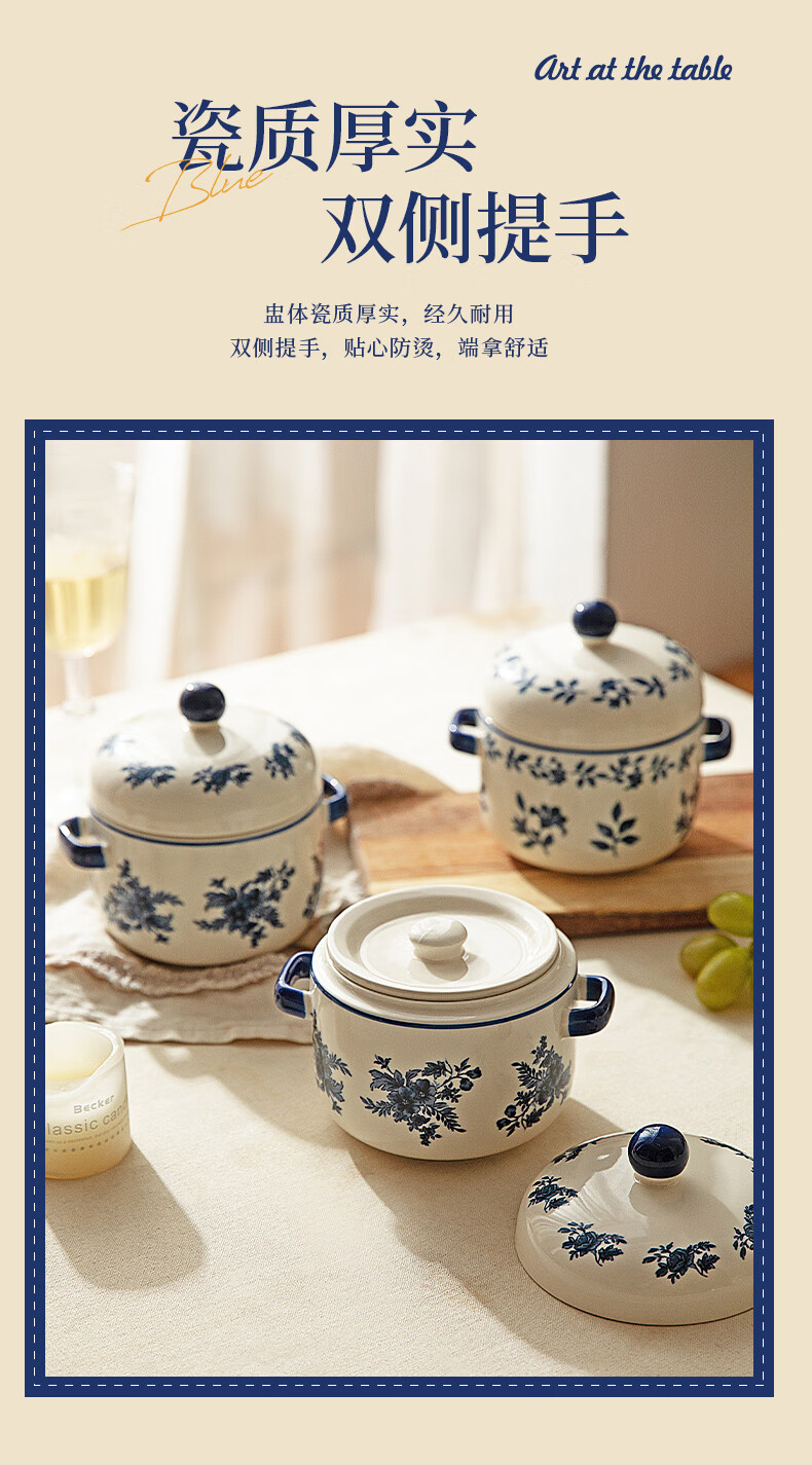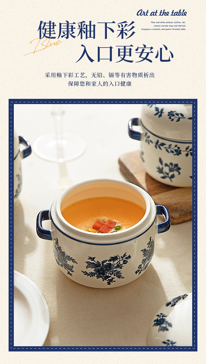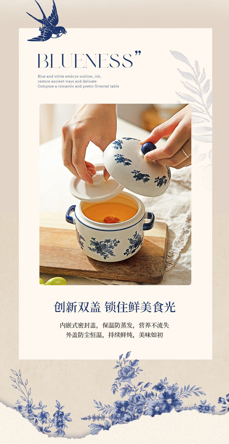 Modern Housewife Landai Manor Stew Cup Water-proof Household Ceramic Steaming Cup Stew Pot One-person Bird's Nest Soup Small Crock Pot Landai Manor Flower Mirror Stew Cup 550ml