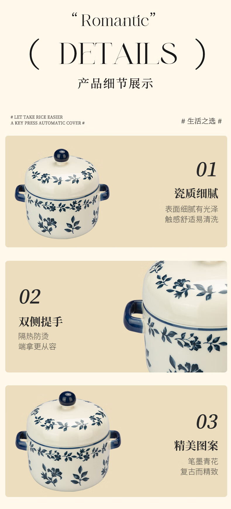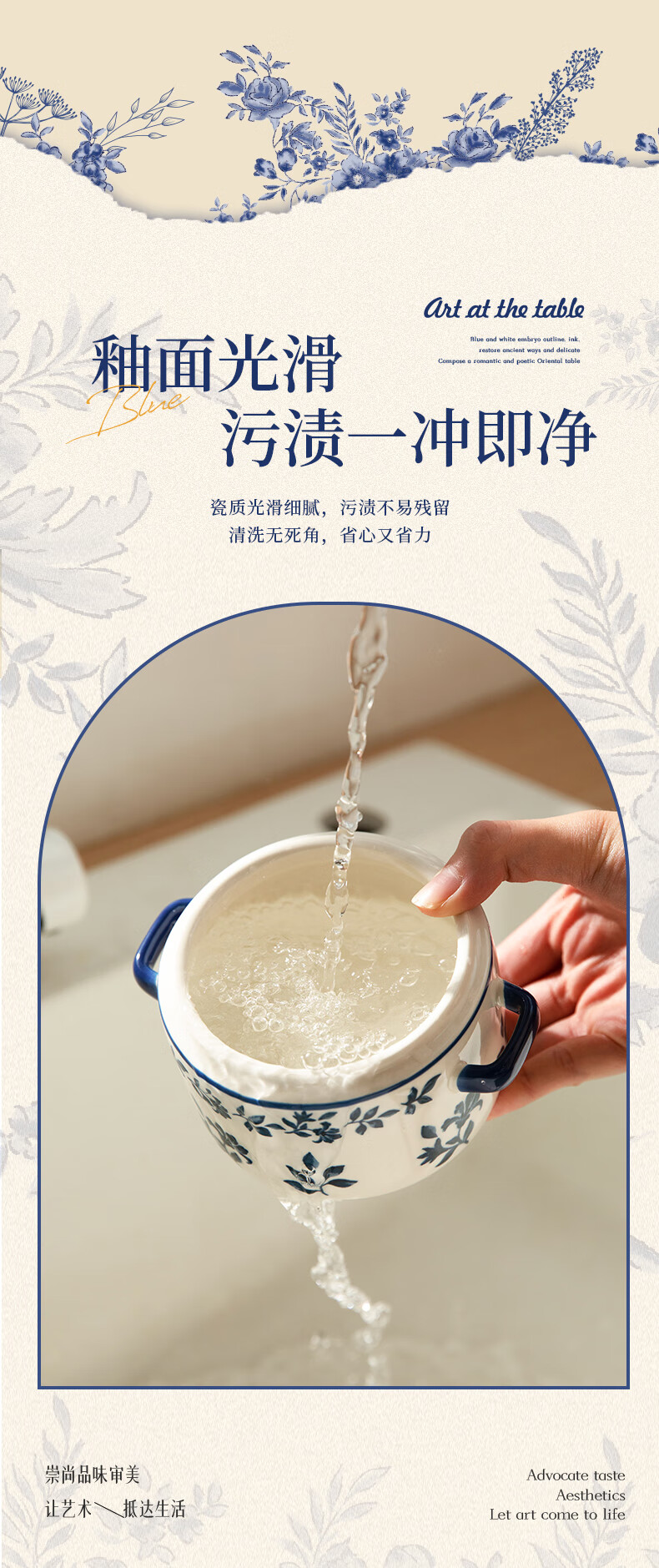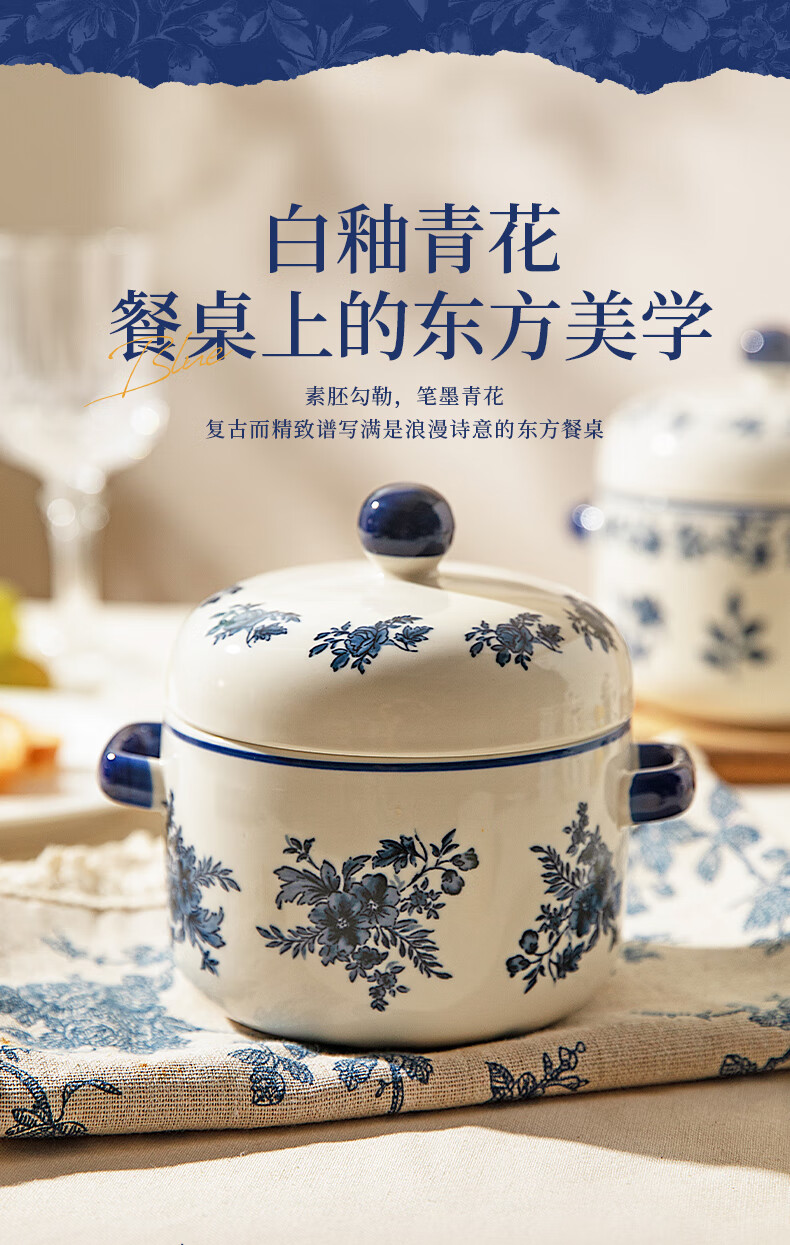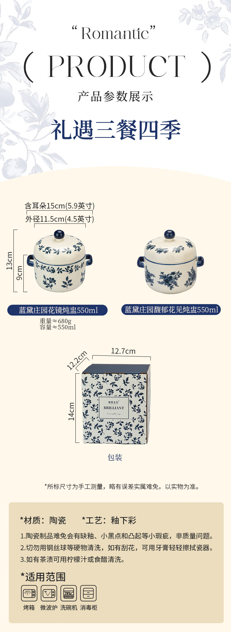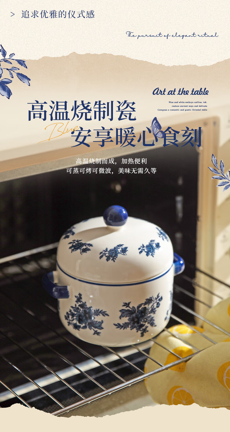 Modern Housewife Landai Manor Stew Cup Water-proof Household Ceramic Steaming Cup Stew Pot One-person Bird's Nest Soup Small Crock Pot Landai Manor Flower Mirror Stew Cup 550ml
