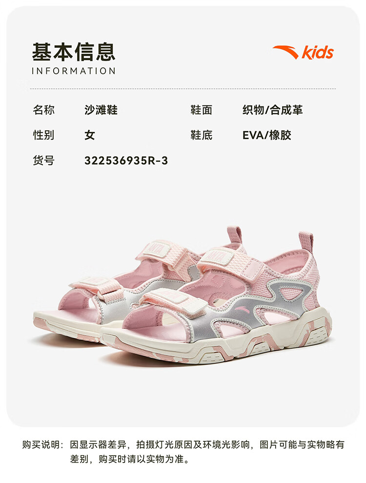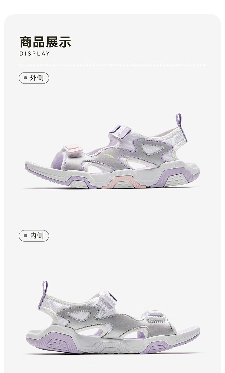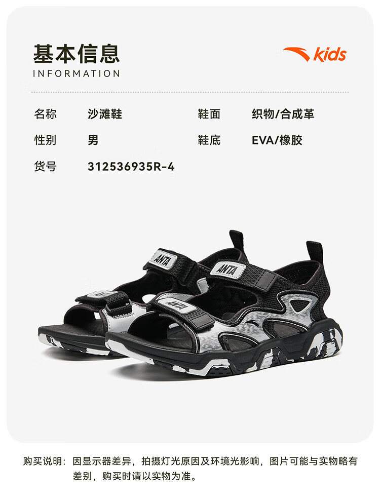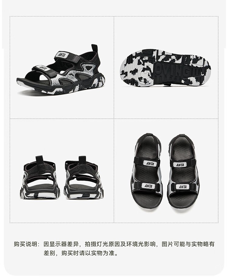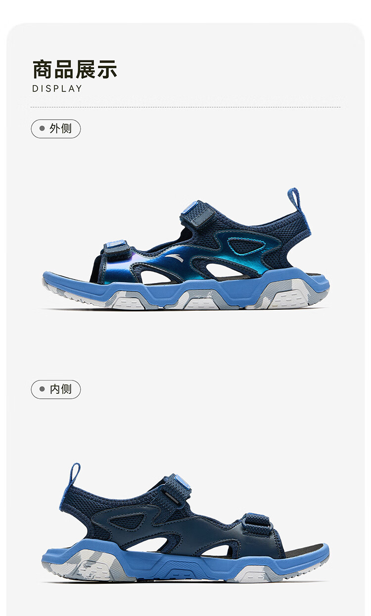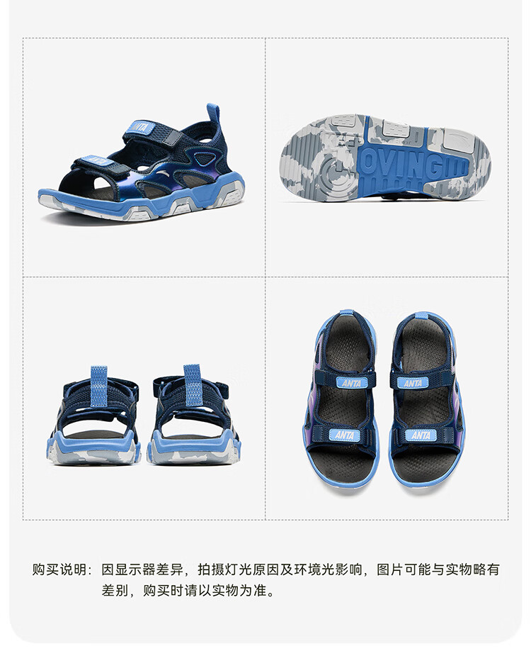 Anta children's sandals, men's and women's shoes, 25-year summer Rubik's cube sandals, outdoor comfortable open-toe Velcro beach shoes, men's model, dark blue/dissolved water blue-1 33, shoe inner length 20.5cm