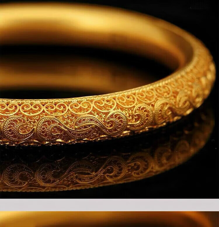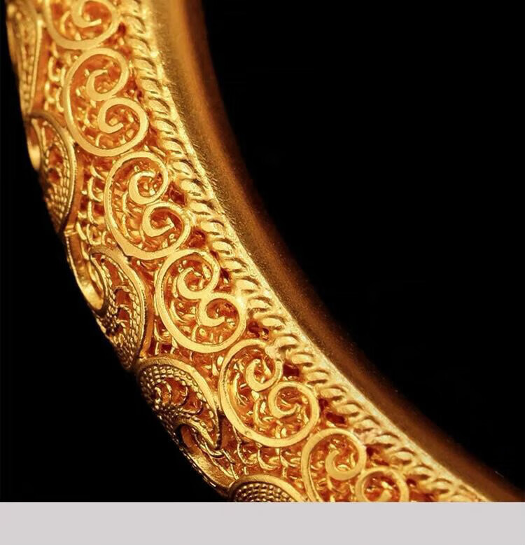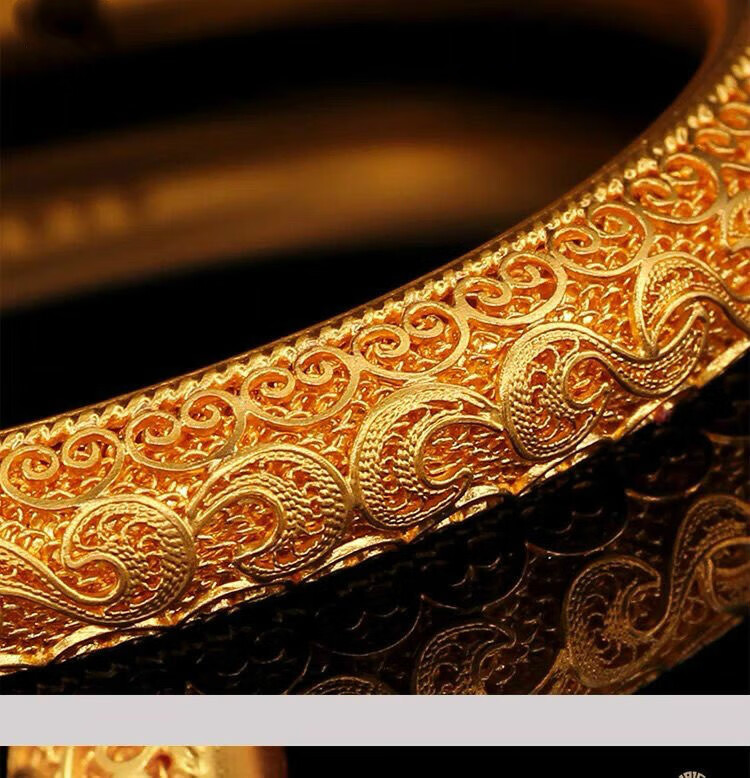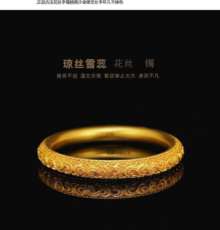 Xinxiangdu Bracelet Wedding Ancient Method Bracelet Filigree Bracelet Vietnamese Sand Gold Hollow Women's Bracelet Permanent Colorless Bracelet National Style Dragon and Phoenix Pair (Open) (With Gift Box)
