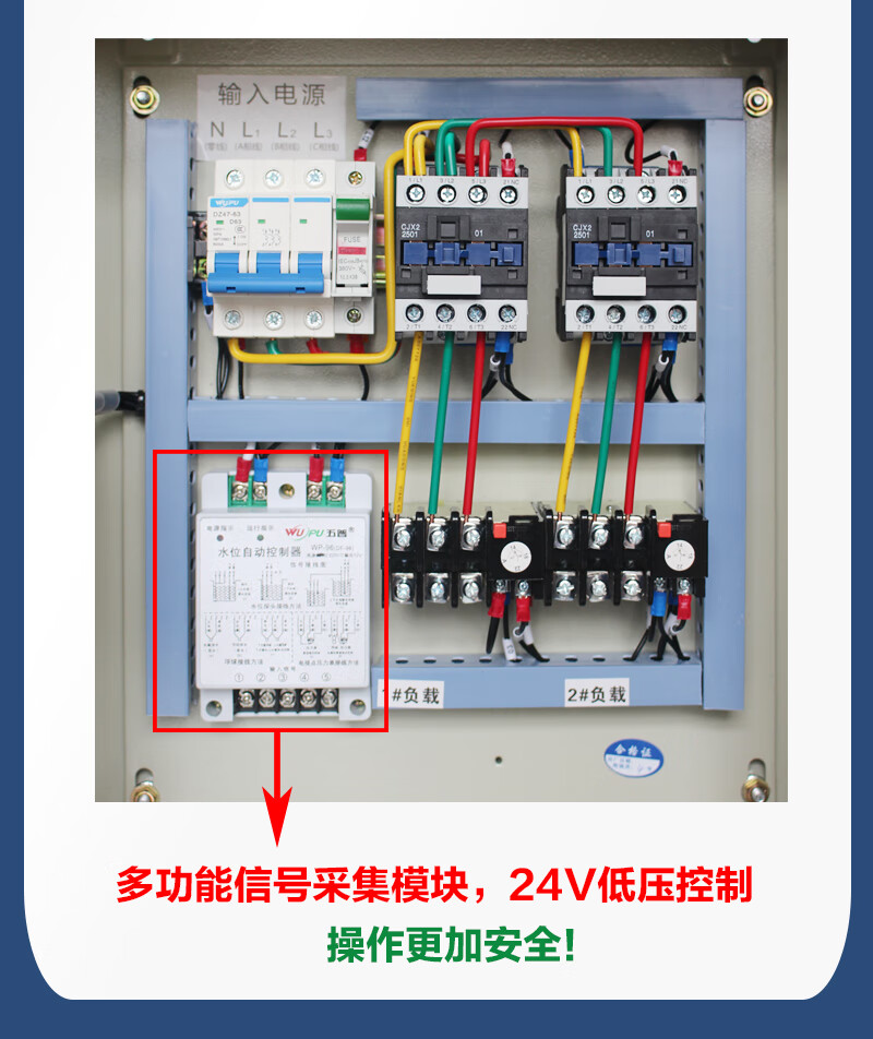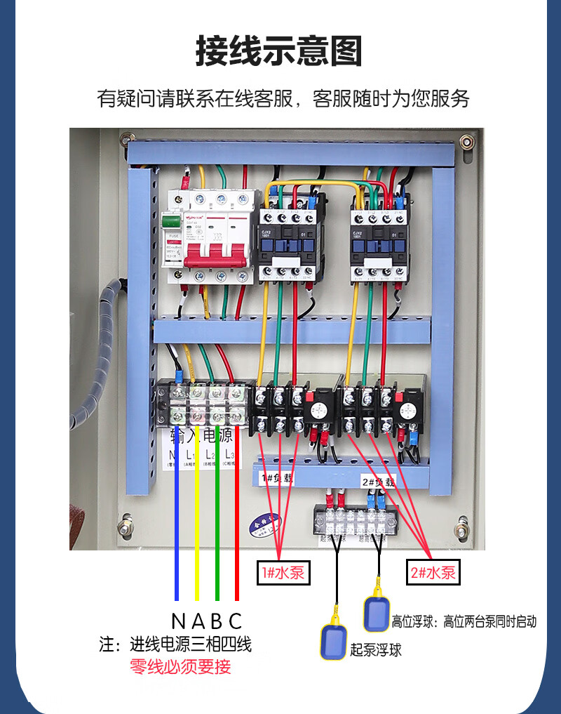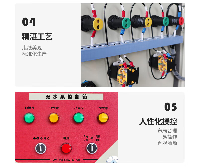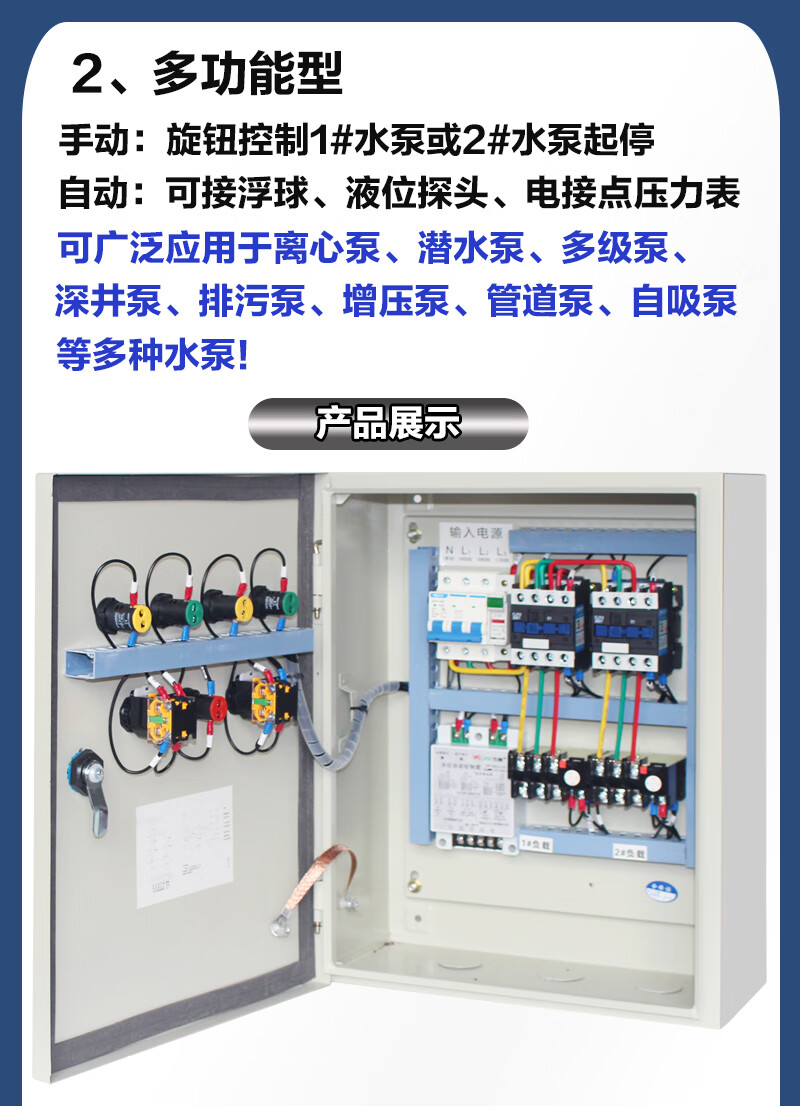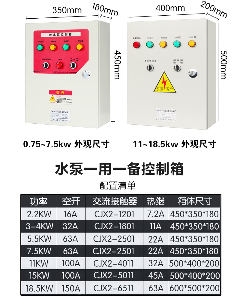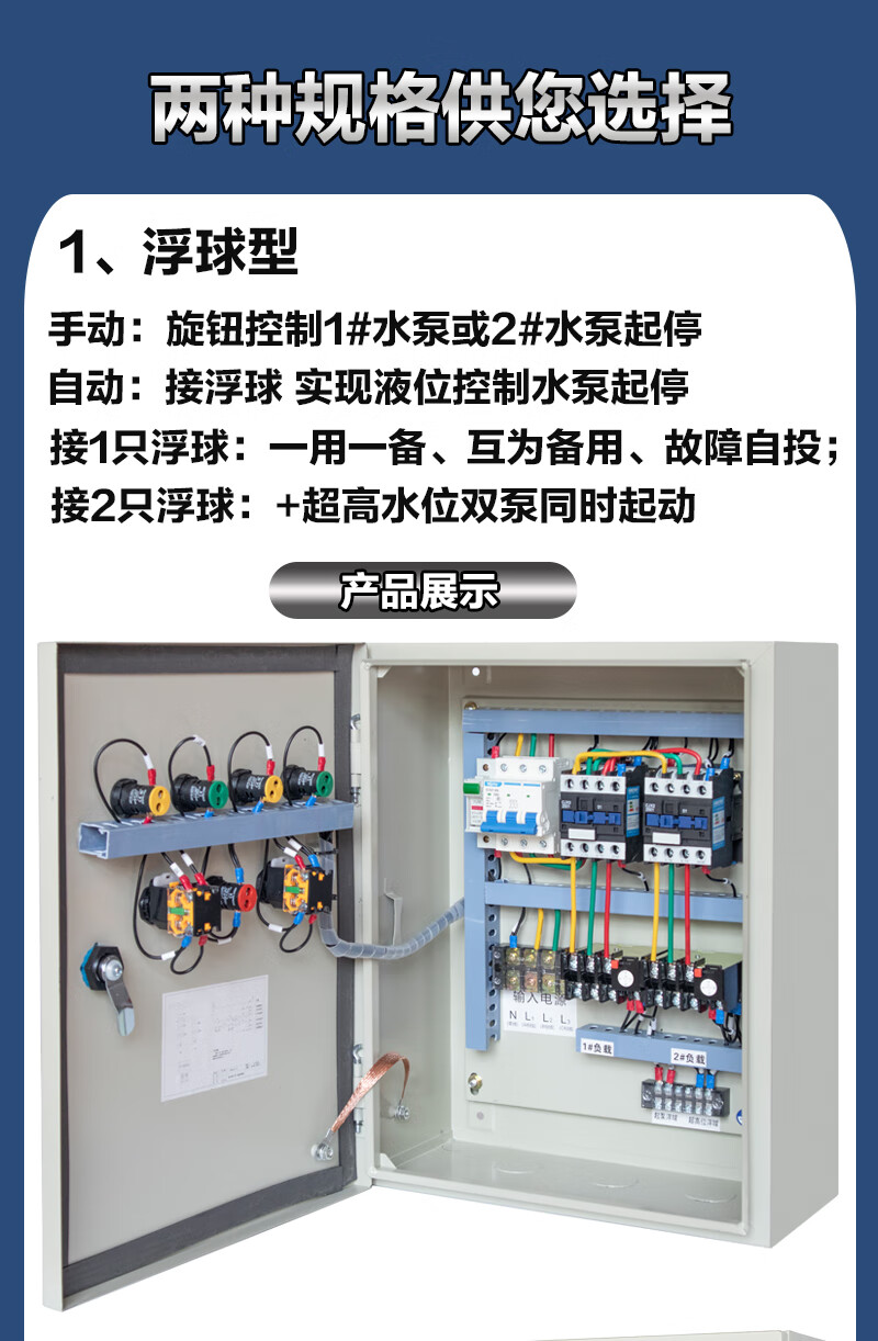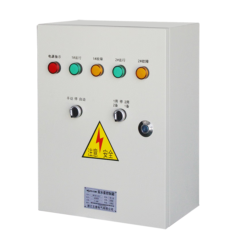 Water pump control box, one use and one spare, distribution box, sewage discharge, double water pump control cabinet, float level automatic sewage pump KW red