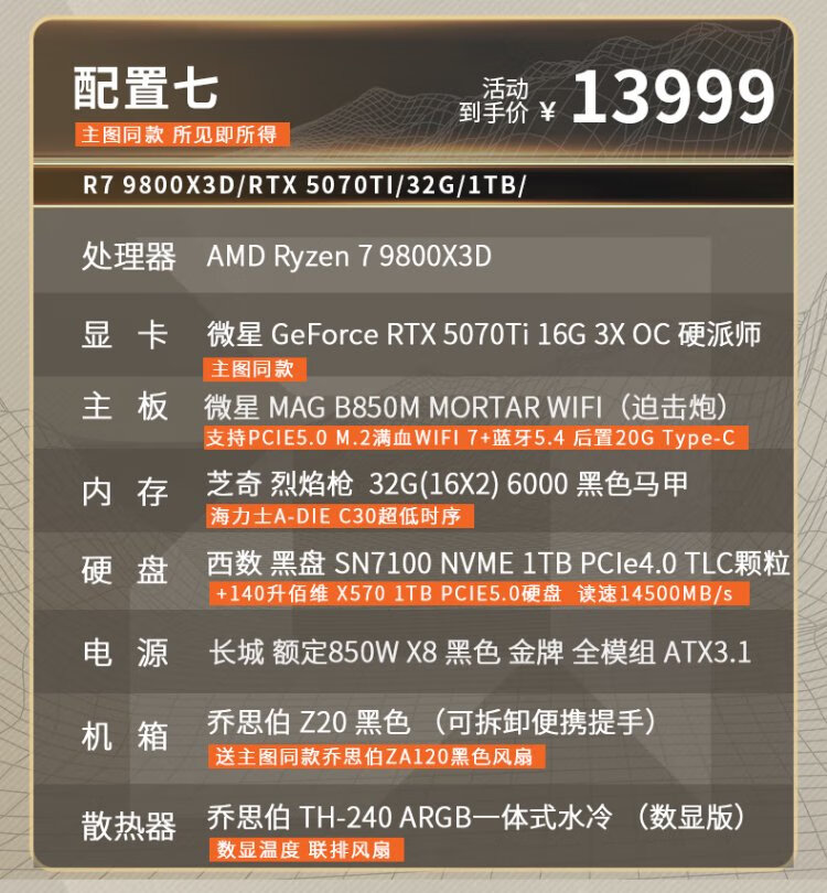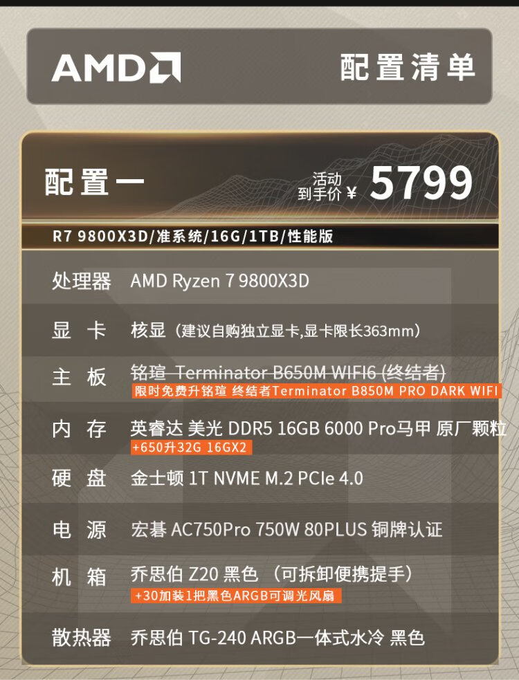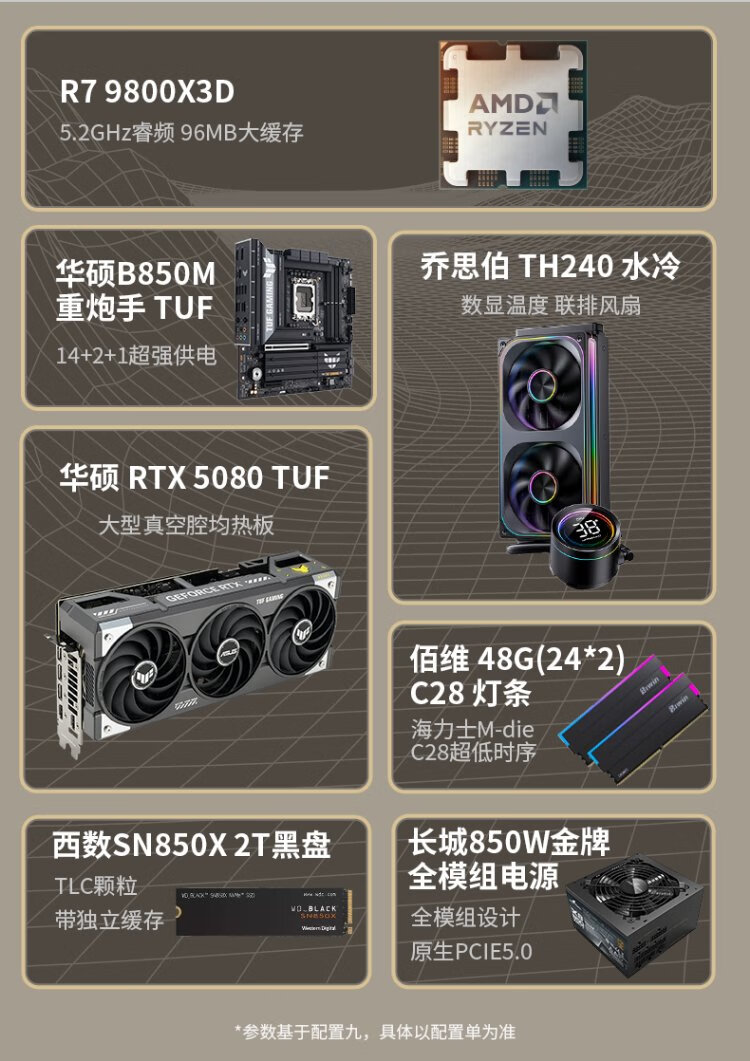 AMD Ryzen R7 9800X3D/5080/5070TI/RX9070XT no graphics card mini mini game ITX desktop computer host assembly computer thousand frames e-sports complete machine configuration 丨 R7 9800X3D/barebone system/performance version