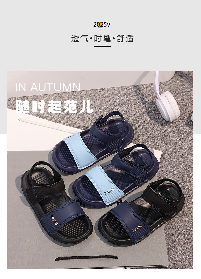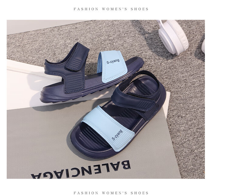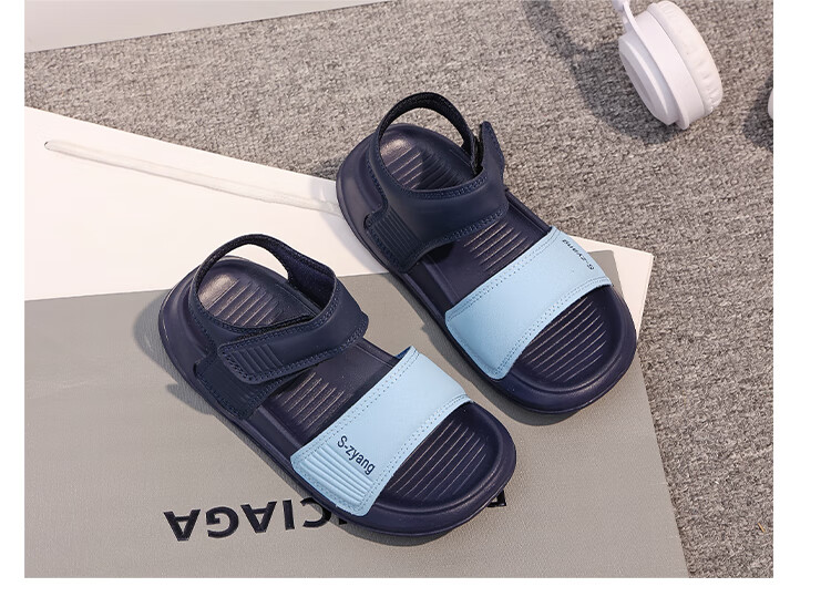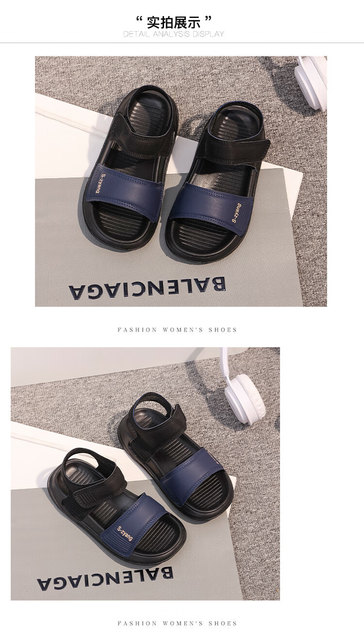 Children's beach sandals summer new boys' shoes girls princess shoes soft sole non-slip casual middle and large children blue 22 inner length 14.5cm