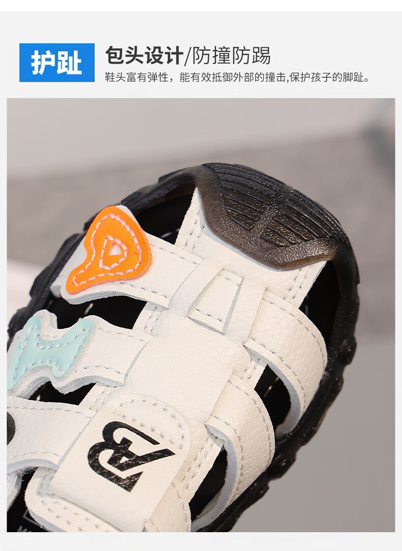 Boys Sandals 2025 Summer New Baby Shoes Children's Anti-Slip Soft Sole Boys' Toe-Toe Sandals White 26 Inner Length 16cm