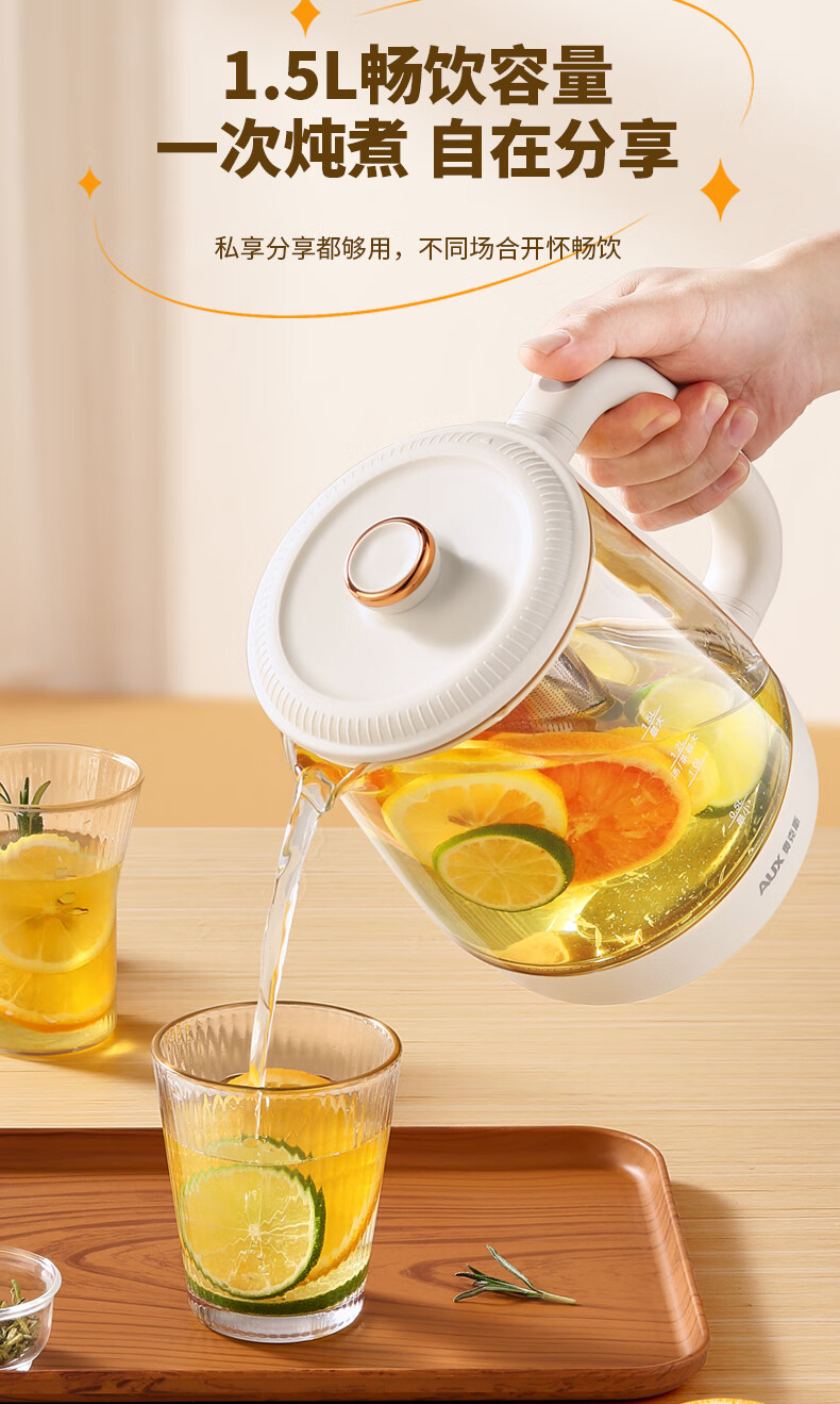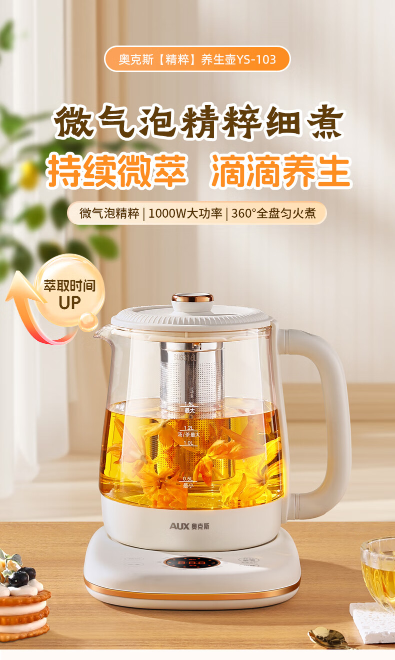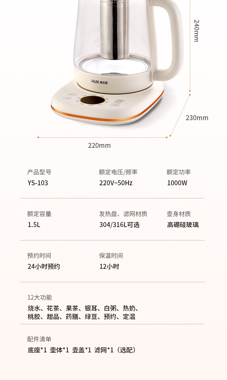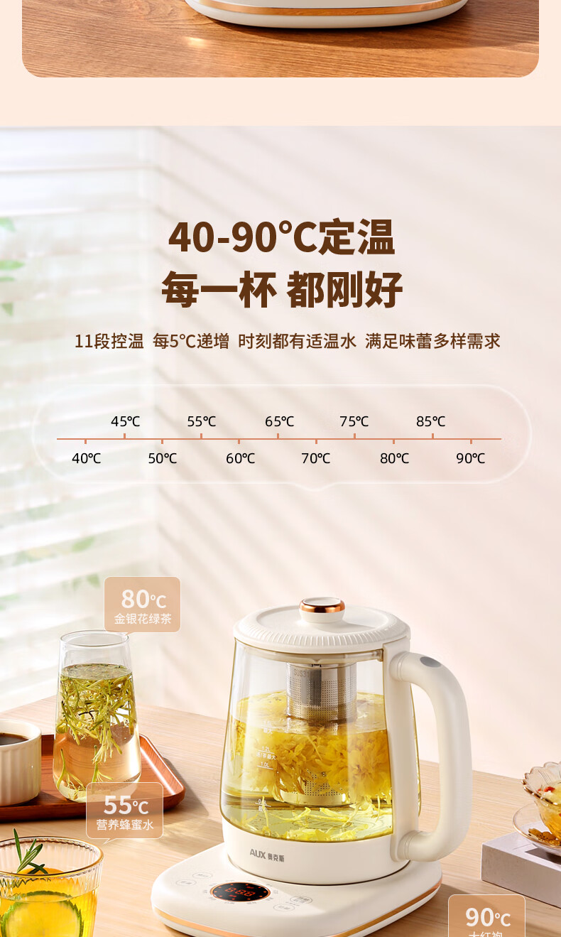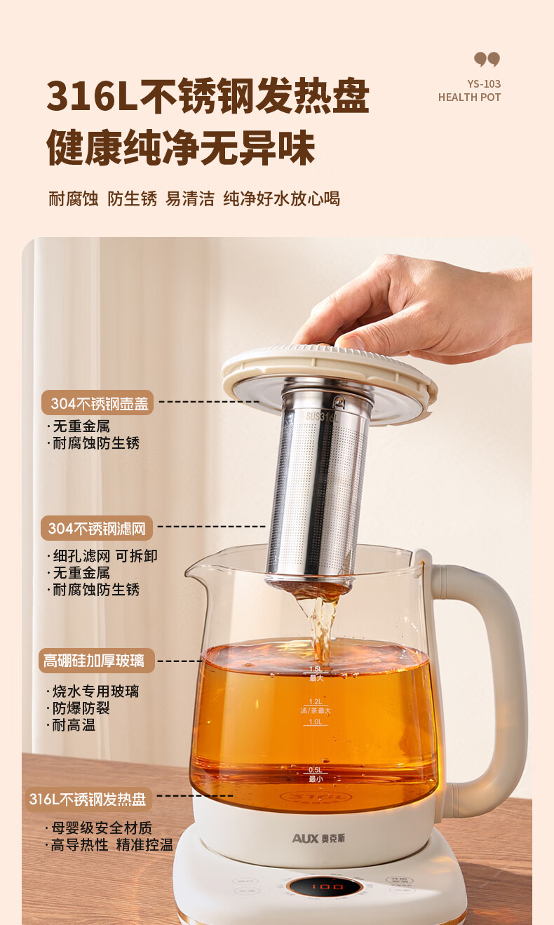 AUX health kettle 1.5L large capacity glass tea kettle fully automatic constant temperature kettle with heat preservation and water boiling all in one smart electric kettle flower tea kettle 24H appointment 12H heat preservation 1.5L with filter 304 stainless steel 1000W fast heating