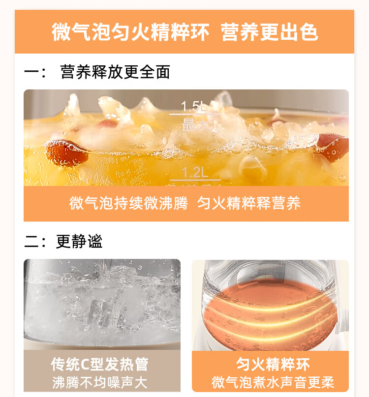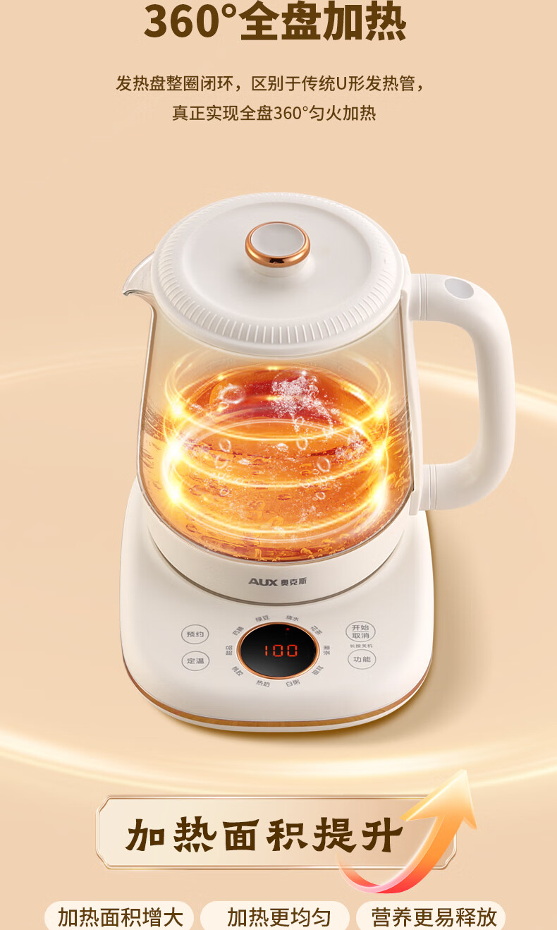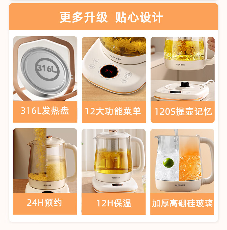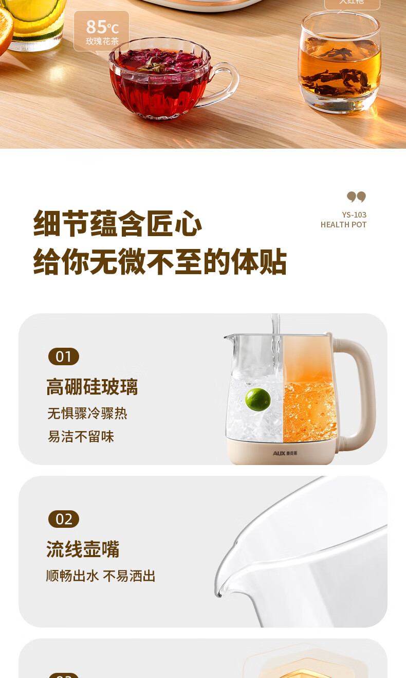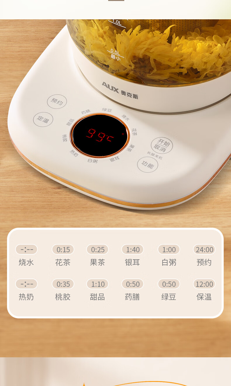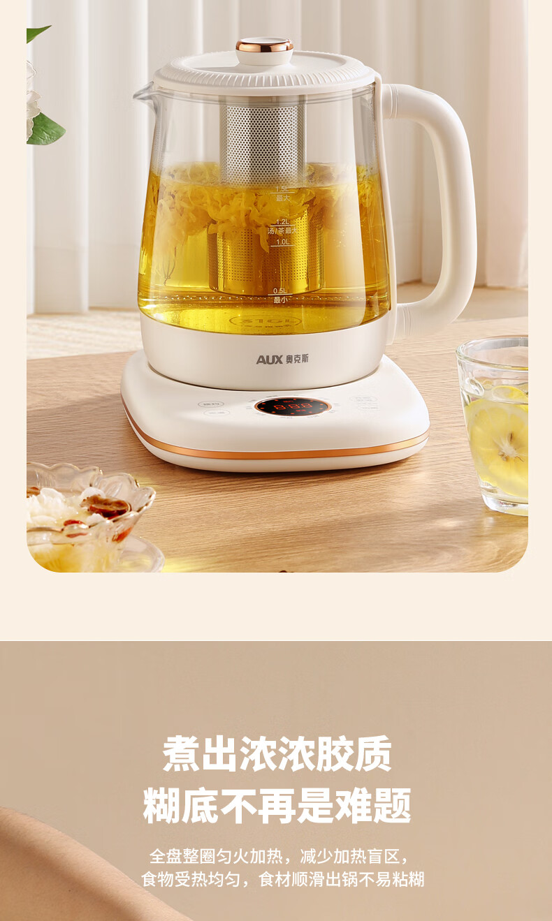 AUX health kettle 1.5L large capacity glass tea kettle fully automatic constant temperature kettle with heat preservation and water boiling all in one smart electric kettle flower tea kettle 24H appointment 12H heat preservation 1.5L with filter 304 stainless steel 1000W fast heating