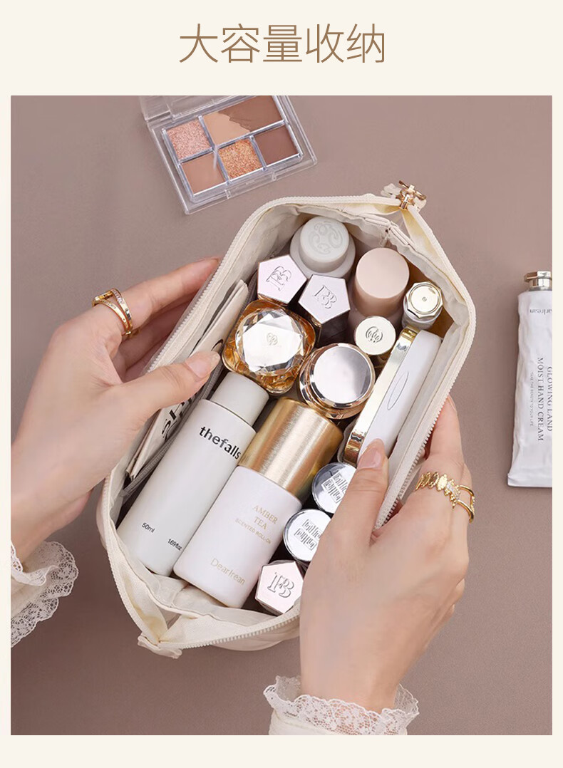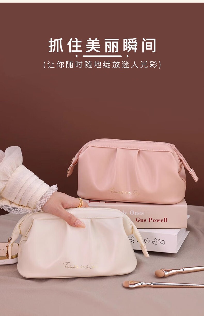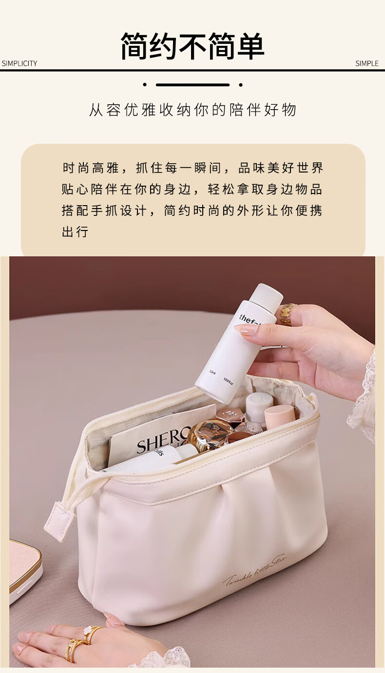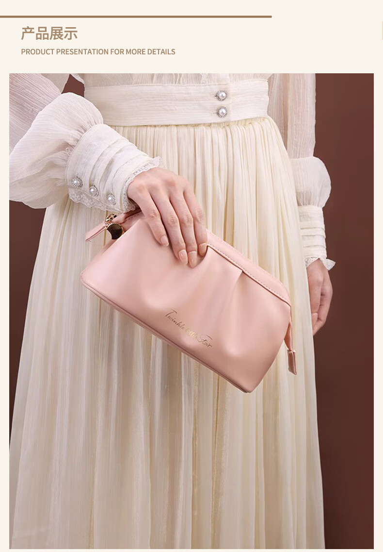 Hand-held cosmetic bag for women, new fashion, travel toiletry bag, portable business trip waterproof cosmetic storage bag, cherry pink