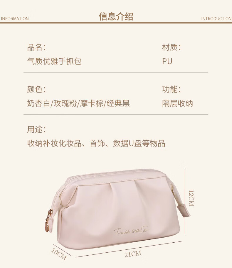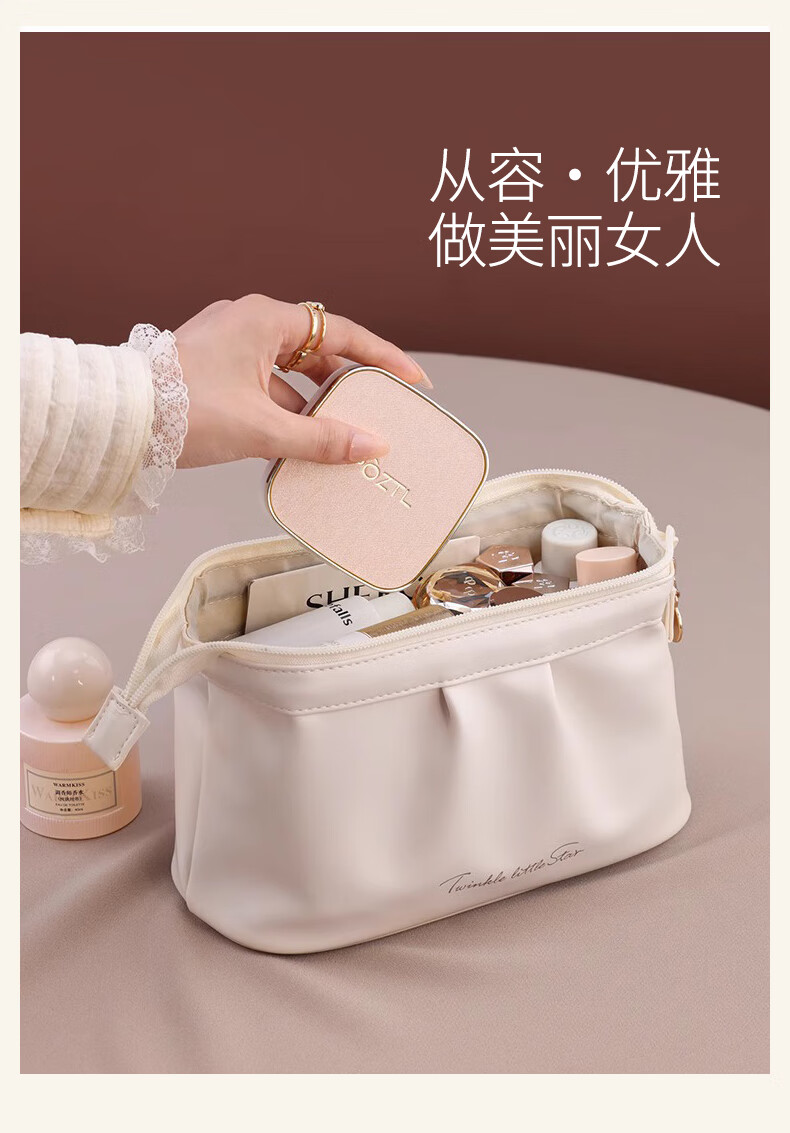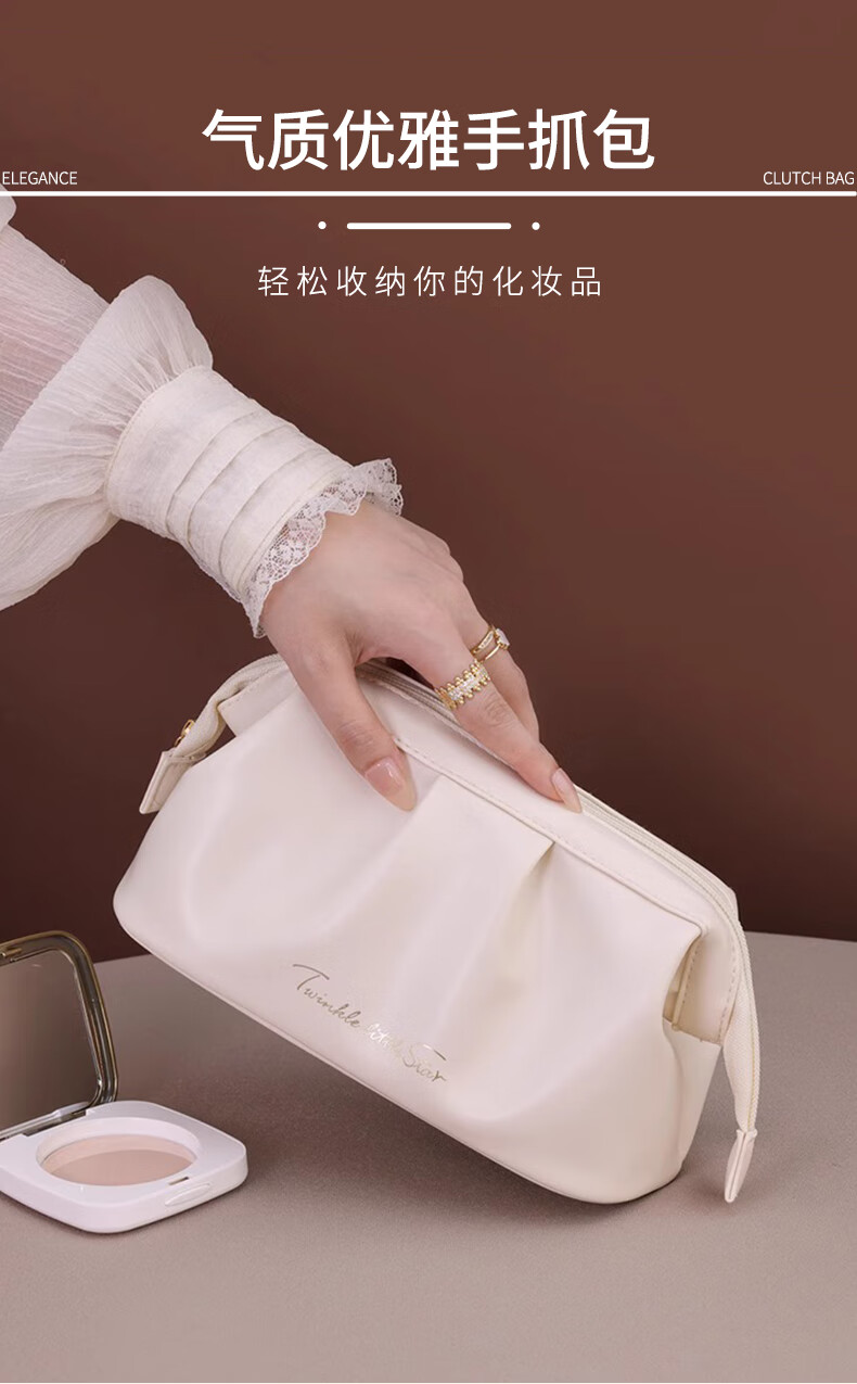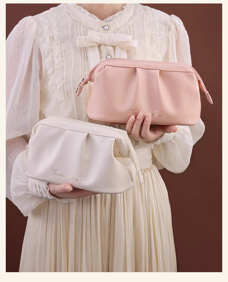 Hand-held cosmetic bag for women, new fashion, travel toiletry bag, portable business trip waterproof cosmetic storage bag, cherry pink