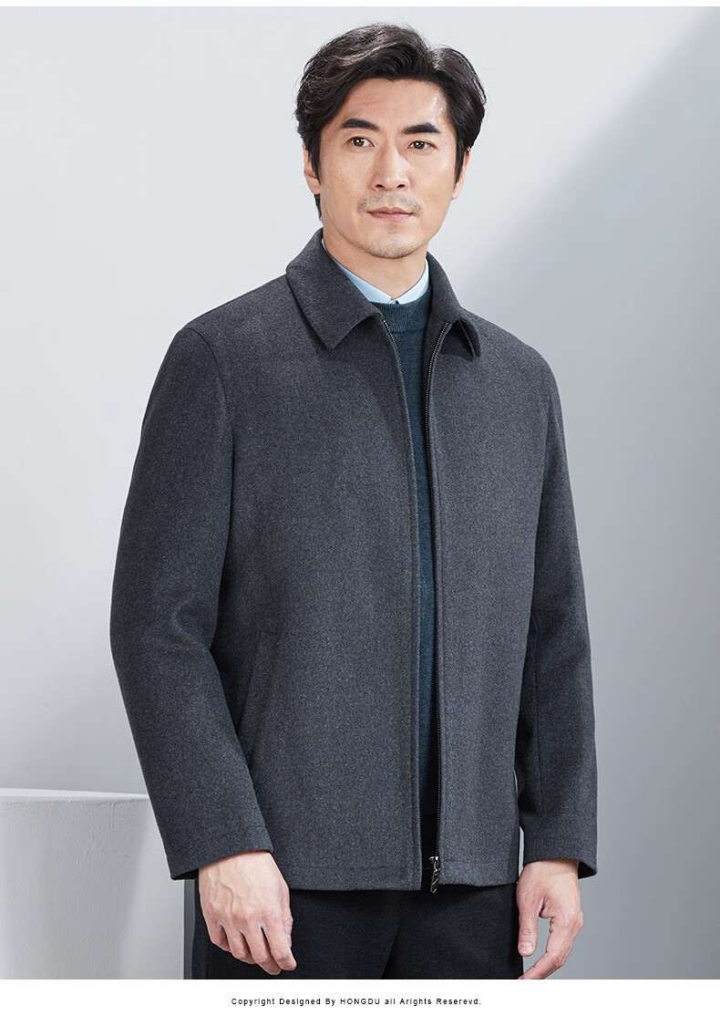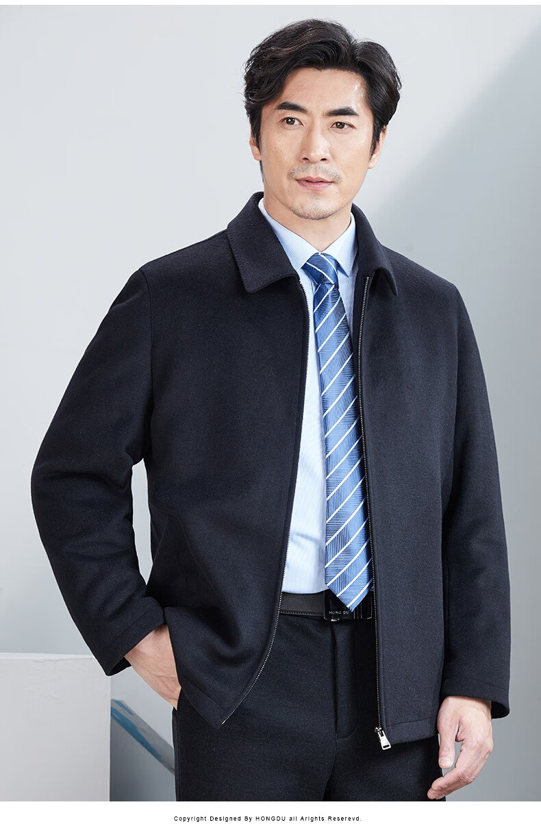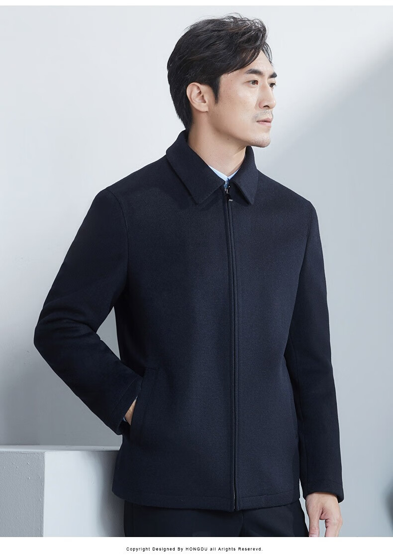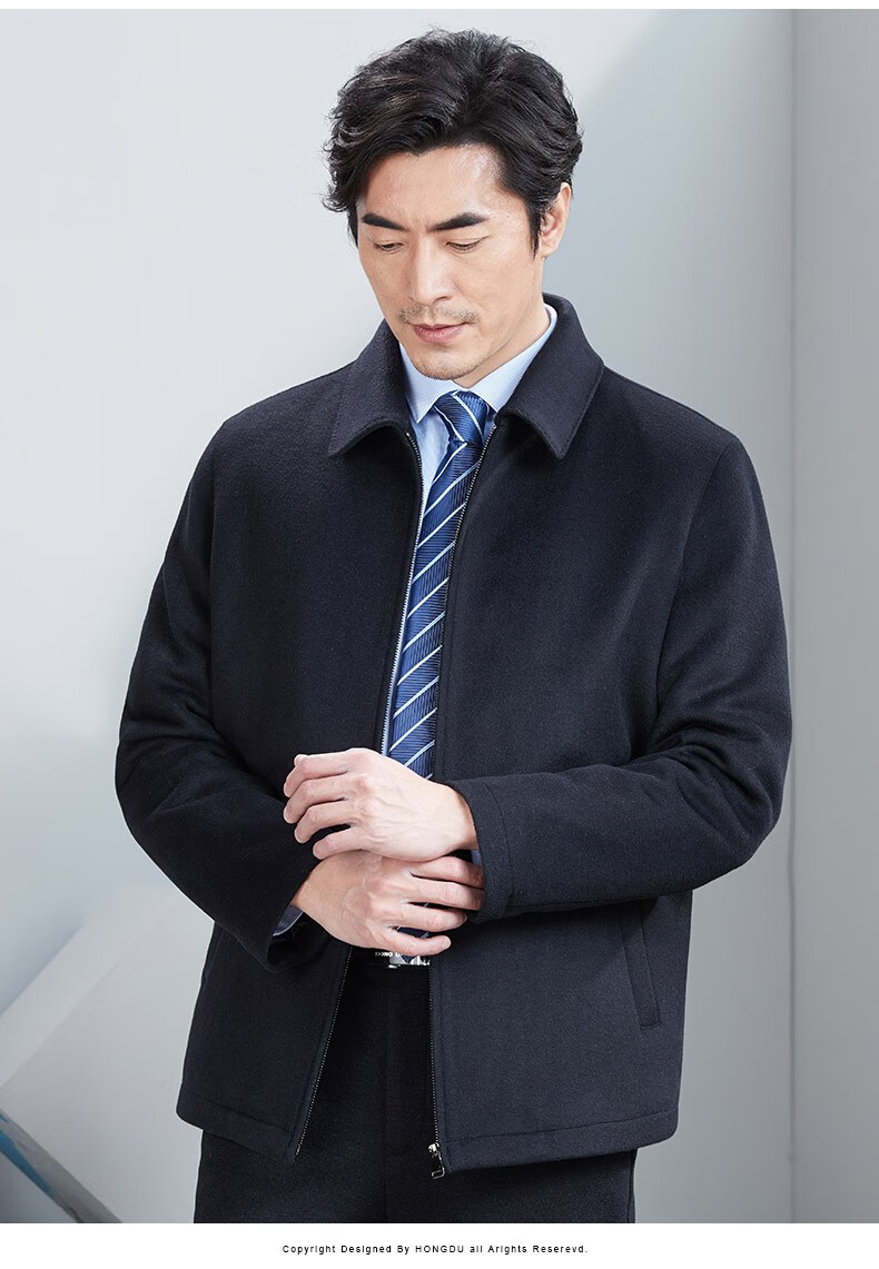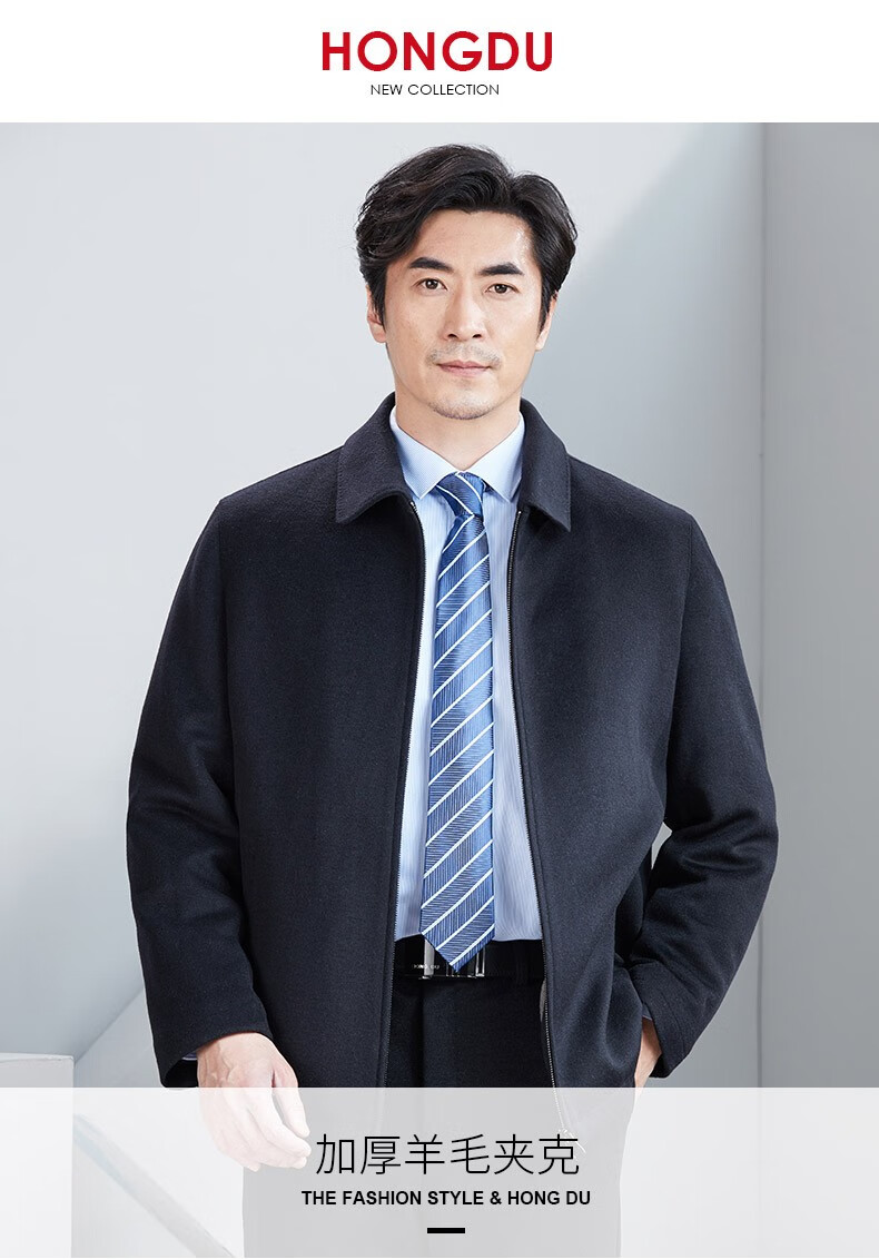 Hongdu Winter Thick Wool Men's Jacket Plus Velvet Thickened Dad's Clothing Middle-aged and Elderly Revised Business Men's Jacket Navy Blue (Black) JK6803 Regular Style XL (180/96A)