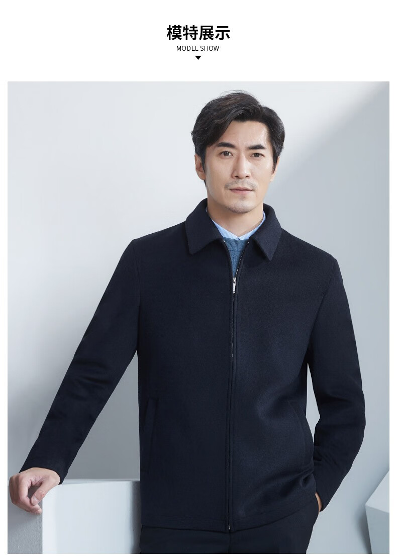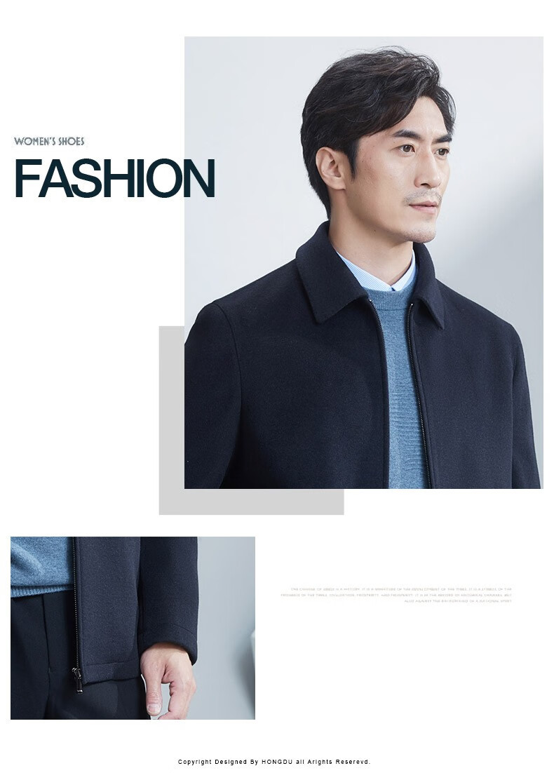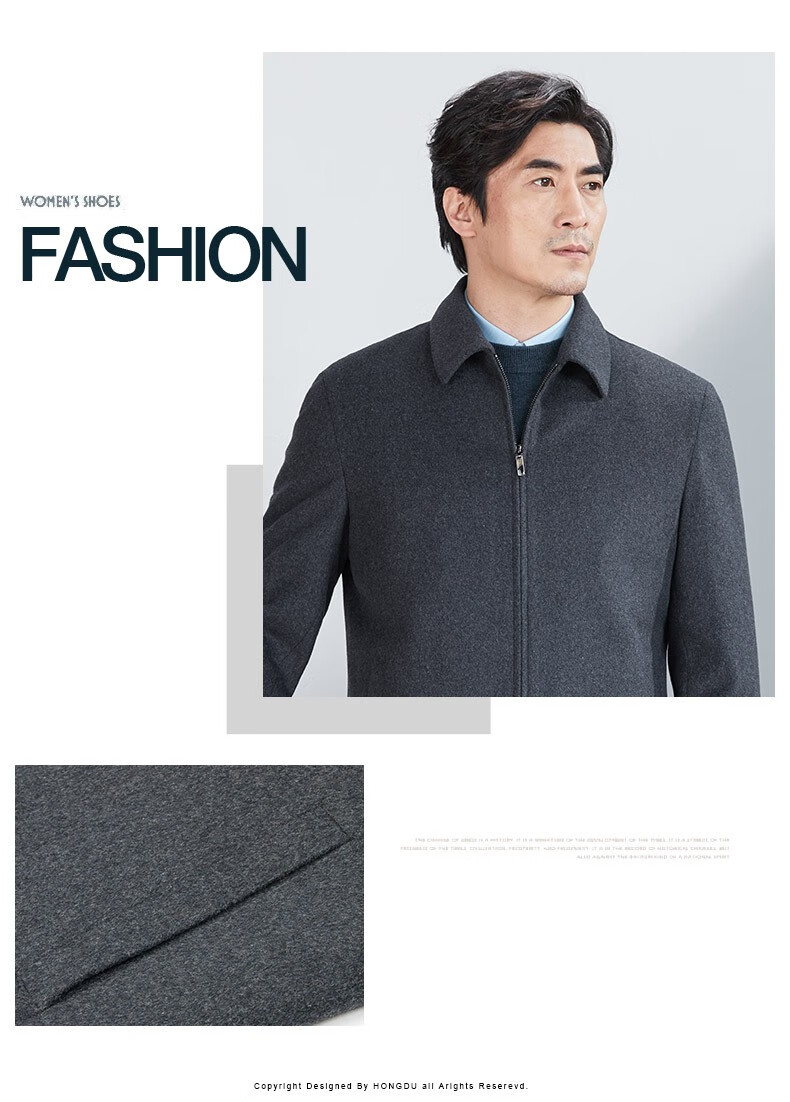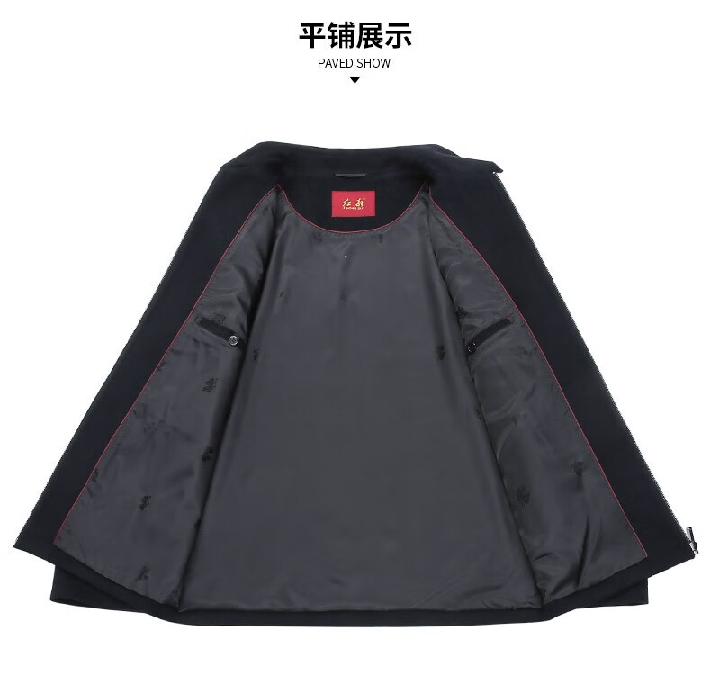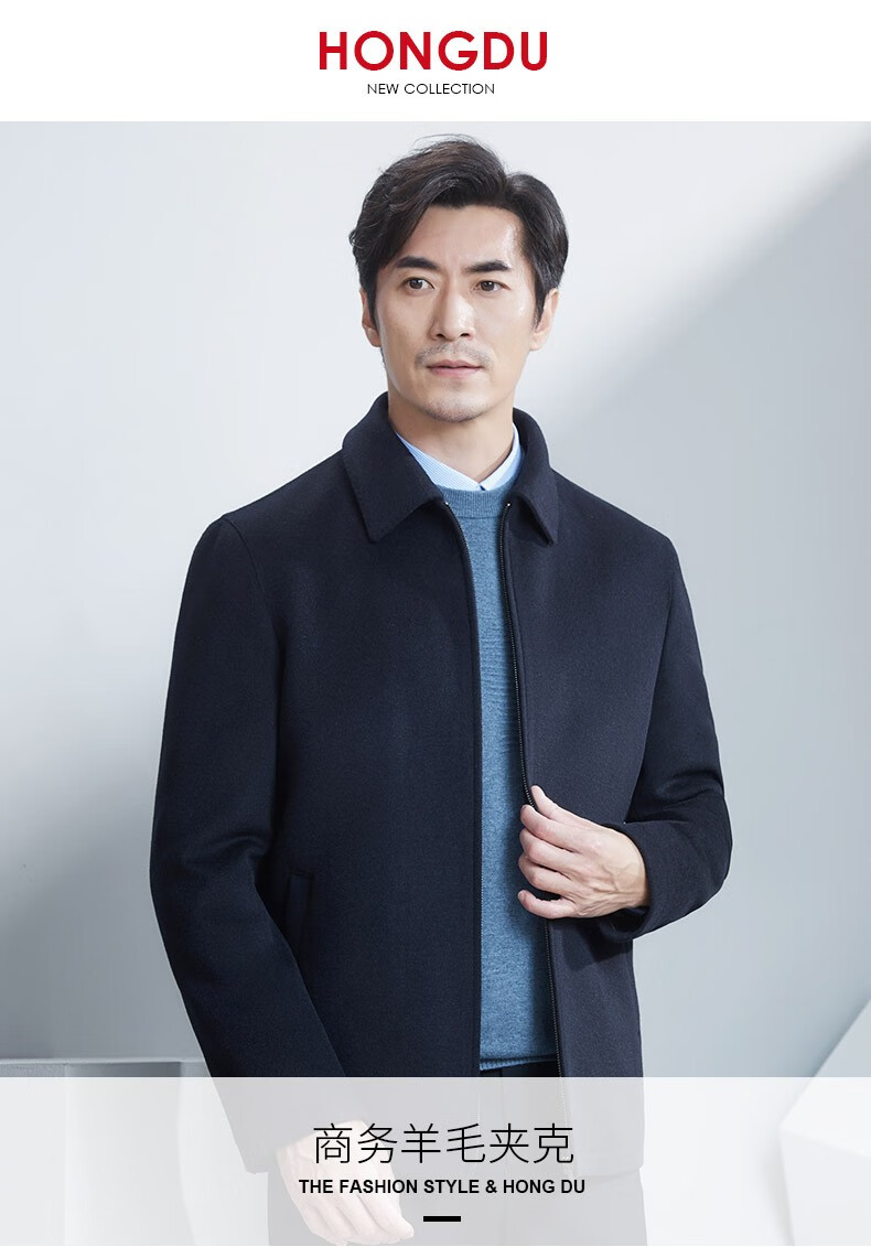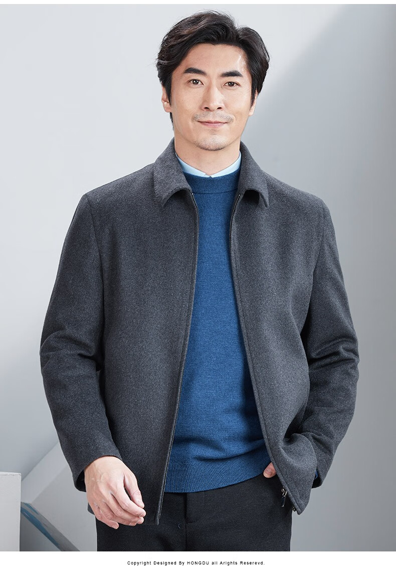 Hongdu Winter Thick Wool Men's Jacket Plus Velvet Thickened Dad's Clothing Middle-aged and Elderly Revised Business Men's Jacket Navy Blue (Black) JK6803 Regular Style XL (180/96A)