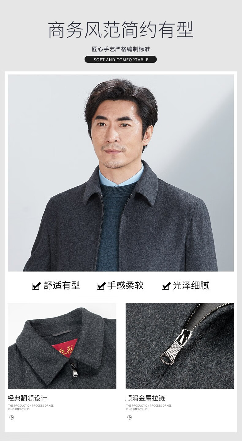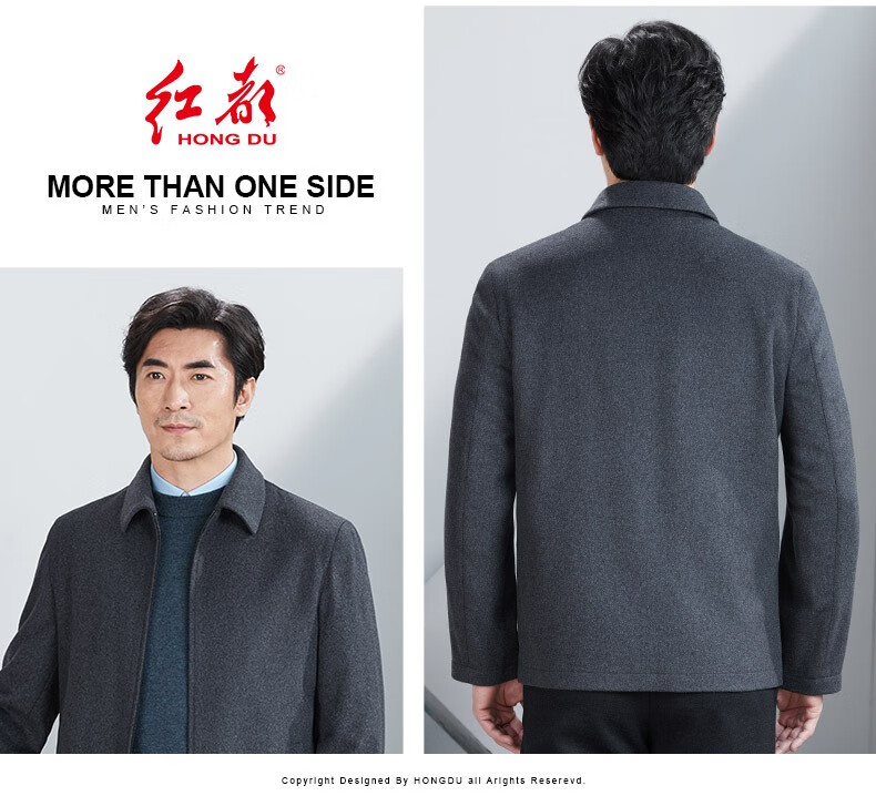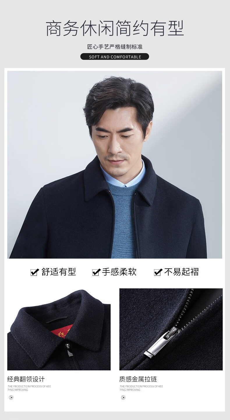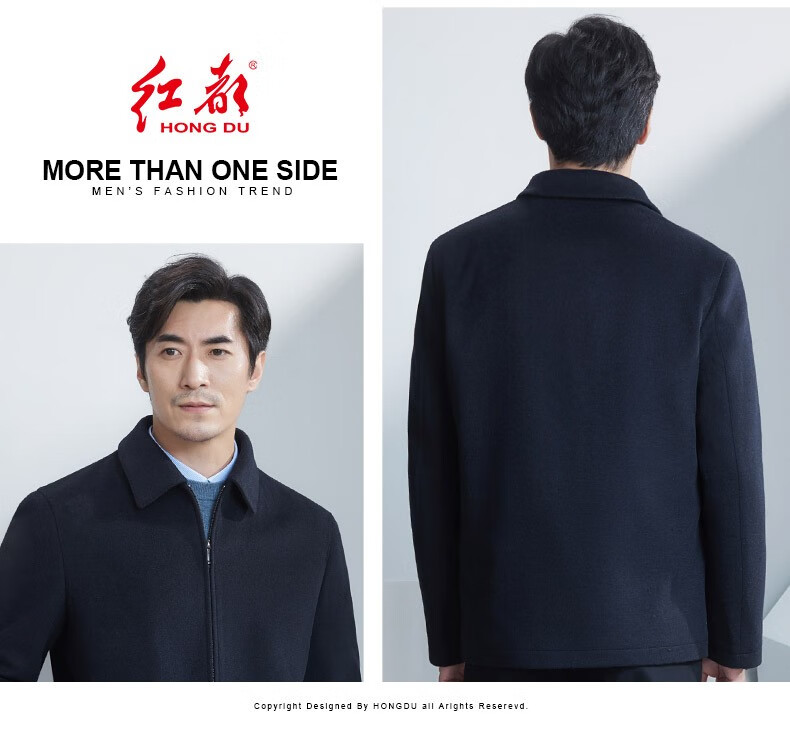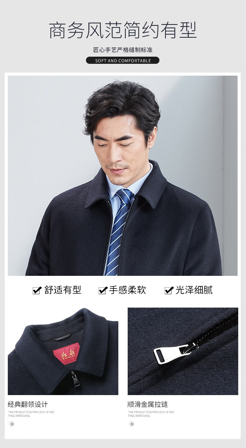 Hongdu Winter Thick Wool Men's Jacket Plus Velvet Thickened Dad's Clothing Middle-aged and Elderly Revised Business Men's Jacket Navy Blue (Black) JK6803 Regular Style XL (180/96A)