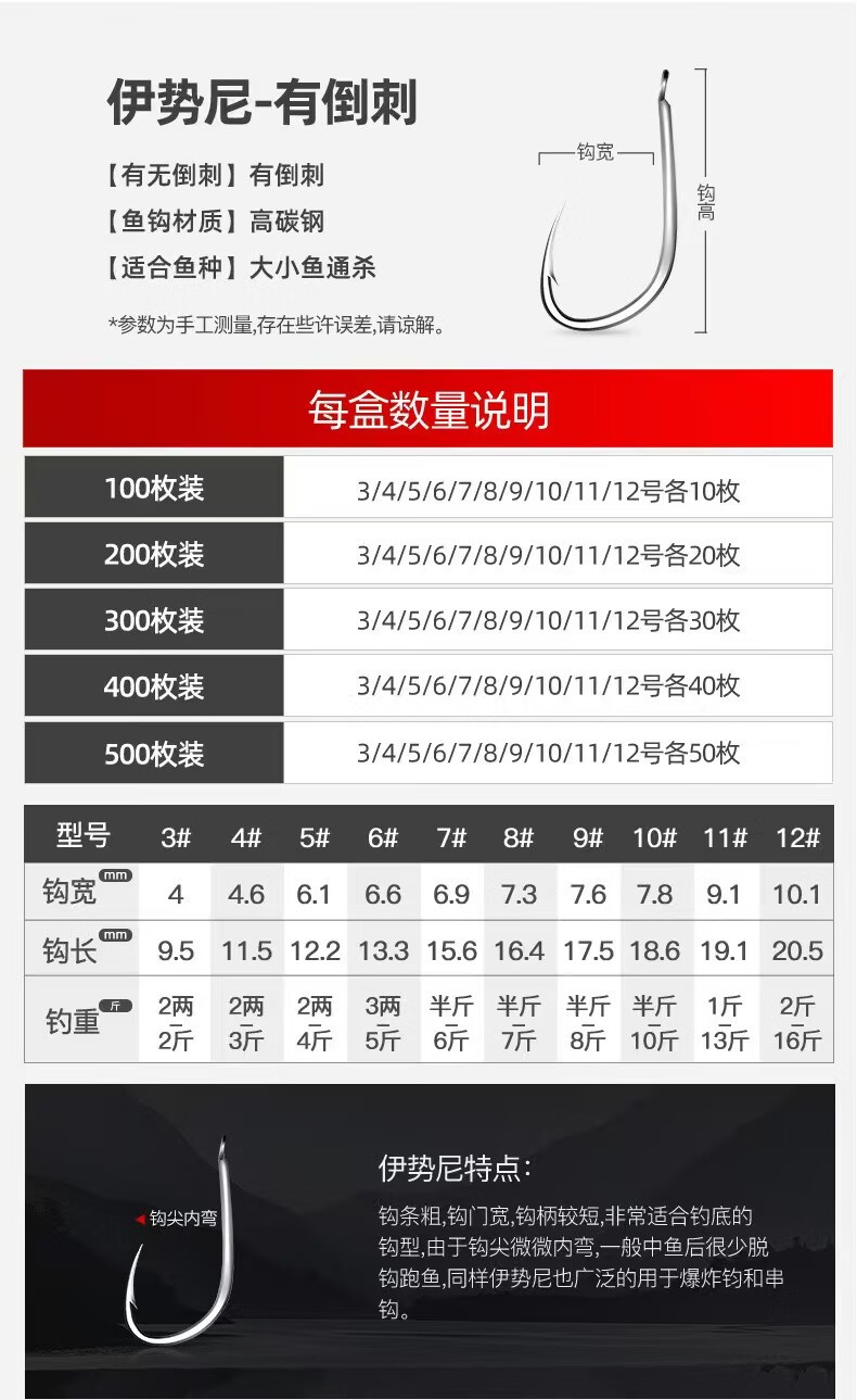 Black needle Iseni imported fish hooks in bulk Izu barbs genuine crucian carp fishing high carbon steel hooks fish hooks 100 pieces 3-12 10 pieces each exquisite boxed Iseni