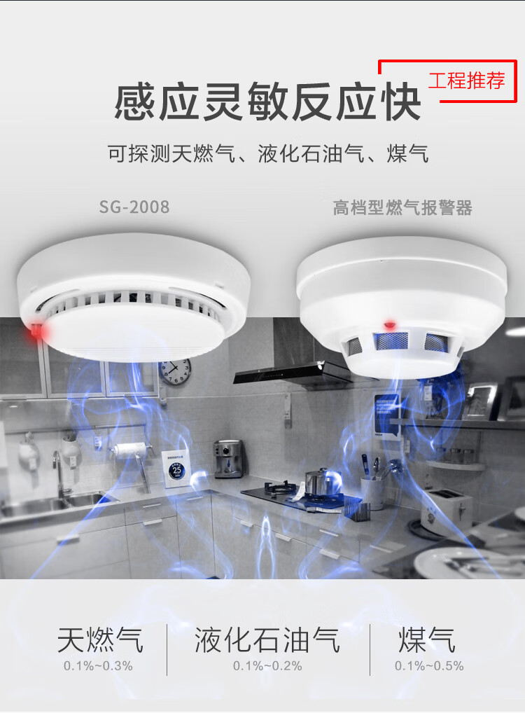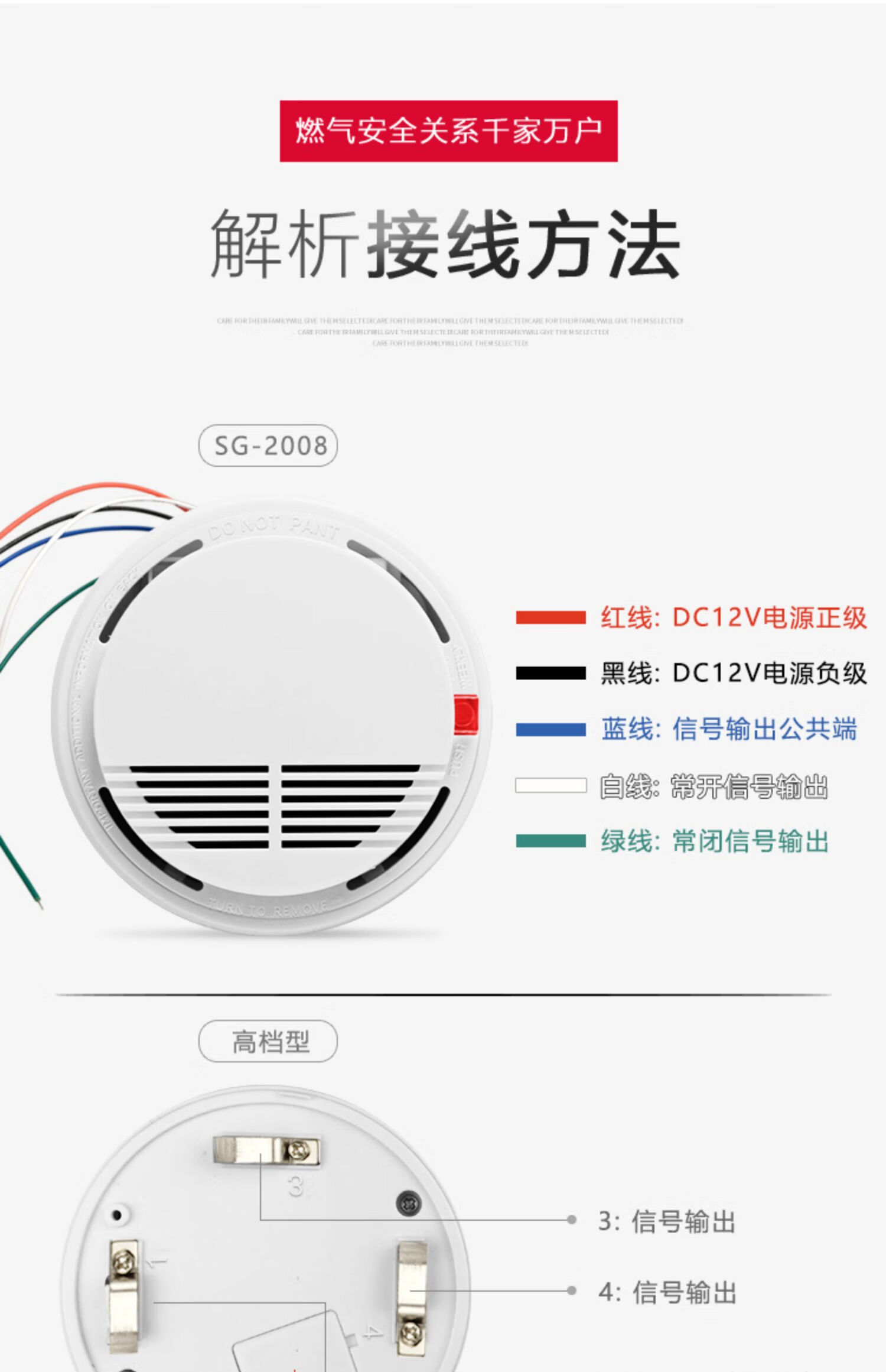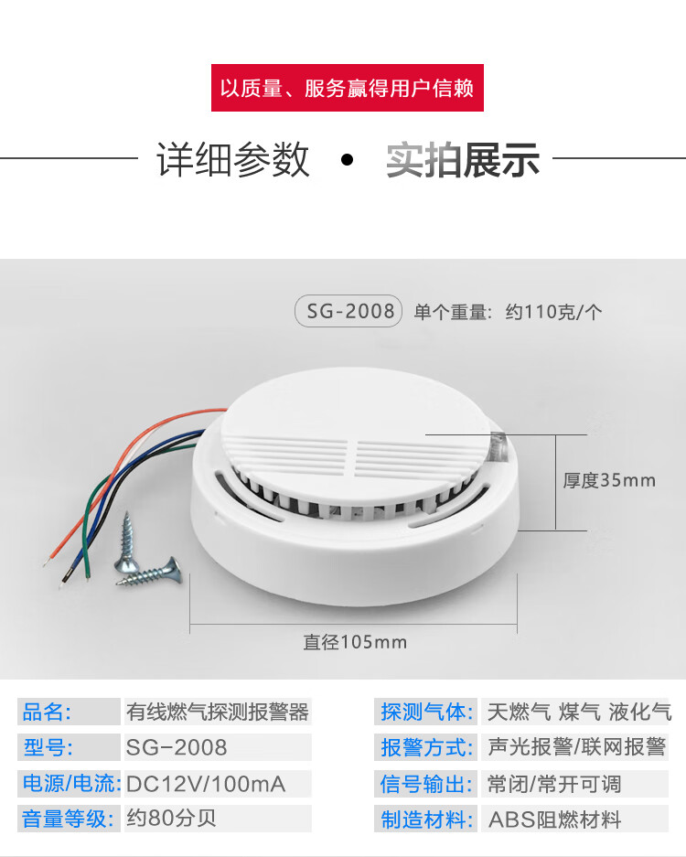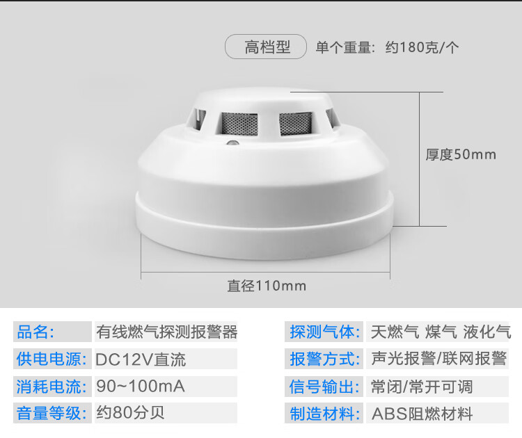 Ceiling gas alarm natural gas sensor 12V network probe wired gas detector SG-2008 220V network real estate project model normally open and normally closed