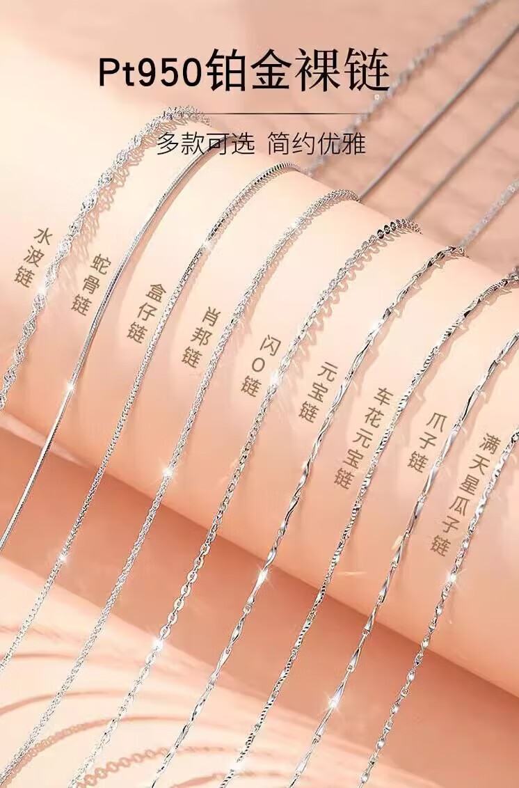 Genuine PT950 platinum necklace women's clavicle chain plain chain naked fine platinum chain for Valentine's Day gift for girlfriend O-shaped chain light luxury style 45cm
