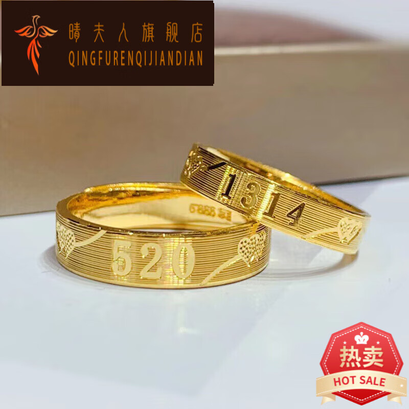 Mrs. Qing Old Phoenix Gold Ring 5201314 Couple Ring 2025 New 999 Pure Gold Knot 520 Valentine's Day Gift 999 Pure Gold Pair Ring A Type Pure Gold Couple Ring A pair of about 13.2 grams
