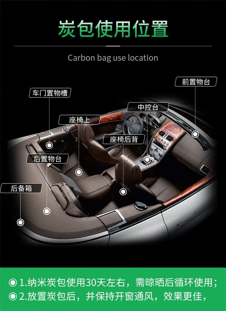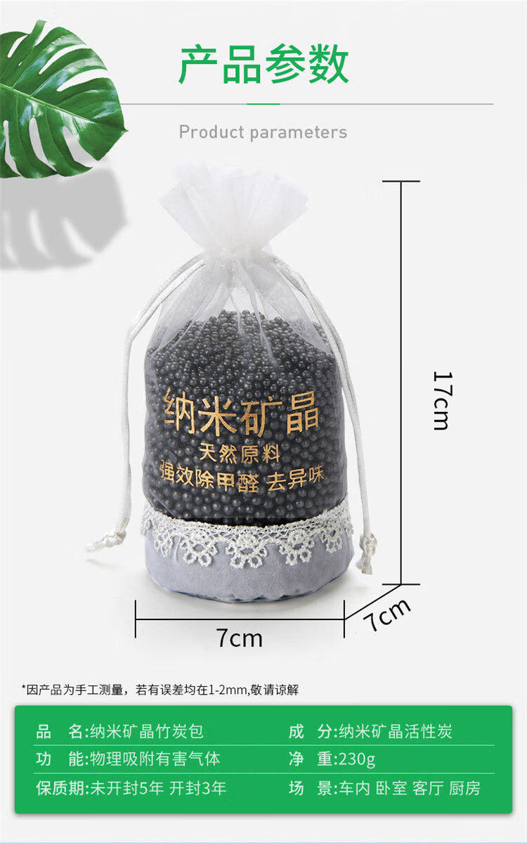 Bamboo charcoal bag for car, formaldehyde removal, activated carbon, deodorization and odor car ornaments purifier, car interior accessories, nano mineral crystal bamboo charcoal bag 250g 8 bags