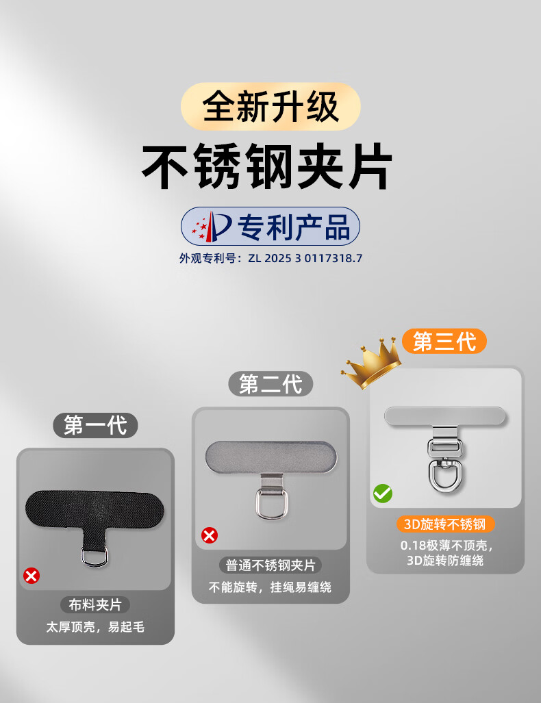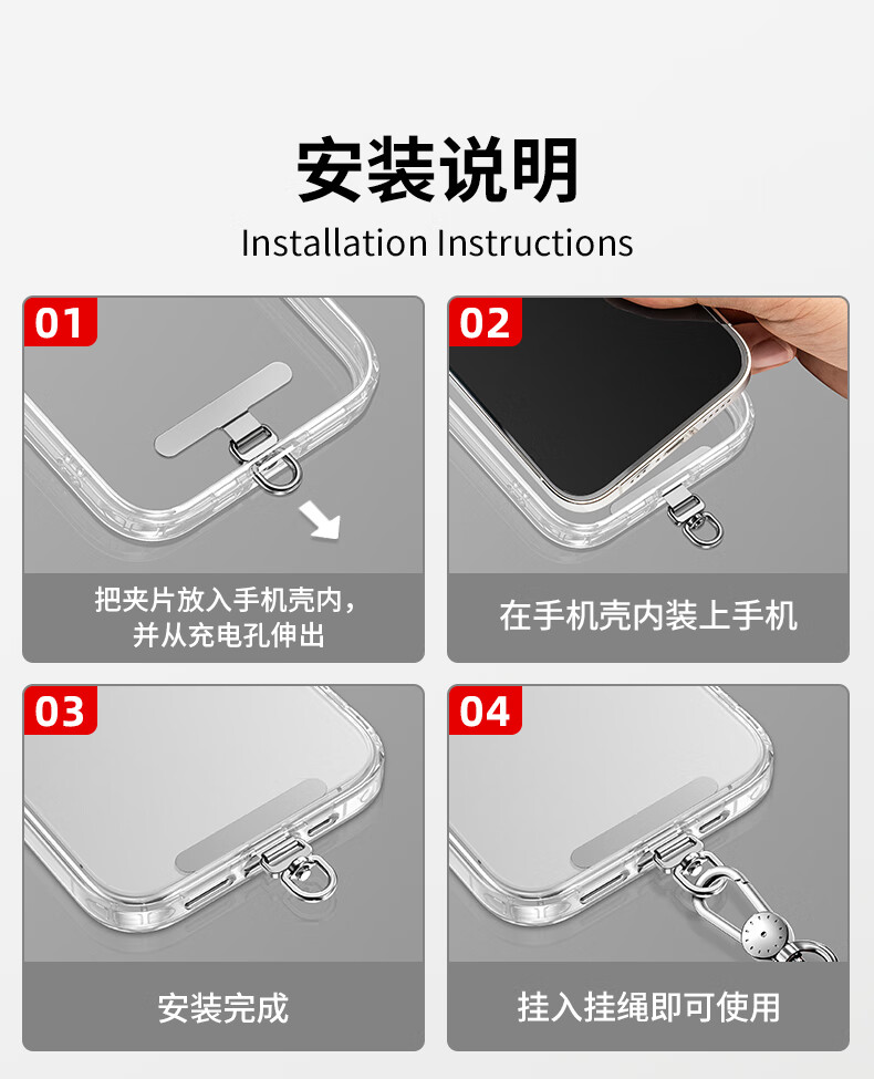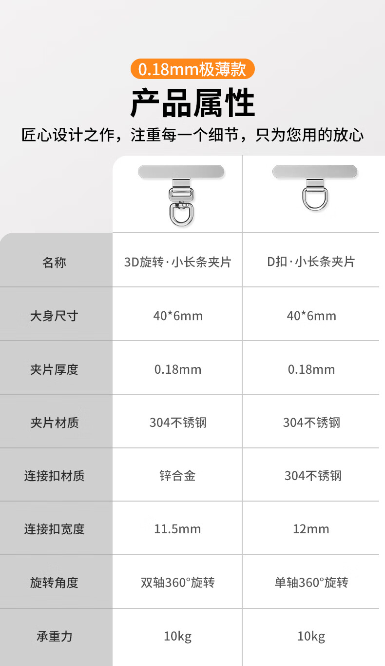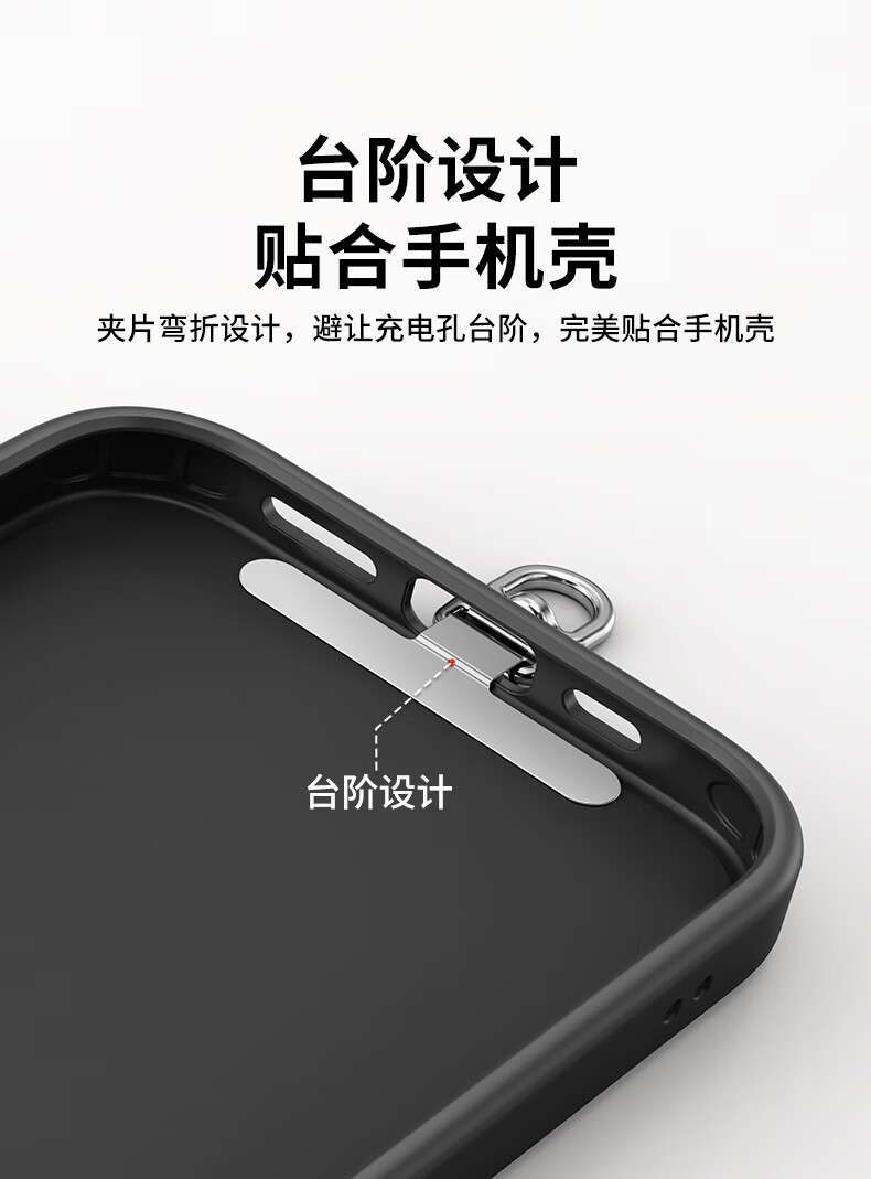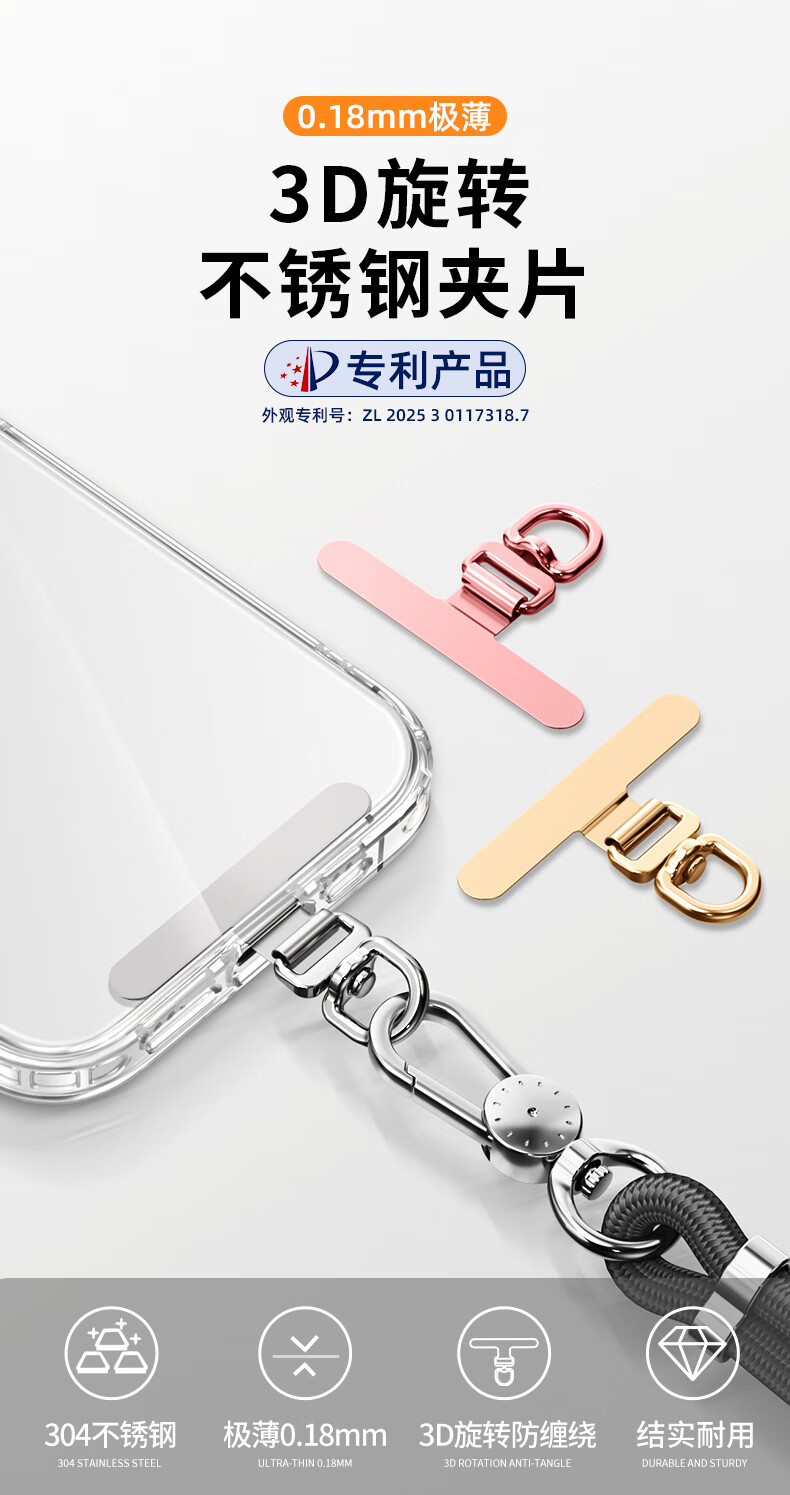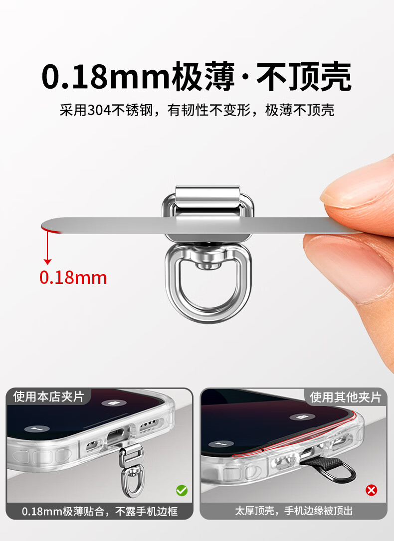 Yingyue mobile phone lanyard clip gasket metal patch wrist chain crossbody anti-theft anti-fall anti-lost artifact jewelry hanging neck ultra-thin sling female suspender pendant men's pendant shell belt accessories 360 rotation fashion silver stainless steel clip extremely thin 0.18mm