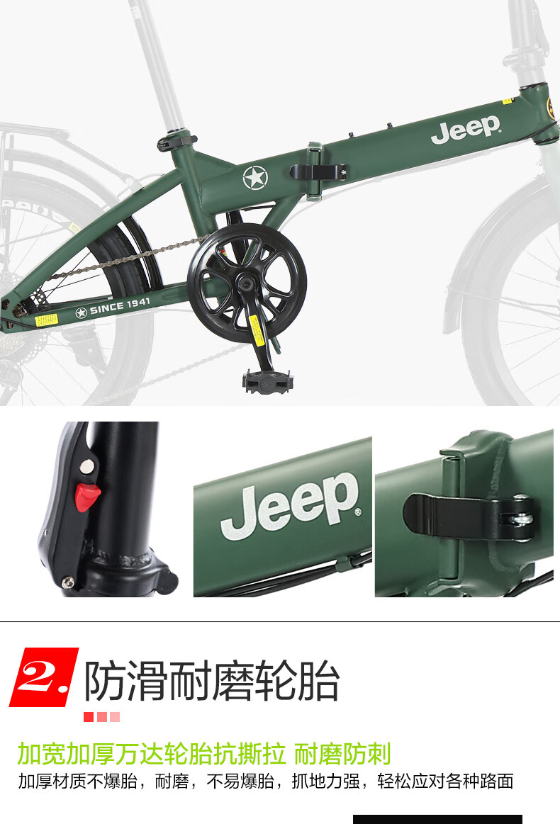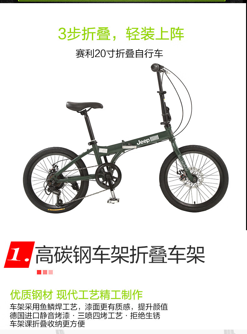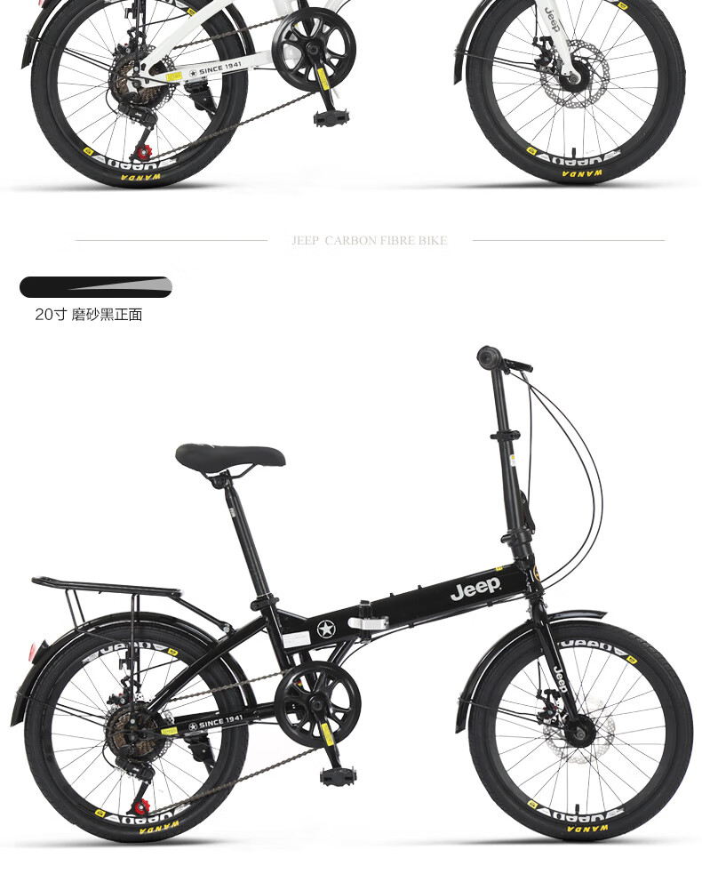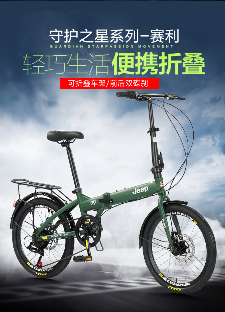 Jeep Folding Bike Adult 20-inch Men's and Women's Variable Speed ​​Commuting Sports Bike - Saili Bright Moon White - Spoke Wheels - Disc Brake 20 Inch 7 Speed