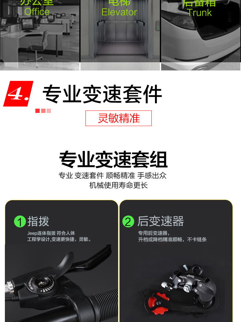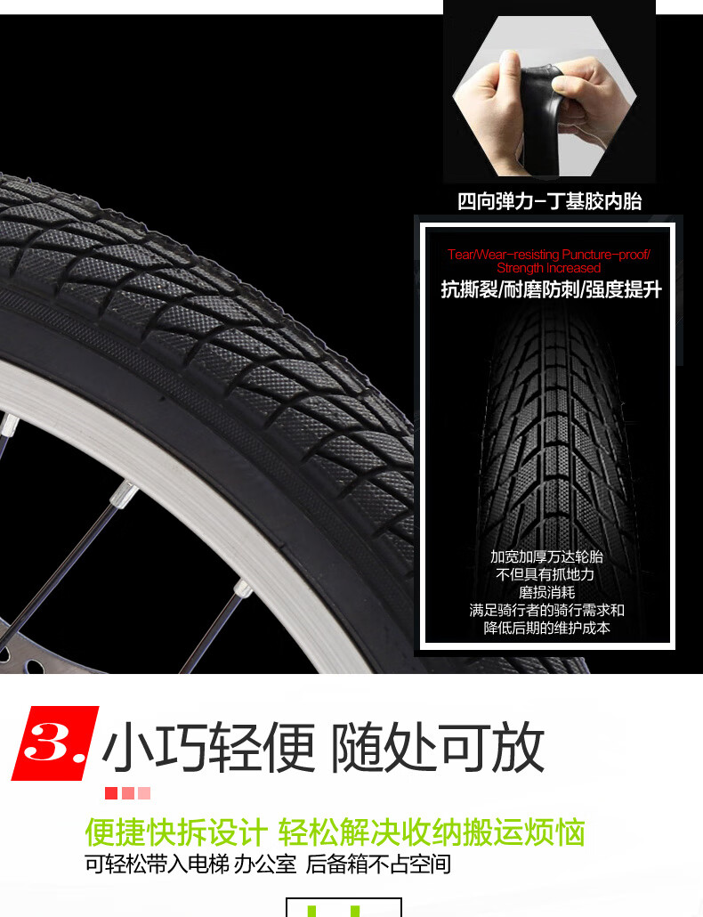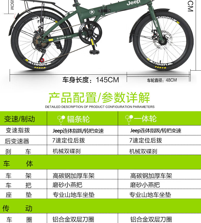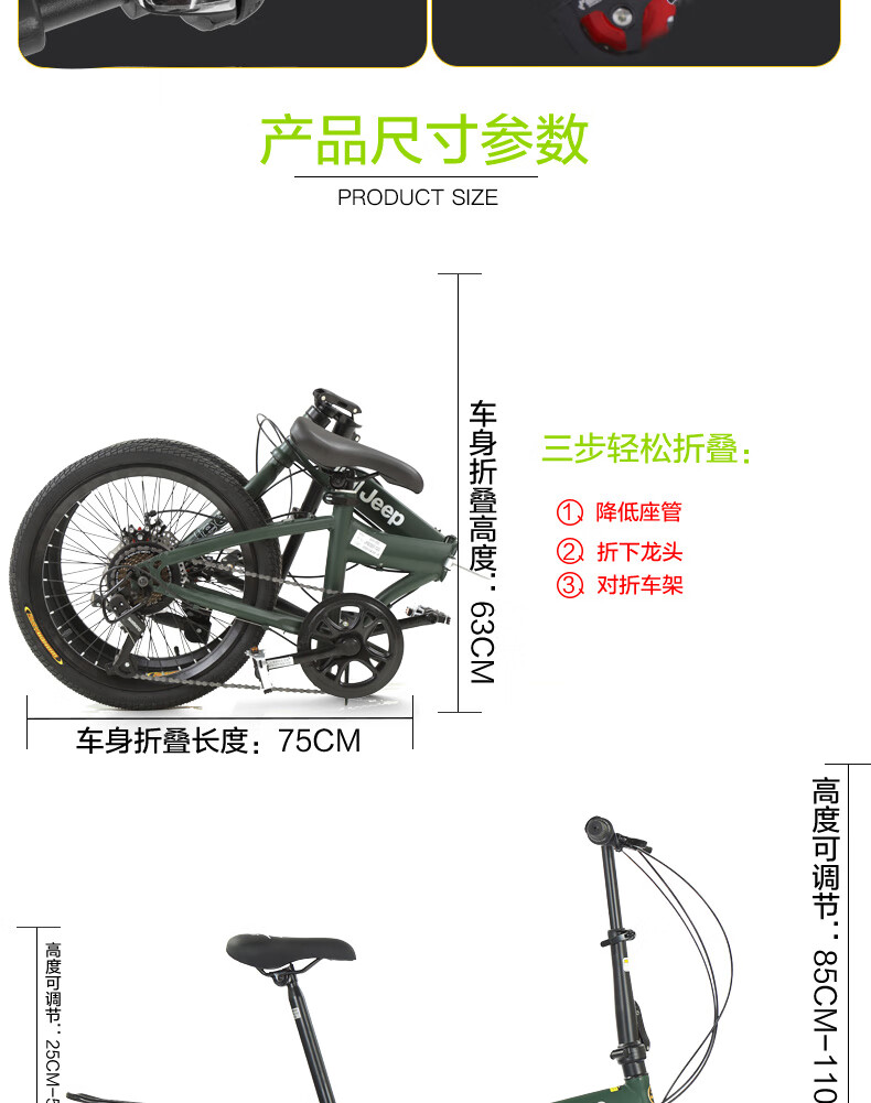 Jeep Folding Bike Adult 20-inch Men's and Women's Variable Speed ​​Commuting Sports Bike - Saili Bright Moon White - Spoke Wheels - Disc Brake 20 Inch 7 Speed
