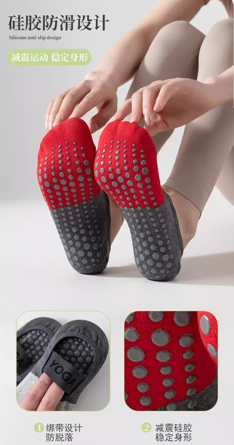 Spring and summer dot glue Pilates yoga socks color-blocked combed cotton professional non-slip women's five-finger split toe socks, 1 pair each of black, gray and blue, 3 pairs in total, one size fits all