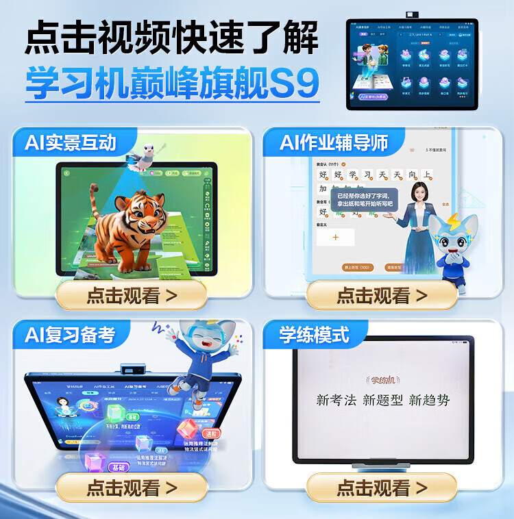 BBK learning machine S9 training machine 14.2-inch AI learning tablet primary school to high school curriculum synchronization English reading machine student tablet tutoring machine early education machine same-day delivery S9-8+256G consultation customer service one-on-one guidance