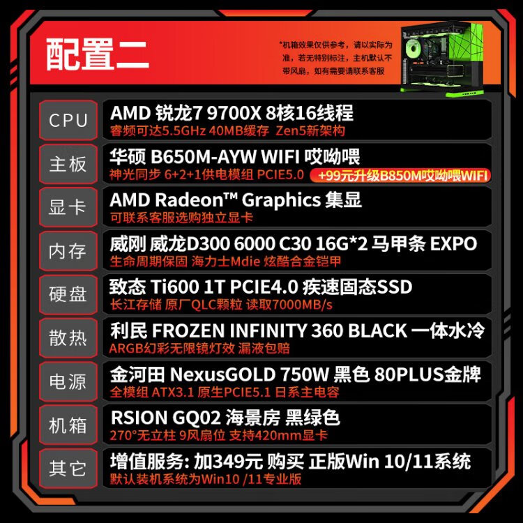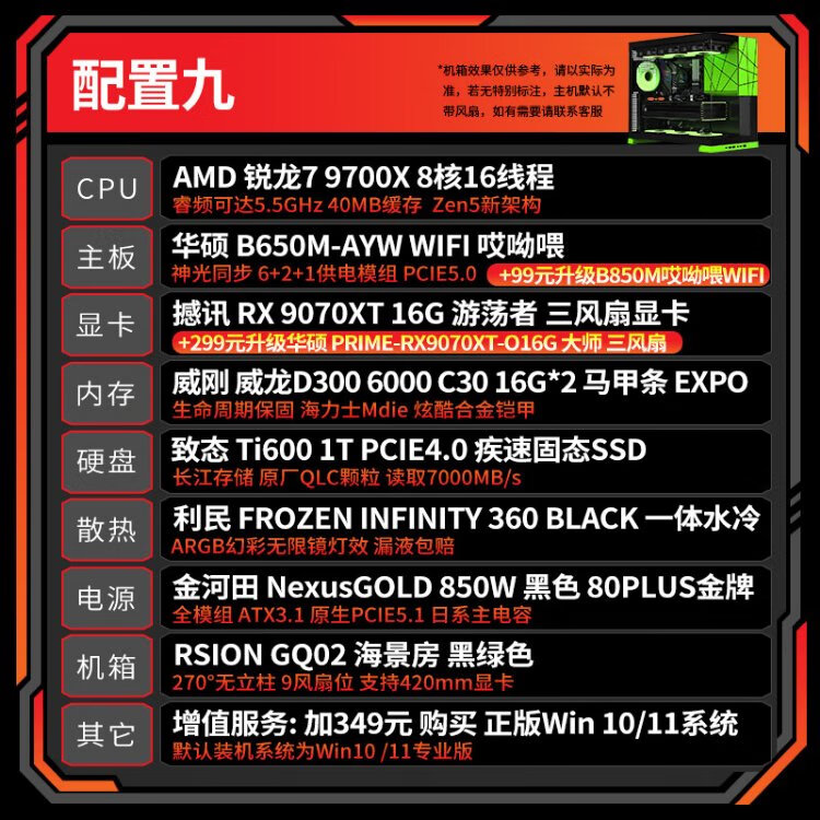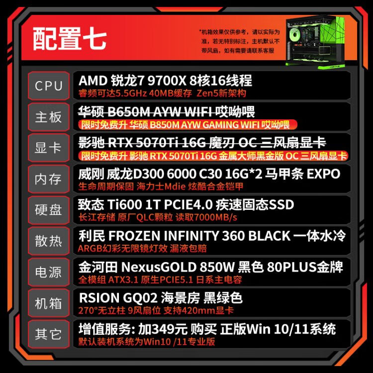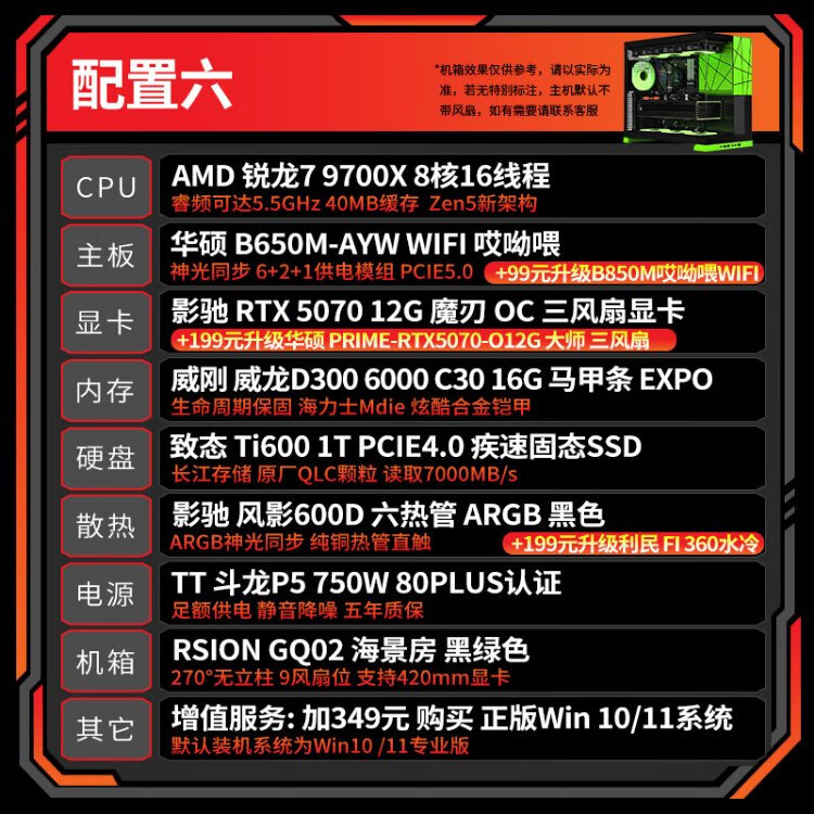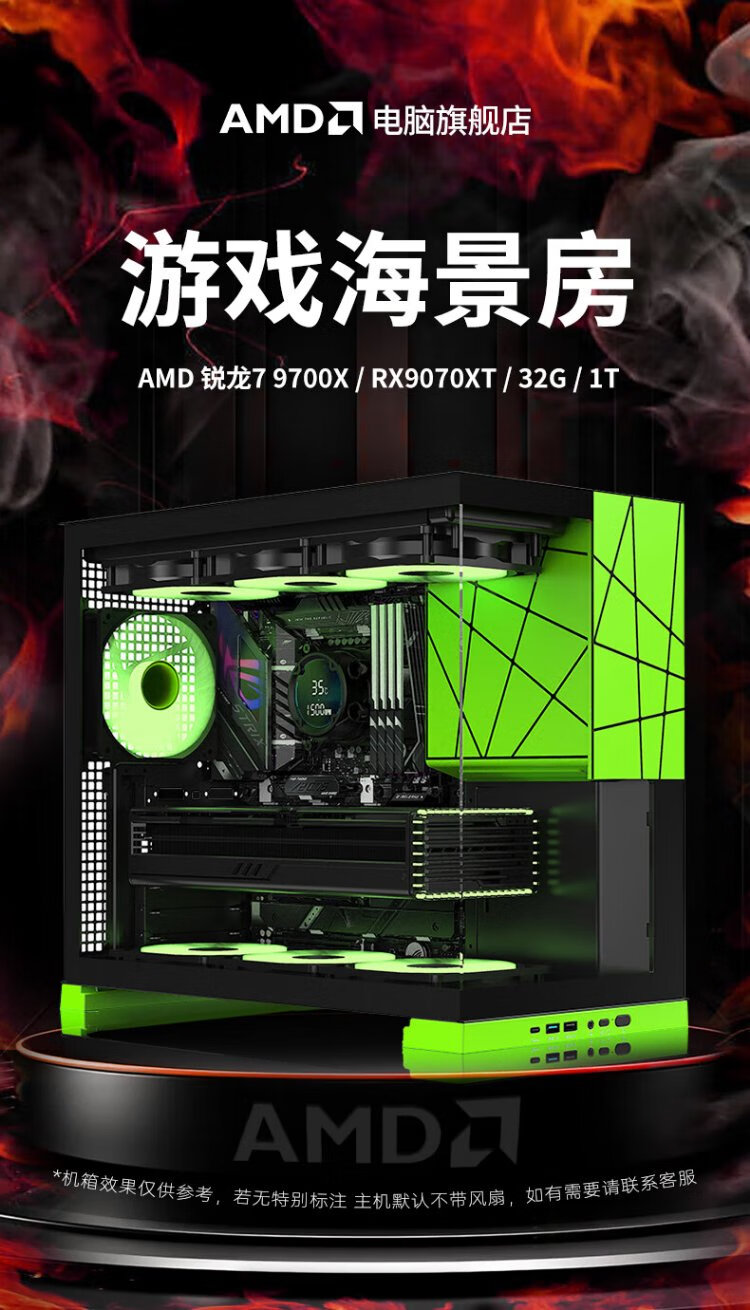 AMD Ryzen 7 9700X host RTX5060TI/5070TI/9070XT graphics card AI productivity 4k live rendering post-editing design computer sea view room assembly complete machine configuration five 9700X/RTX5060TI 16G