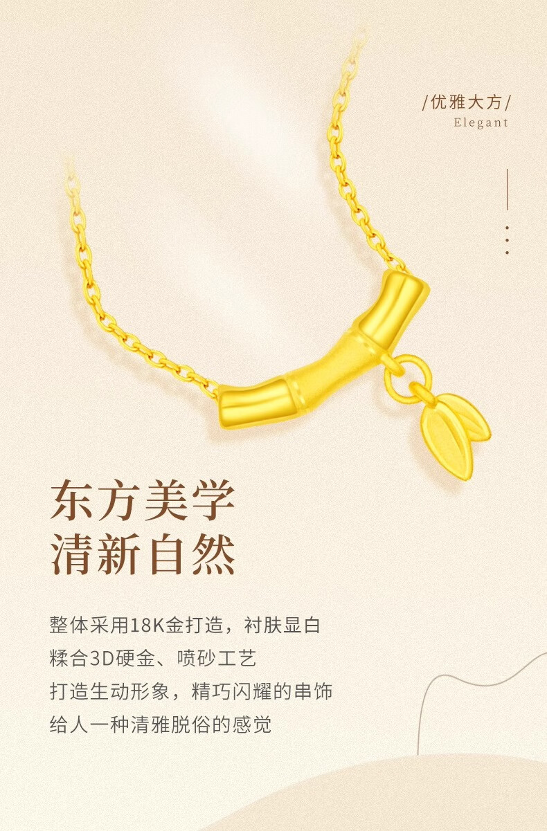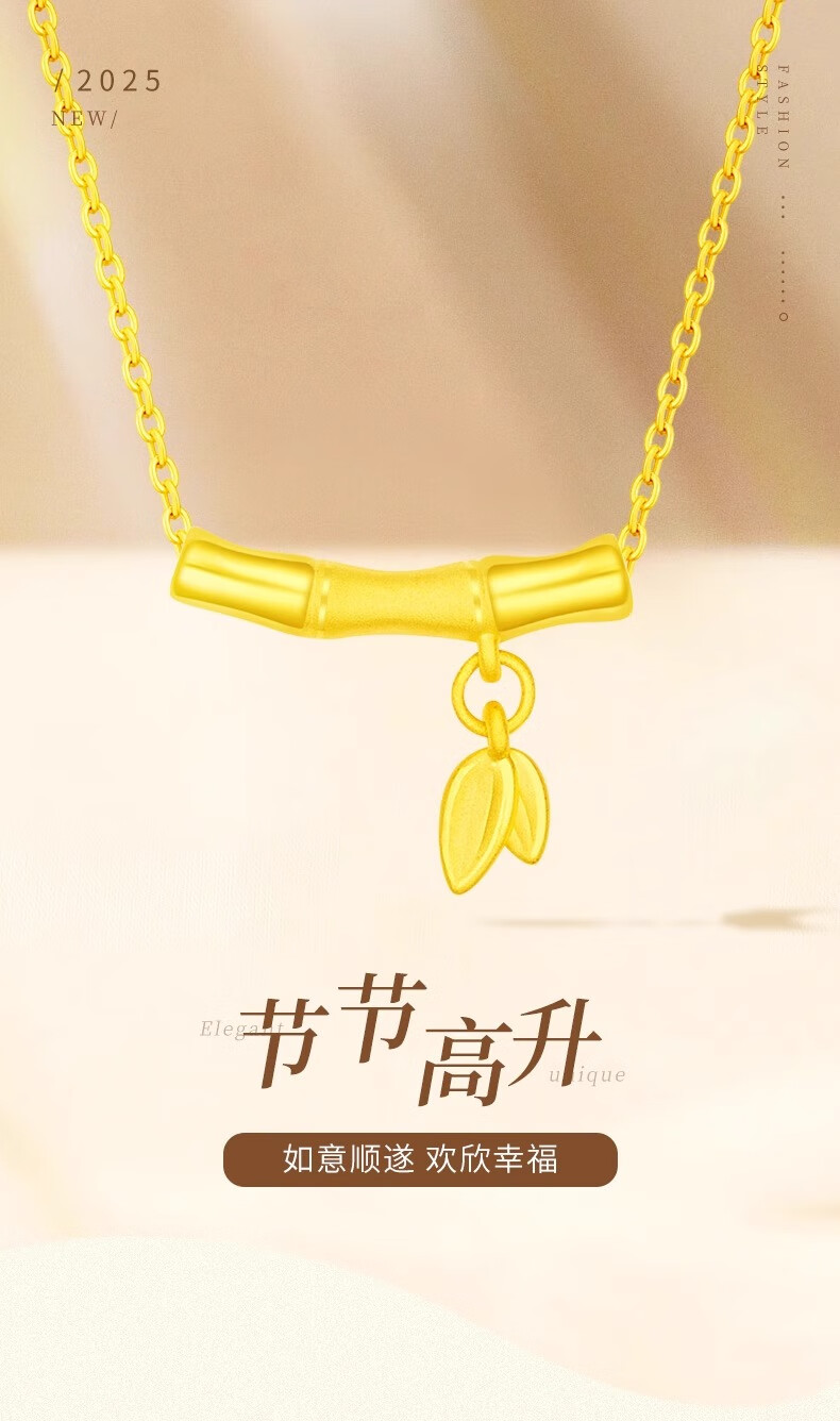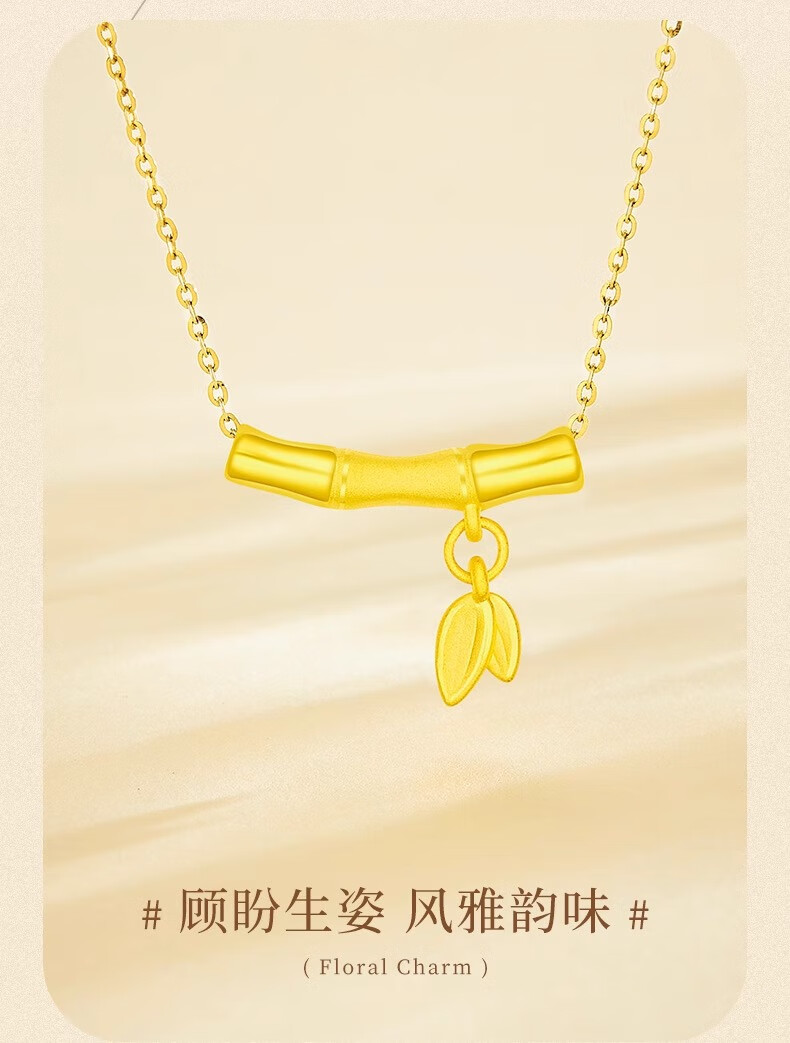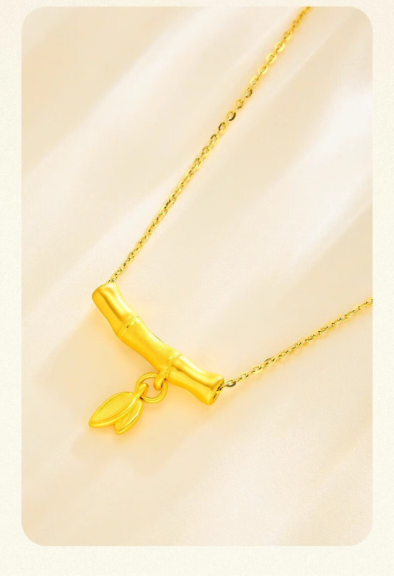 CHINA GOLD 18K gold bamboo pendant women's clavicle necklace light luxury niche Valentine's Day birthday gift for girlfriend and wife 18K gold bamboo pendant about 0.2g free sterling silver chain