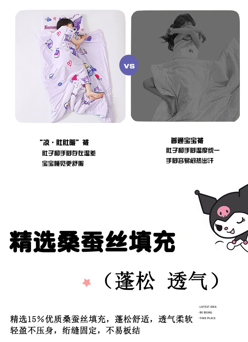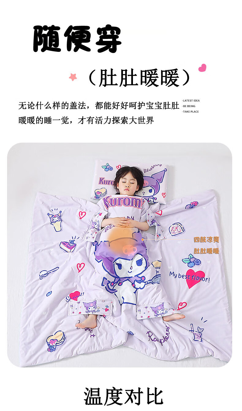 Sleeping bag baby thin summer baby children spring and autumn anti-kicking quilt artifact Sanrio four-season universal belly protection type A Melody anti-kicking quilt recommended temperature 20-35 degrees 140*140cm 3-8 years old