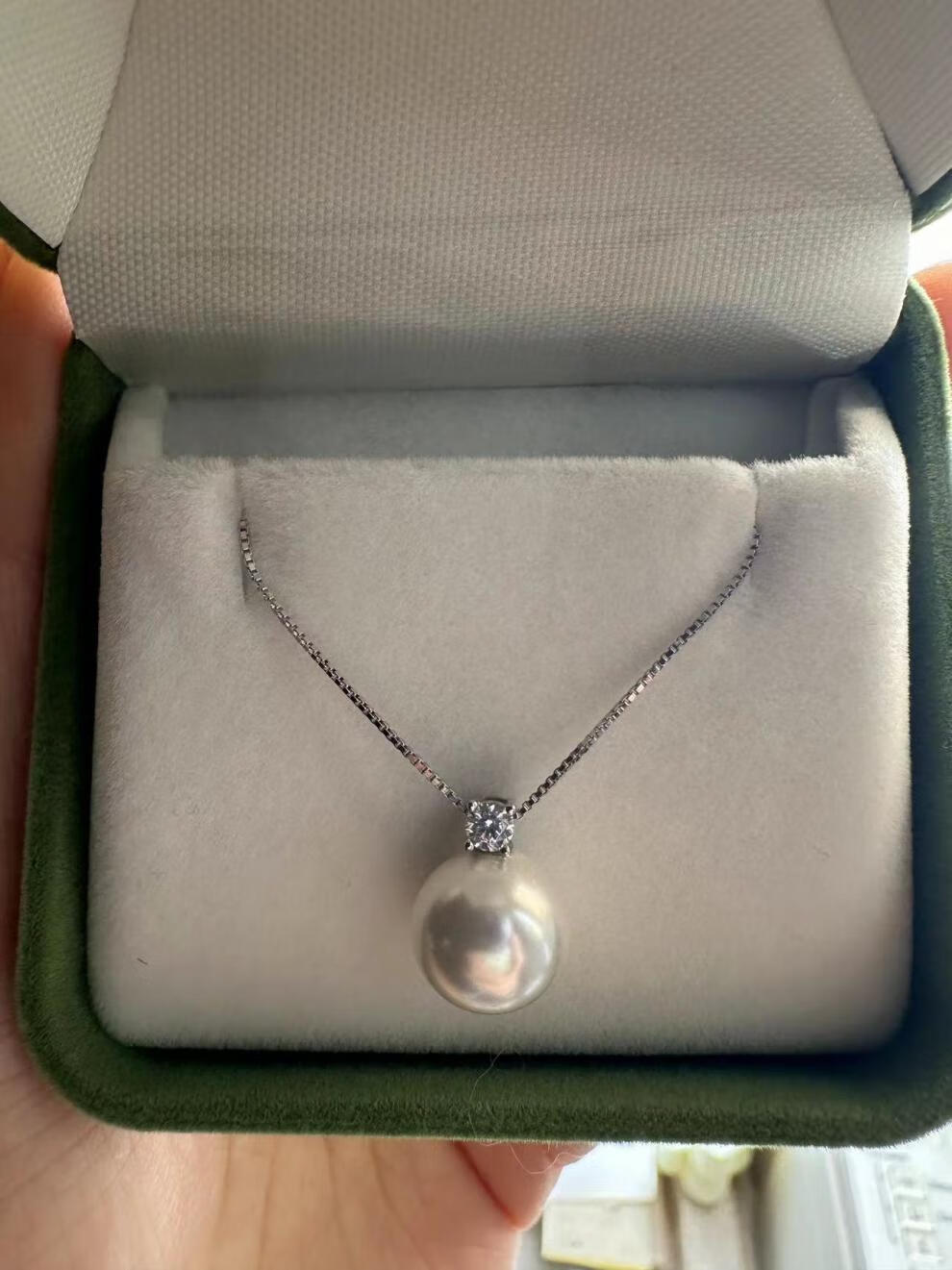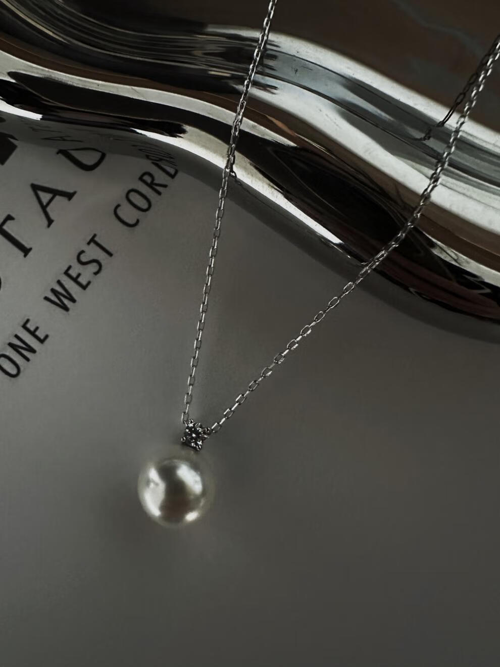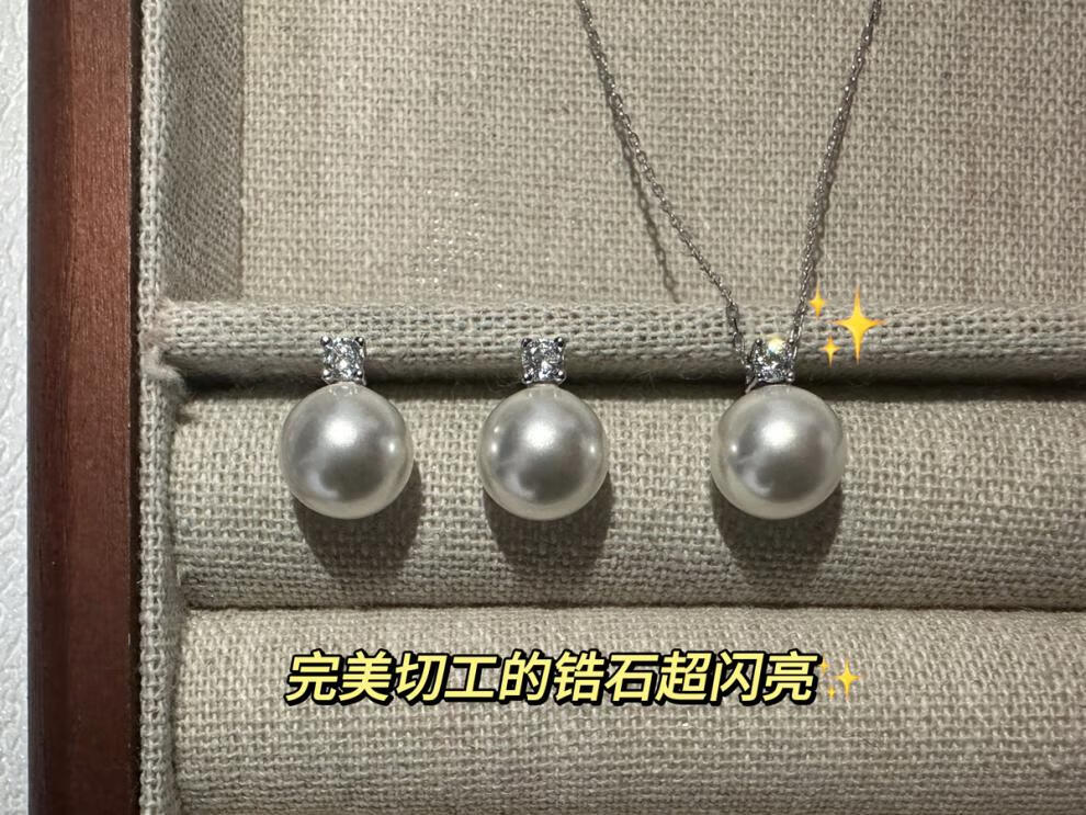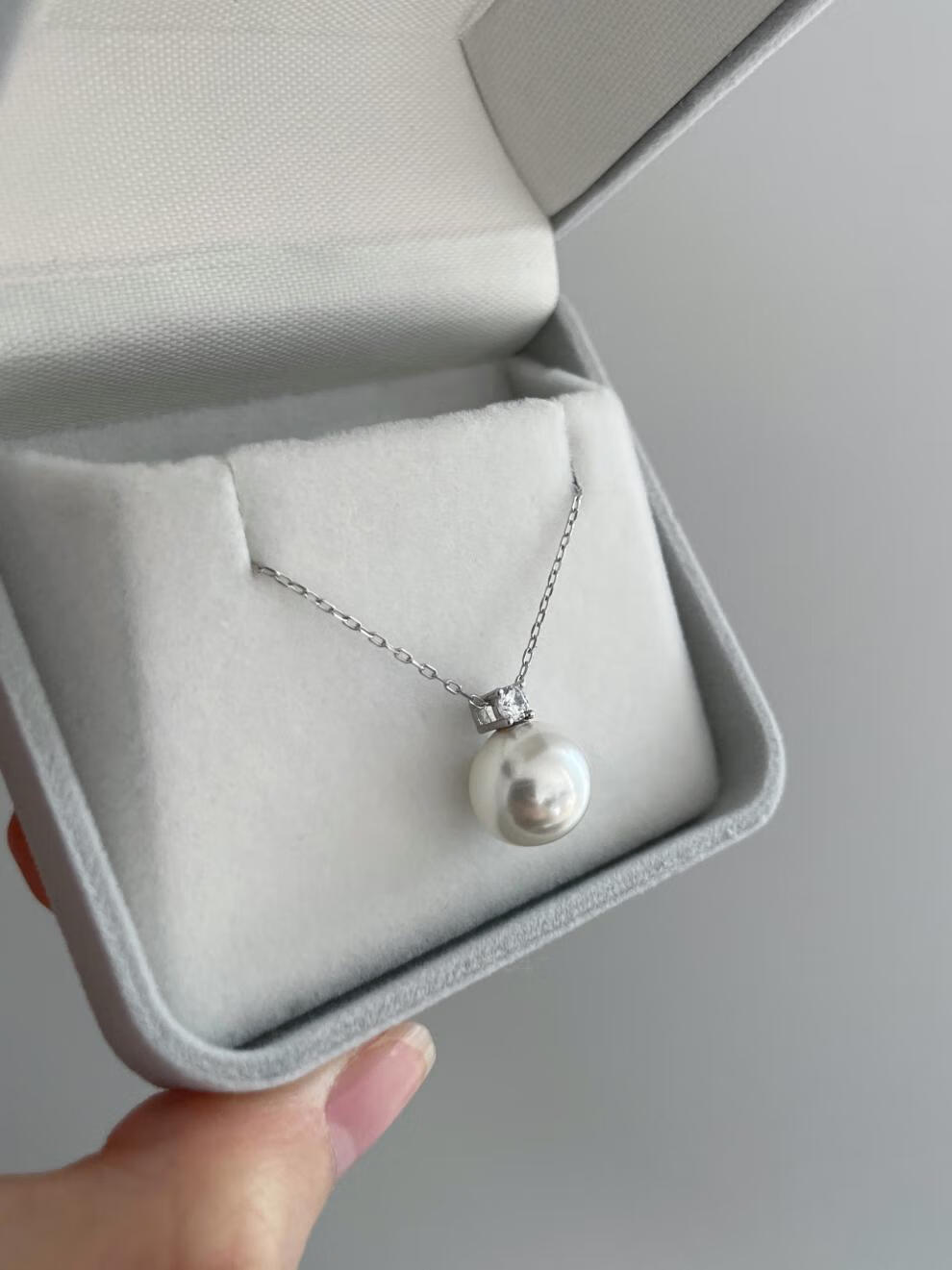 Princess Diana Pearl Necklace S925 Silver Classic Princess Model Australian White Zirconia Model Set with Diamonds 10mm White Beads Cross Chain