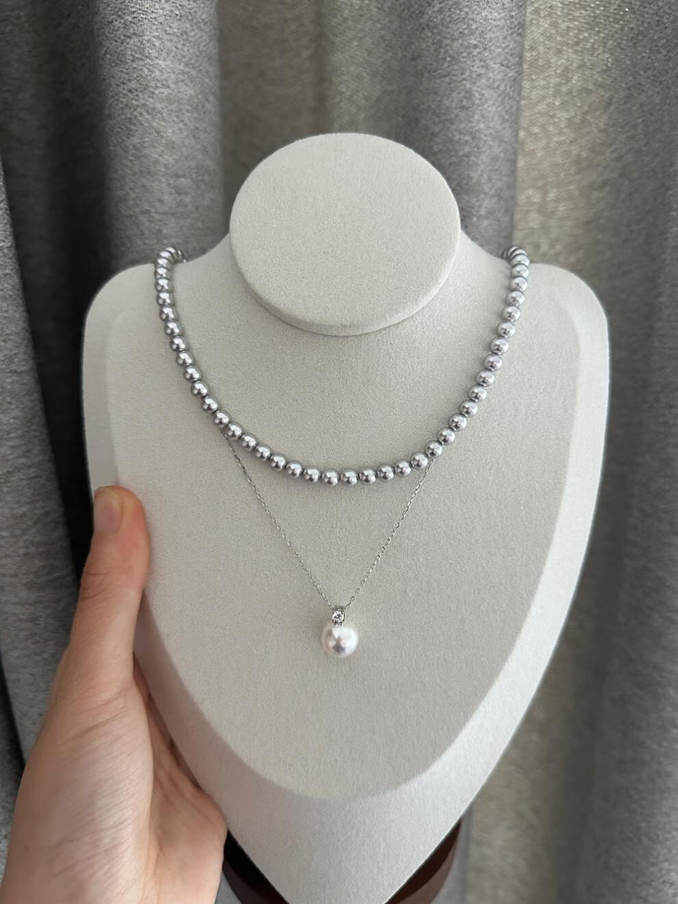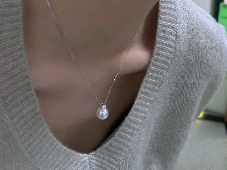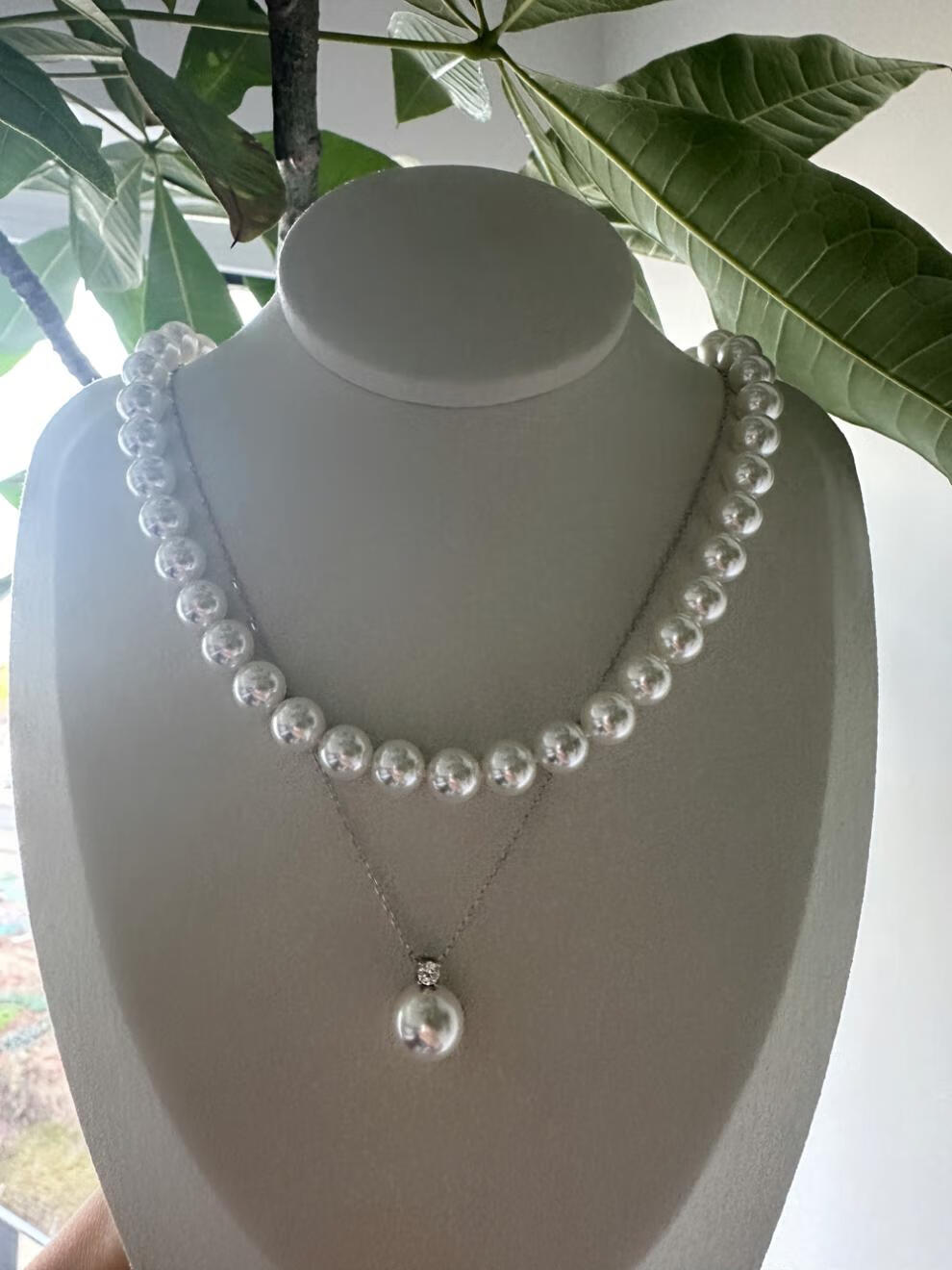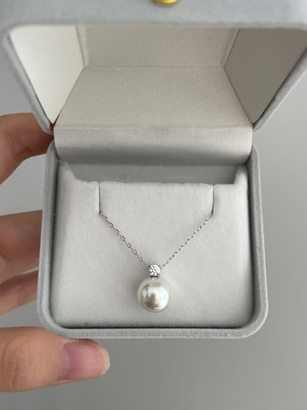 Princess Diana Pearl Necklace S925 Silver Classic Princess Model Australian White Zirconia Model Set with Diamonds 10mm White Beads Cross Chain