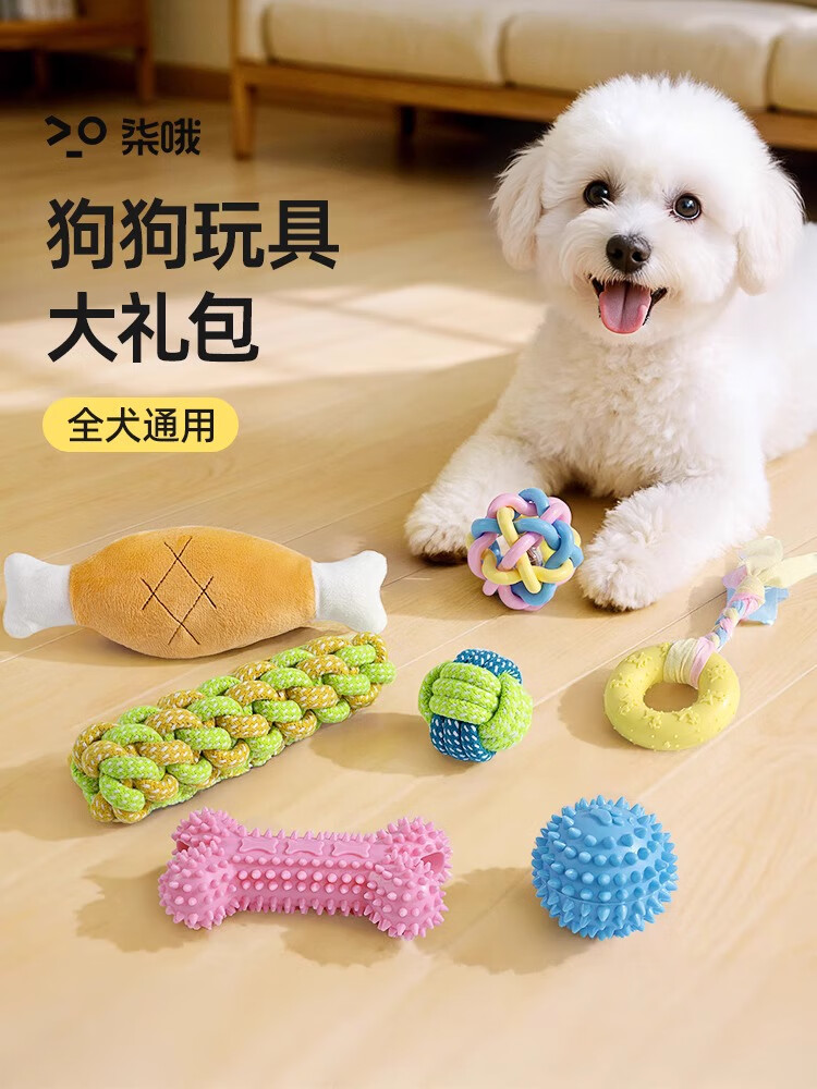 QiOh dog toy gift pack, self-pleasure, self-pleasure, teething and chewing artifact, pet Teddy Bichon small dog puppy, teething set (2-piece set)