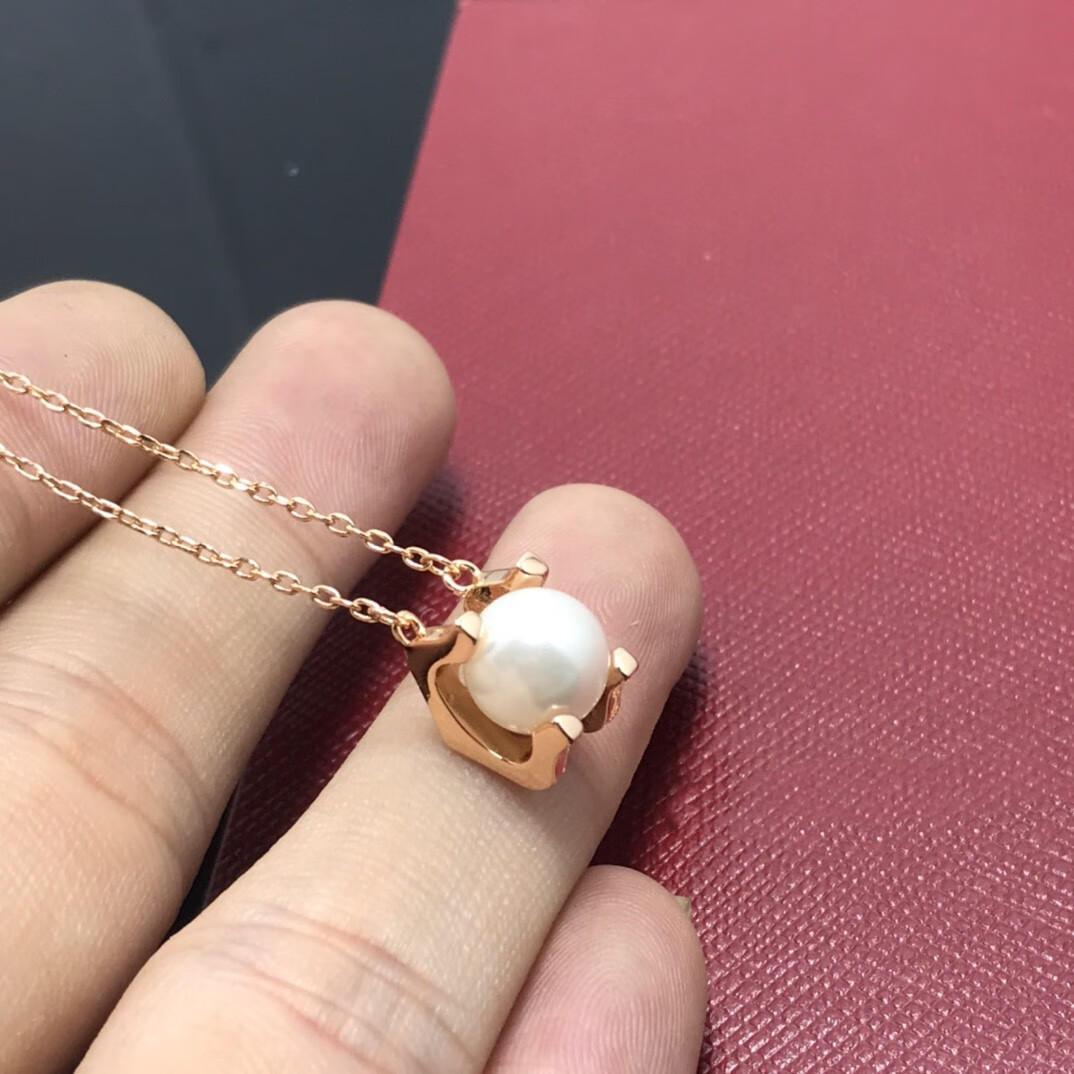 Yadige 6mm Bull Head Natural Pearl Necklace V Gold 18K Female 2025 New Bull Horn Pearl Pendant Clavicle Chain Temperament Champagne Gold