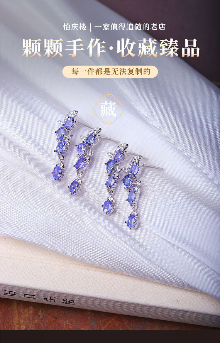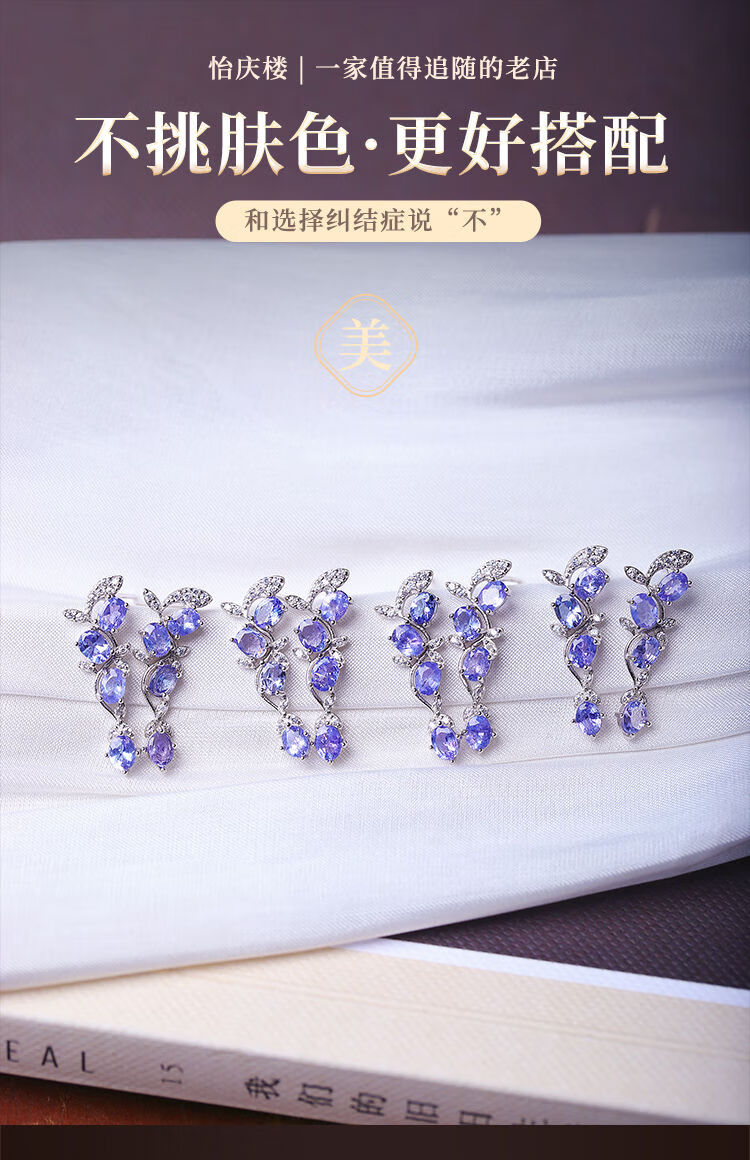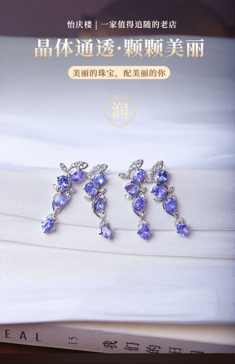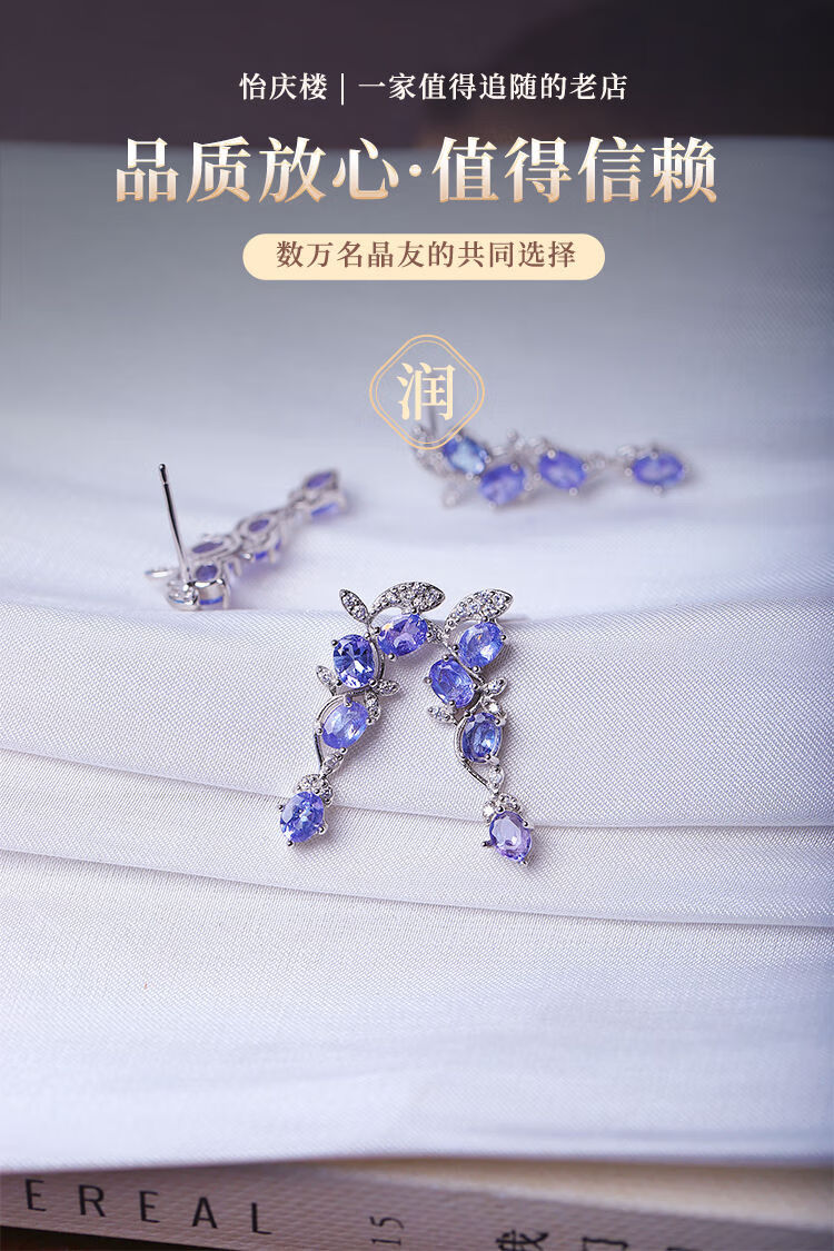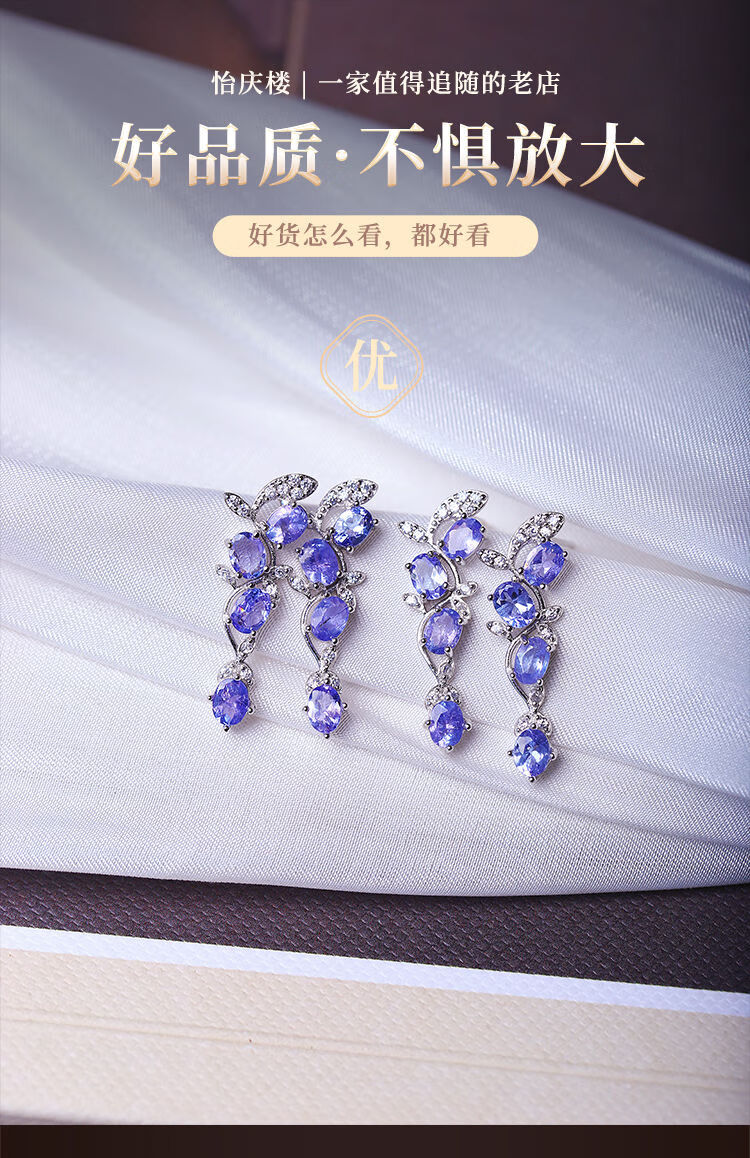 Weici boutique natural tanzanite sterling silver inlaid earrings for women, silver inlaid colorful gemstone crystal earrings jewelry, loose stone about 3*4MM, one pair sent