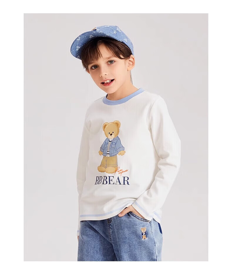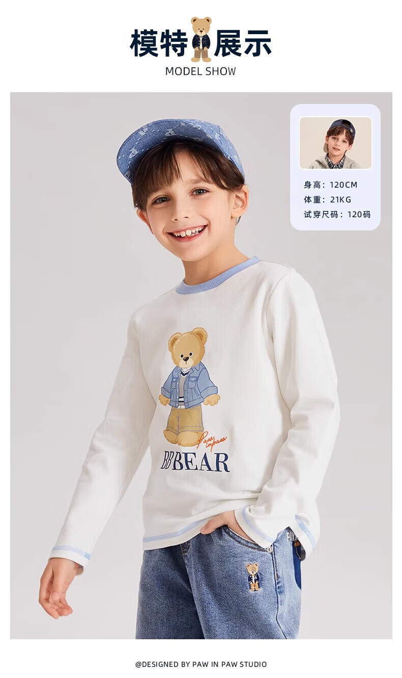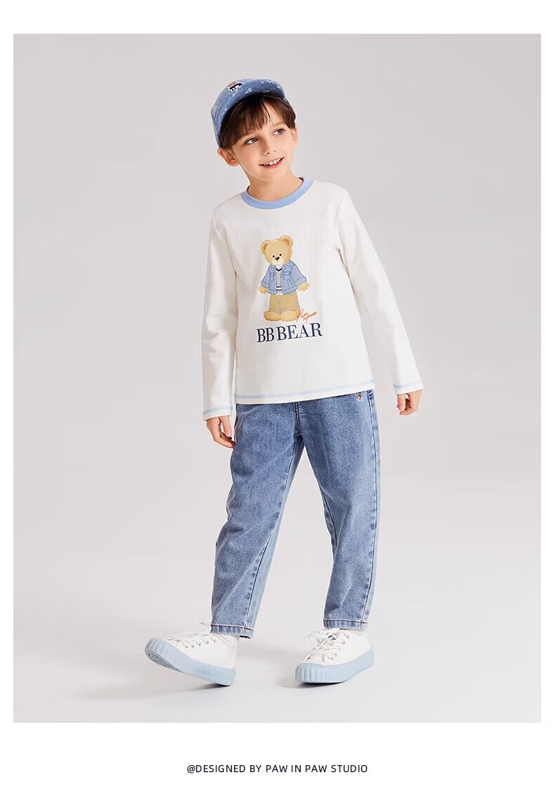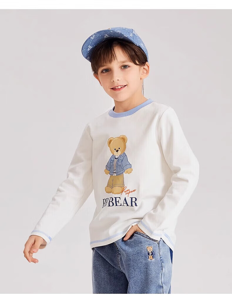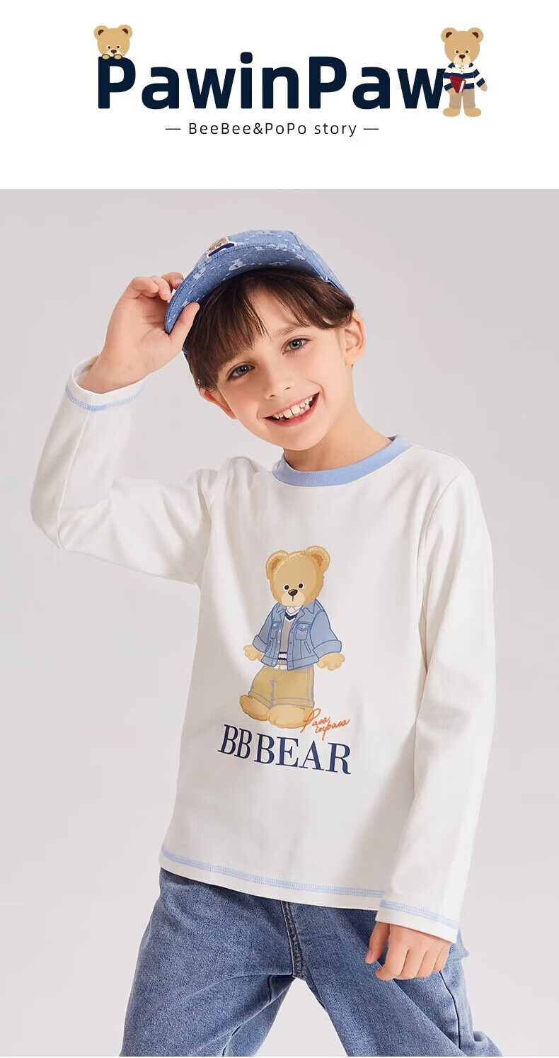 PawinPaw Cartoon Bear Children's Clothing Spring Boys Cartoon Print Round Neck Long Sleeve Children's T-shirt Sale Ivory/39 130 cm
