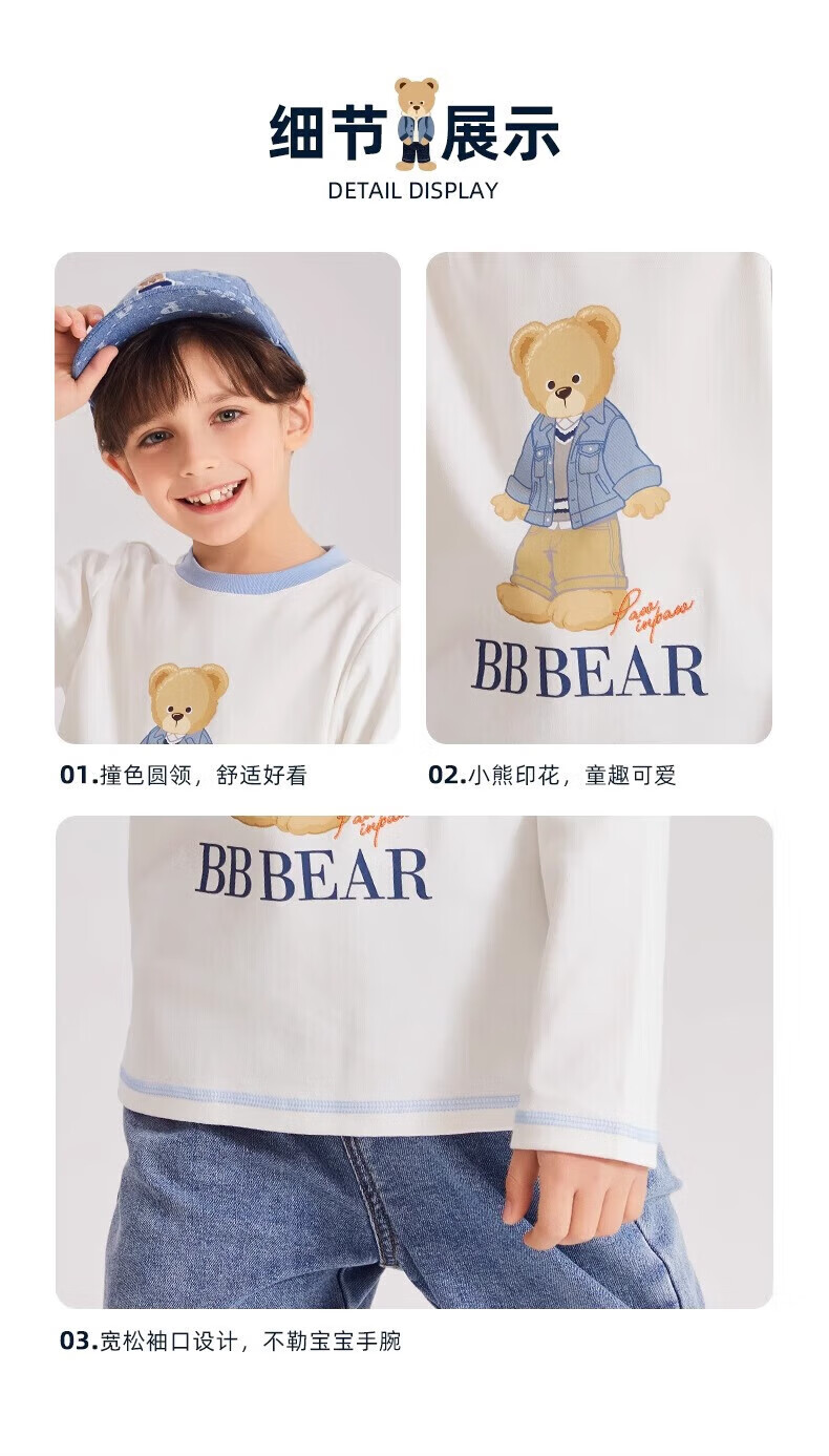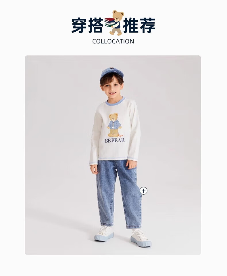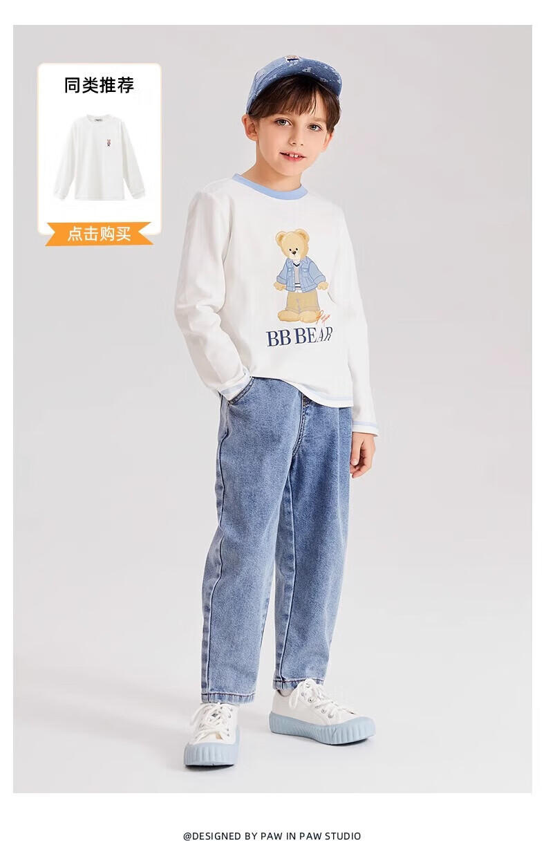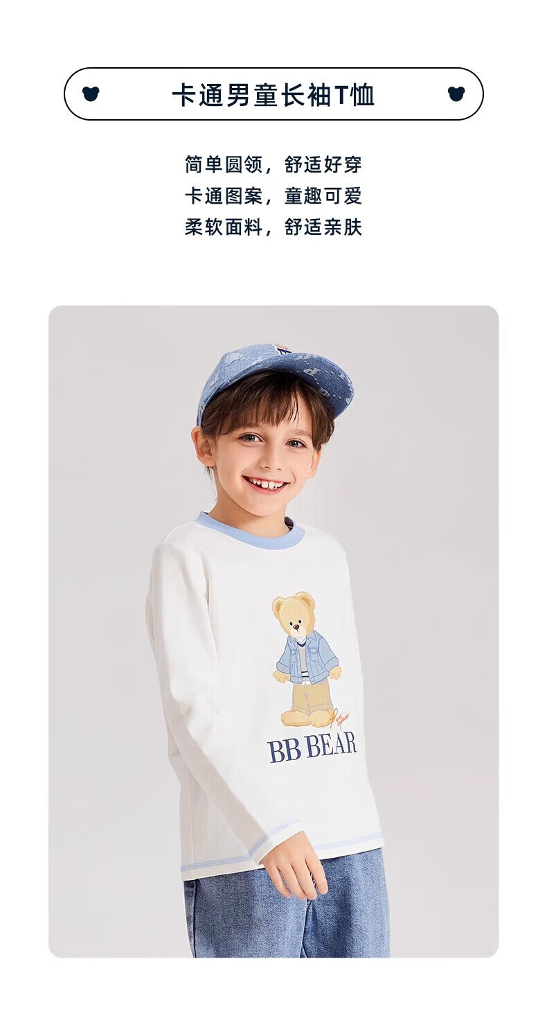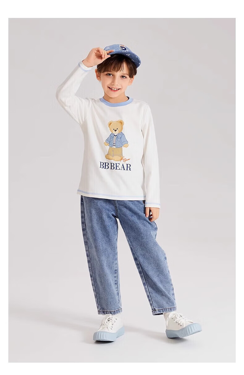 PawinPaw Cartoon Bear Children's Clothing Spring Boys Cartoon Print Round Neck Long Sleeve Children's T-shirt Sale Ivory/39 130 cm