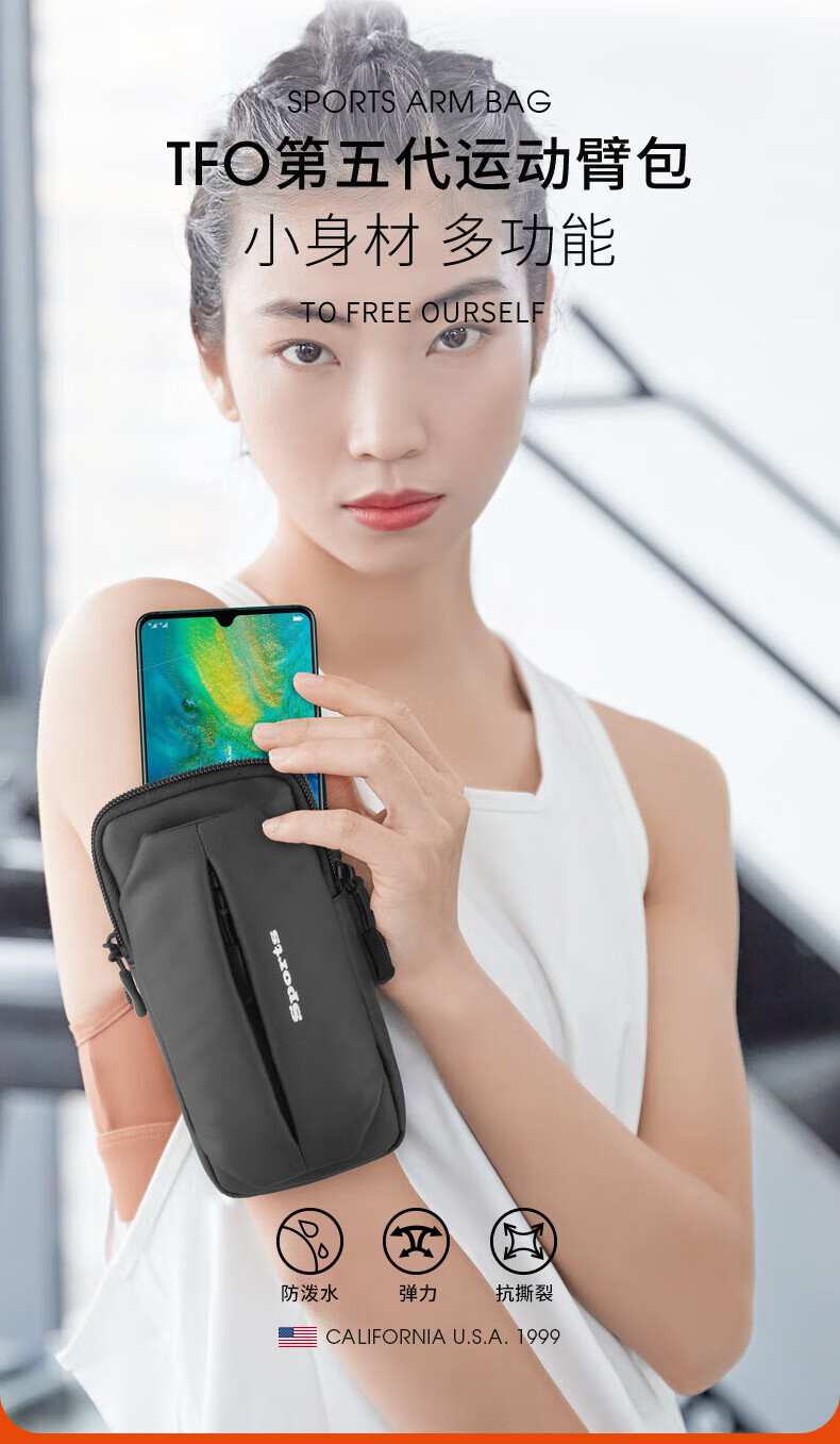 TFO running arm bag, men's and women's sports arm bag, wrist bag, fitness mobile phone bag, lightweight cycling bag, black