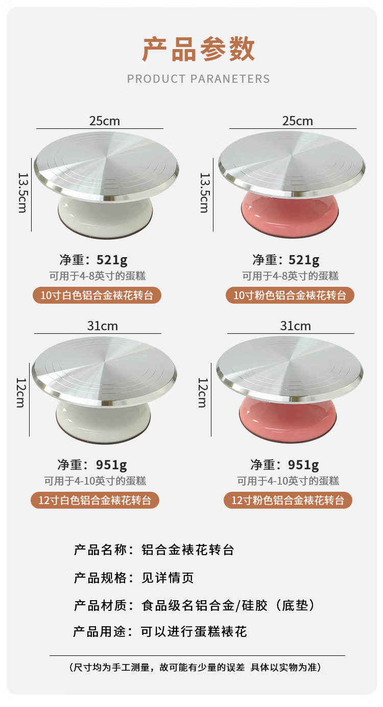 WCZ German cake turntable turntable decorating table cake making tool set aluminum alloy tray rotating home decorating white 10-inch aluminum alloy decorating turntable