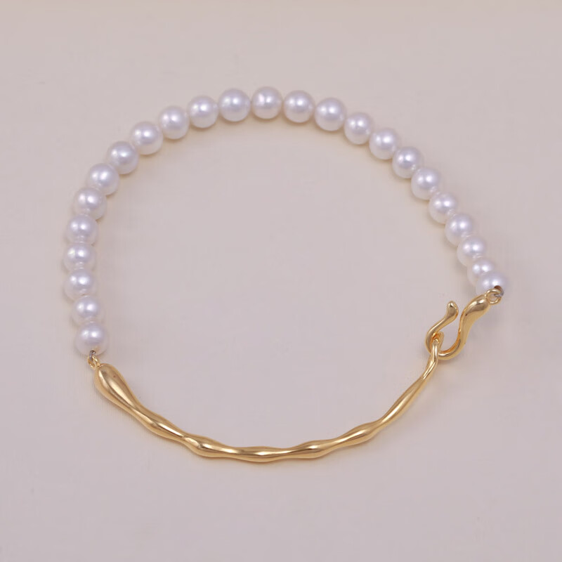 Chili DIY Pearl Accessories S925 Sterling Silver K Gold Craft Fashion Irregular Bracelet Bracelet Hand Decoration Pearl Empty Accessories S925 Silver-Golden Bracelet Does Not Include Pearls