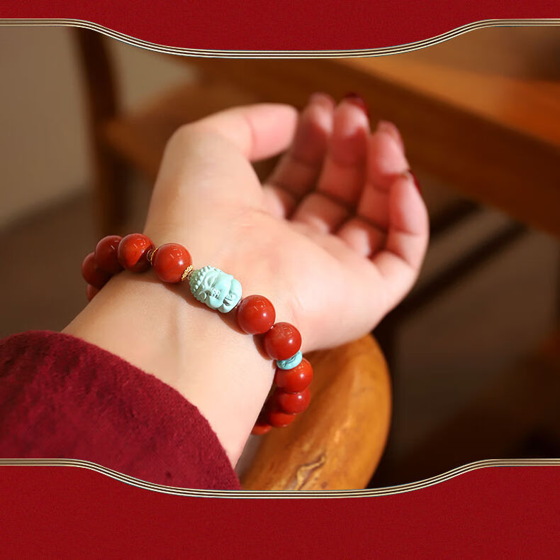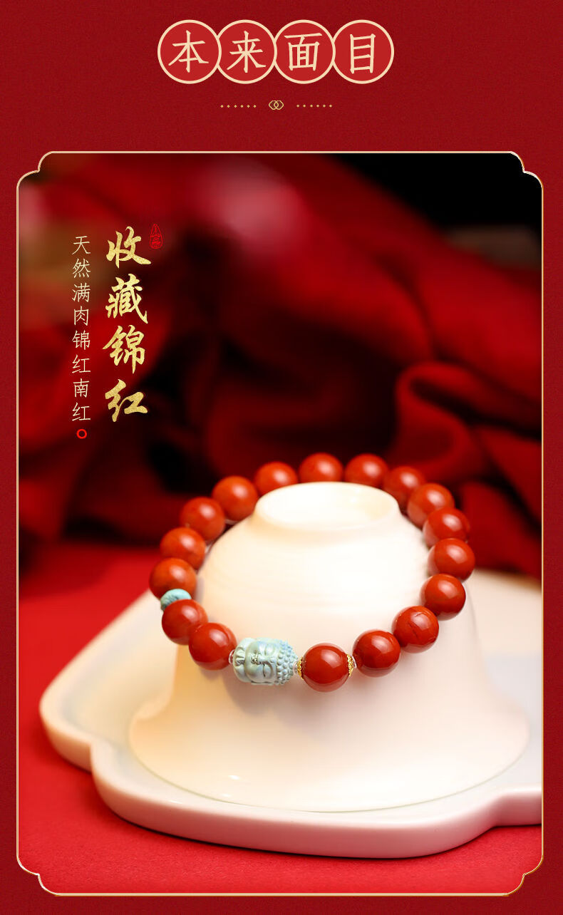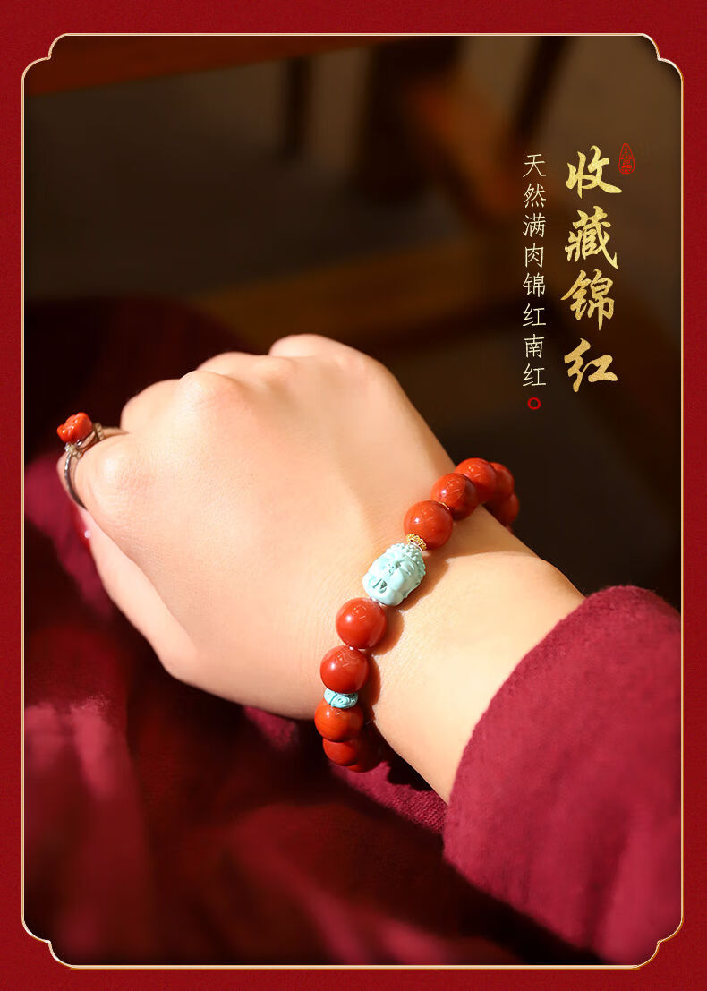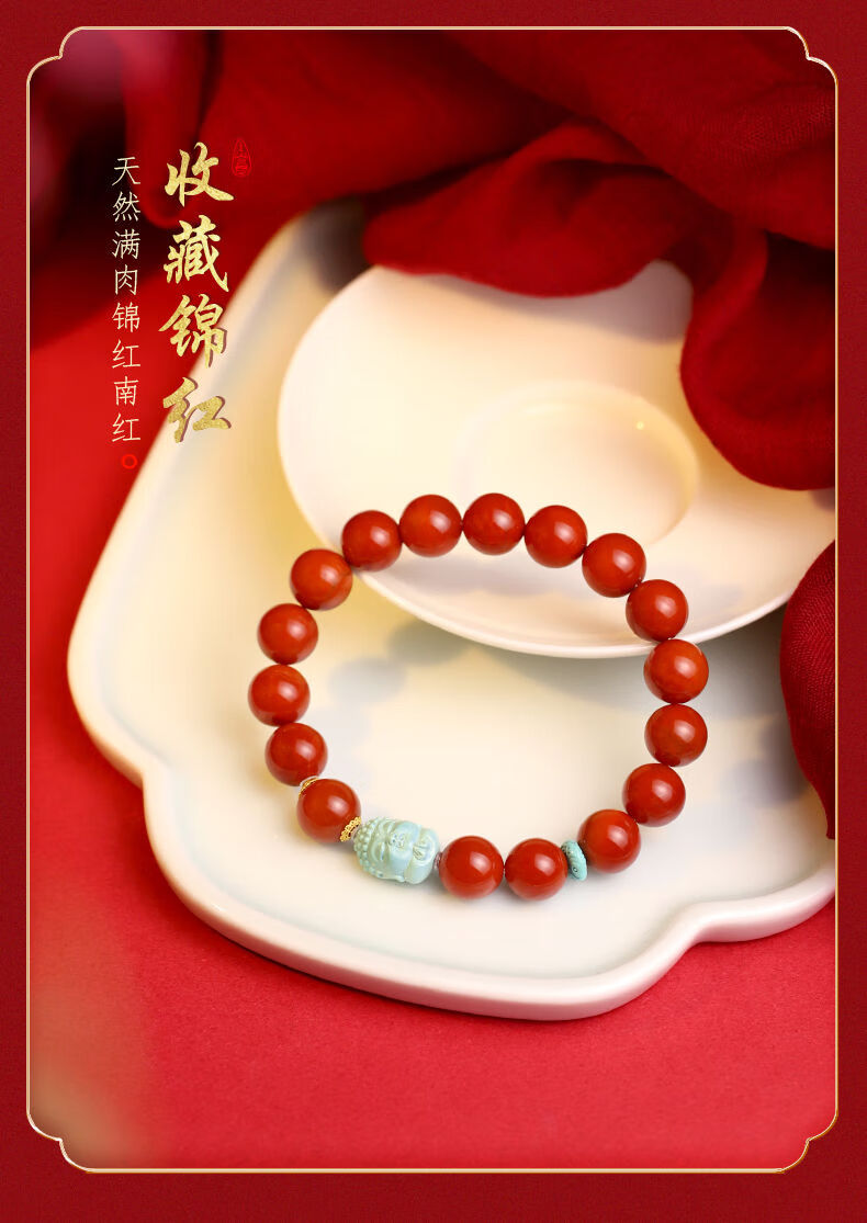 Weici 2025 new fashion collection natural brocade red south red agate bracelet for women's birth year green pine bracelet