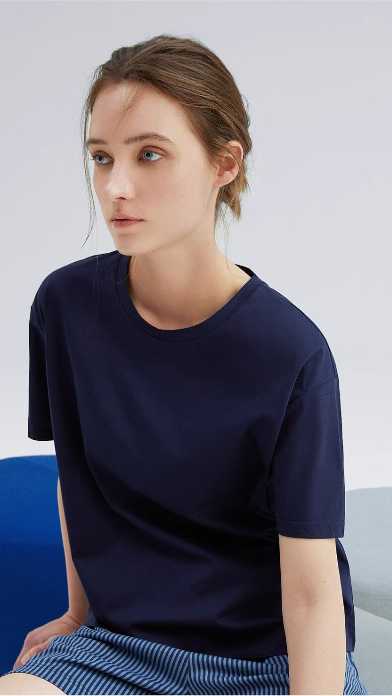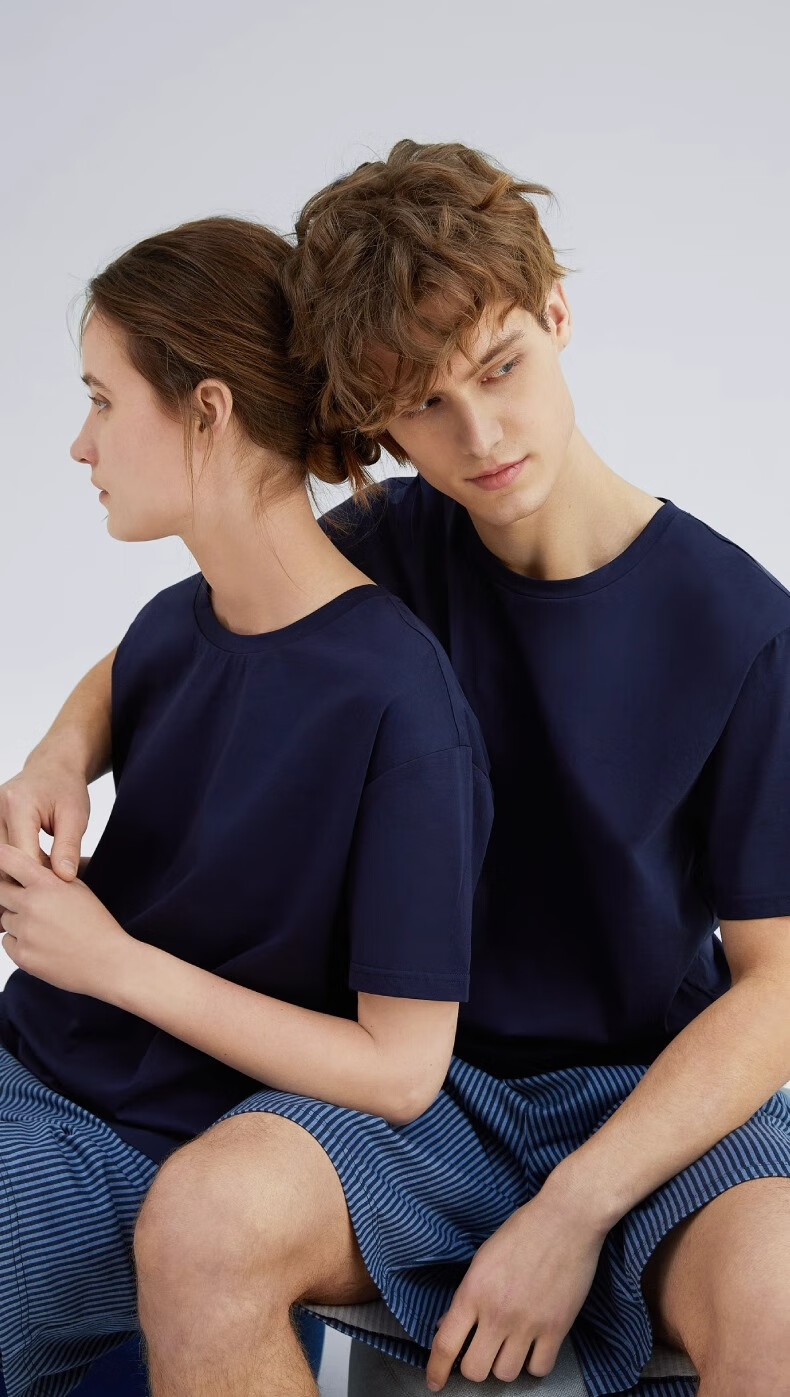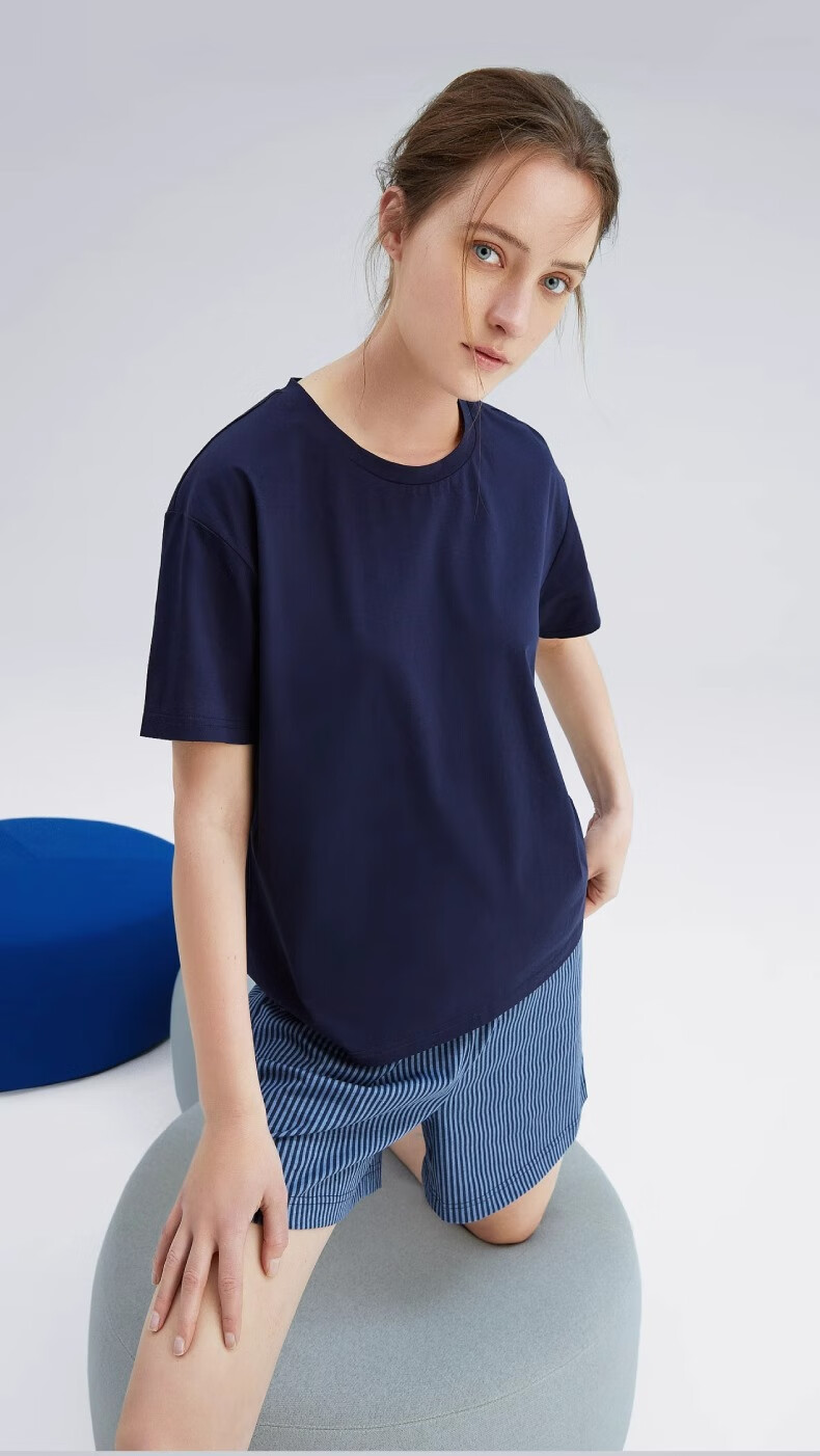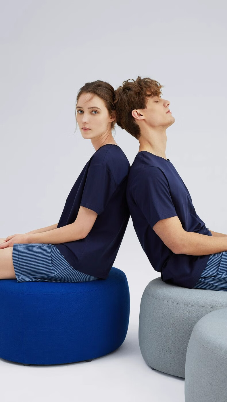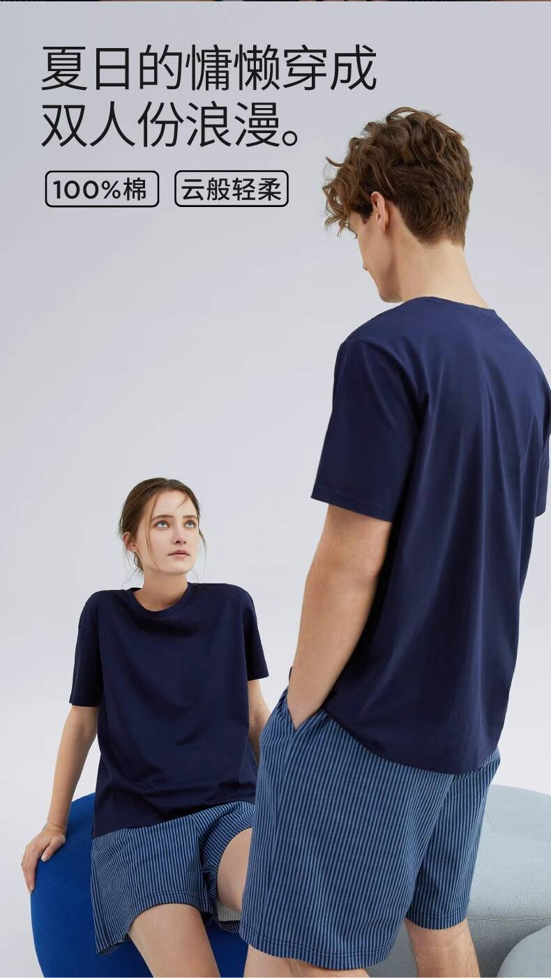 Chundu Summer Couple Pajamas Women's Pure Cotton Early Autumn and Early Spring High-Quality Pinstripes Wearable Home Clothing Men's Suit Navy/Dark Blue Stripes Women's XL