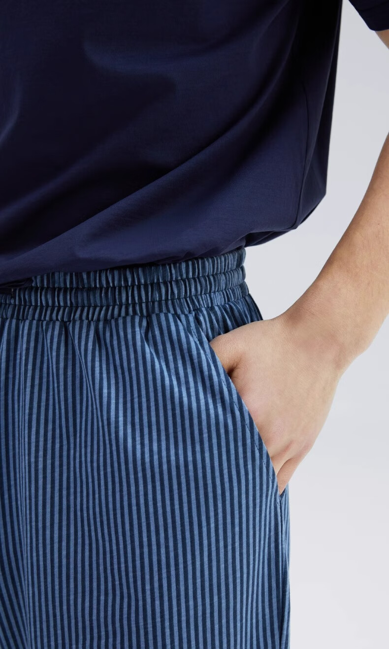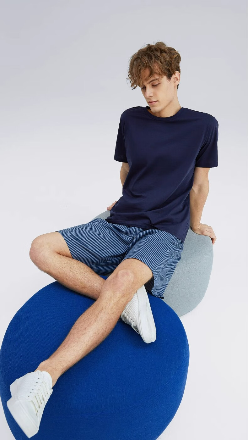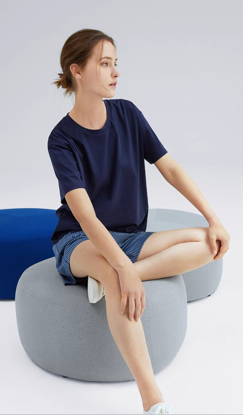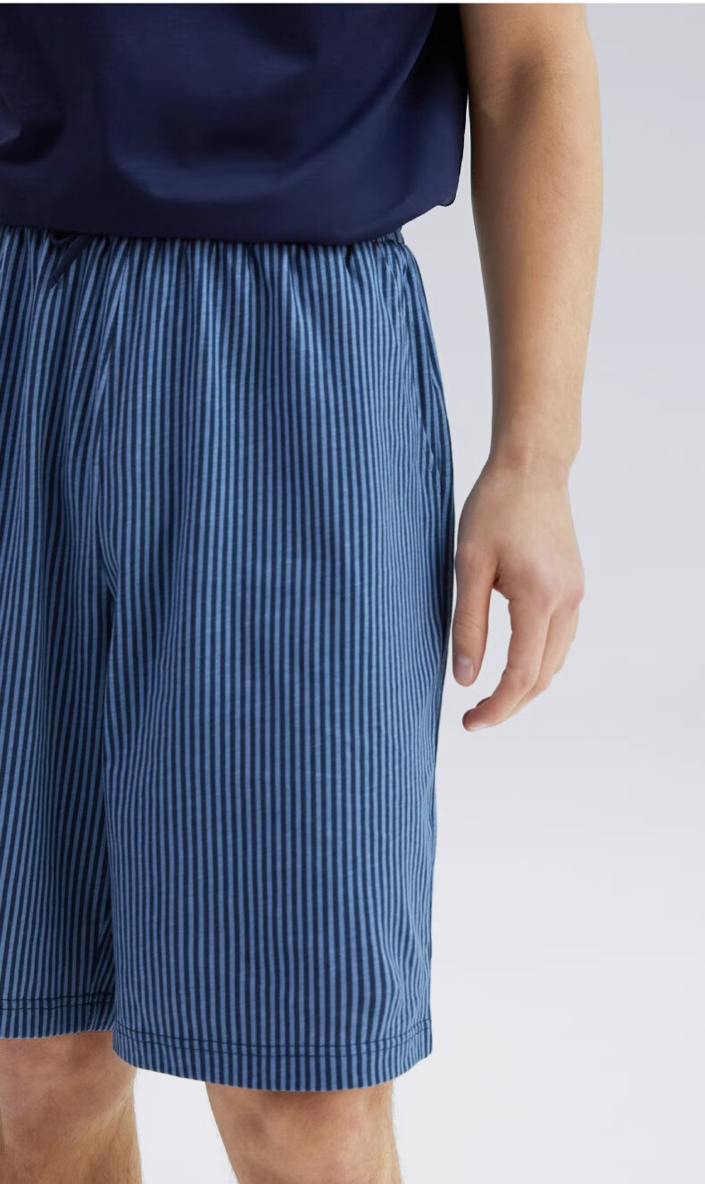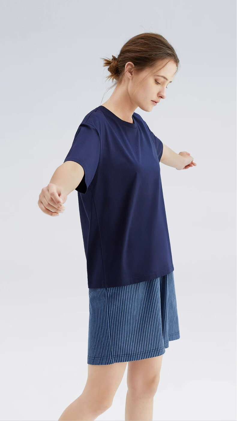 Chundu Summer Couple Pajamas Women's Pure Cotton Early Autumn and Early Spring High-Quality Pinstripes Wearable Home Clothing Men's Suit Navy/Dark Blue Stripes Women's XL