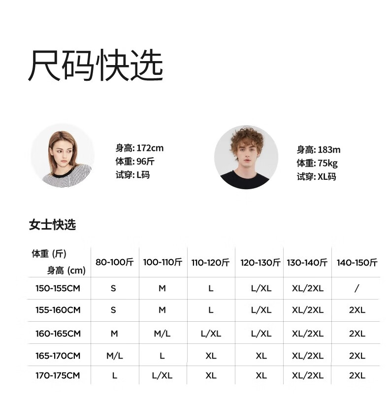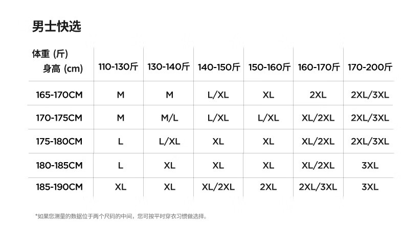 China (cm) 160-165/84-86 165-170 / 88-90 167-172 / 92-96 168-173 / 98-102 170-176 / 106-110