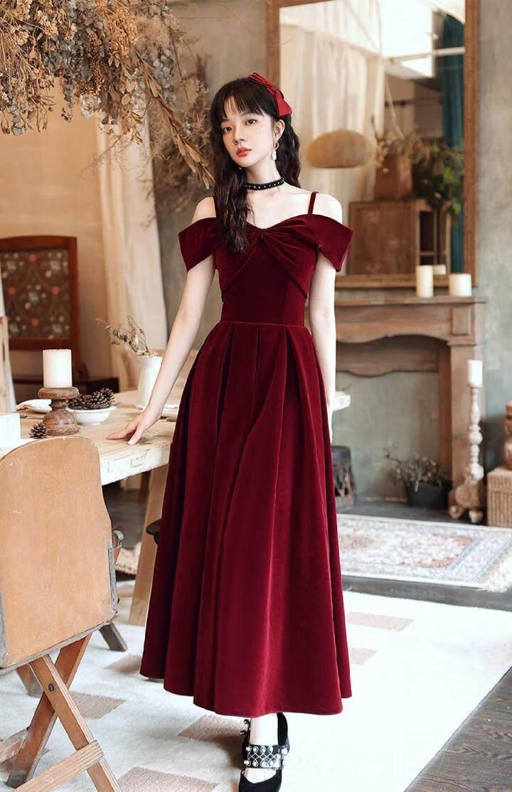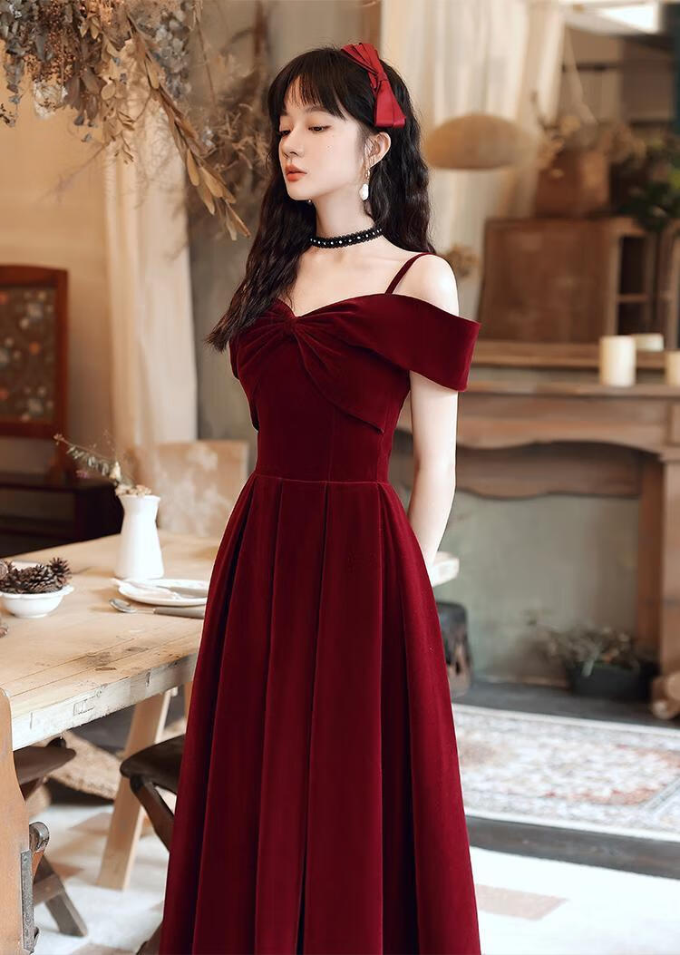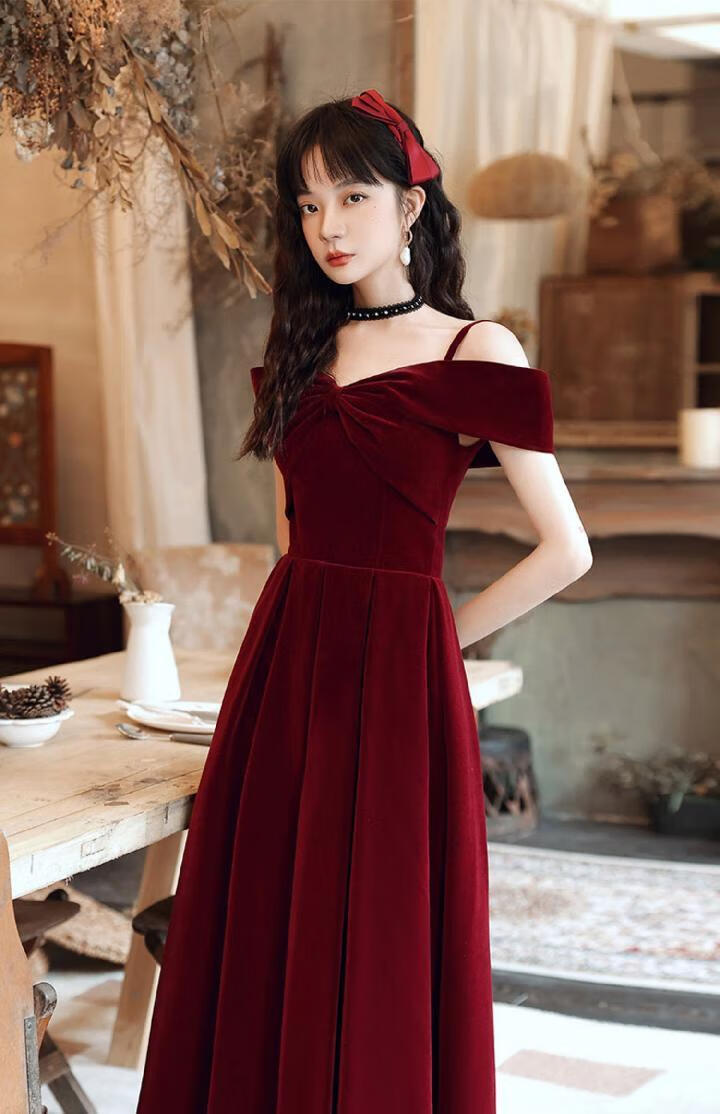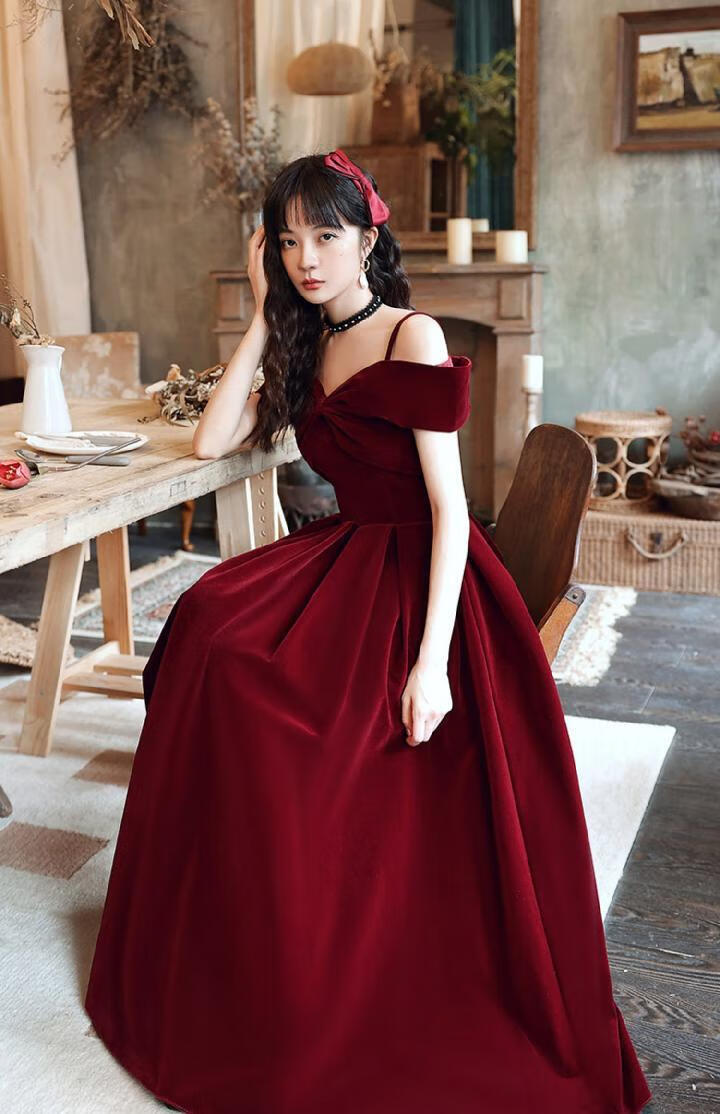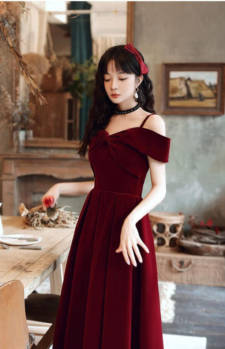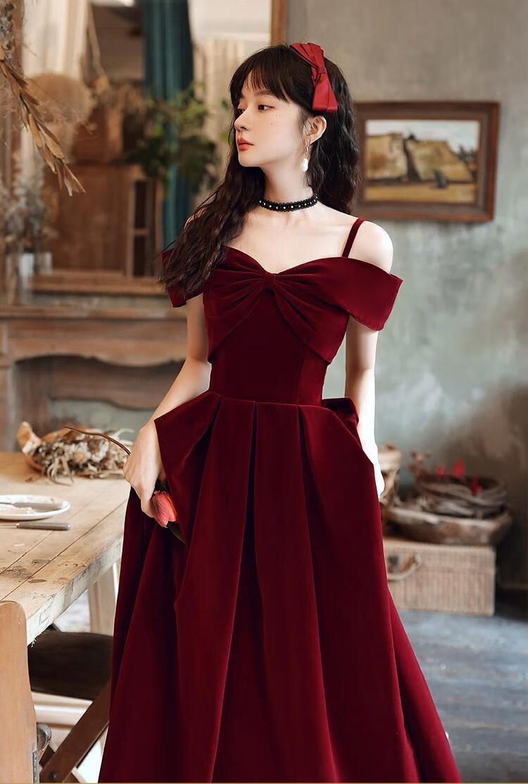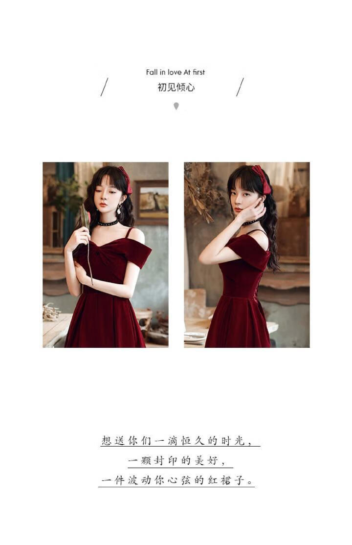 Zhenji wine red toast dress 2025 autumn and winter new bridal temperament suspender velvet engagement dress female wedding dress wine red L