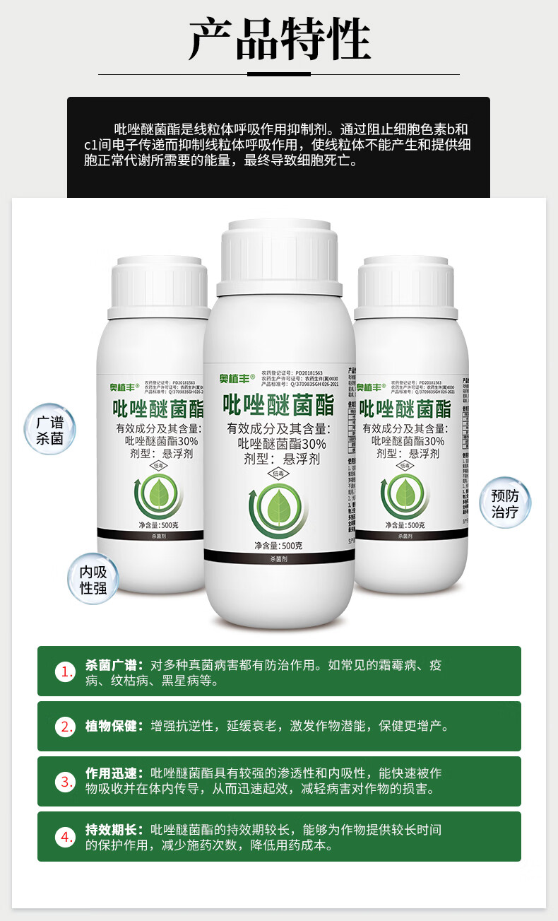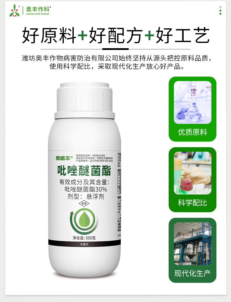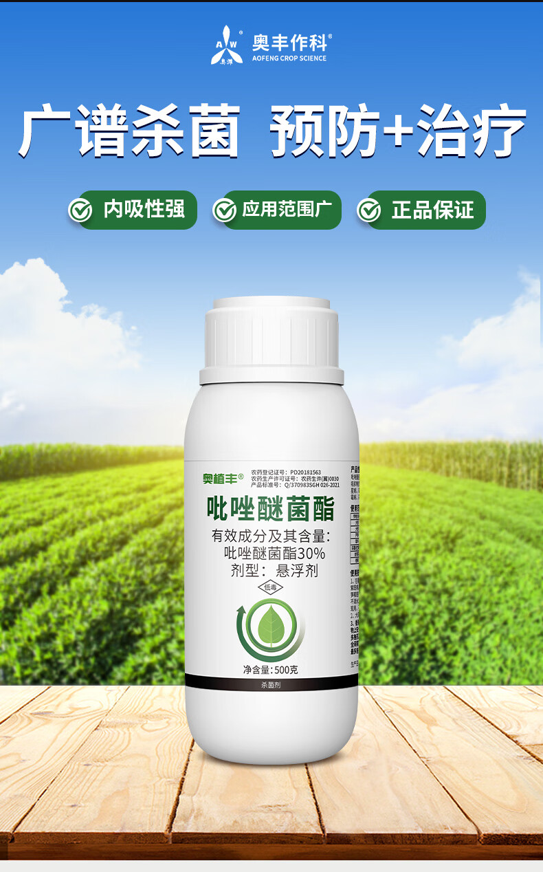 Aowei Aofeng 30% pyraclostrobin has strong systemic preventive treatment and long-lasting effect, genuine agricultural fungicide pesticide 500g*20 bottles
