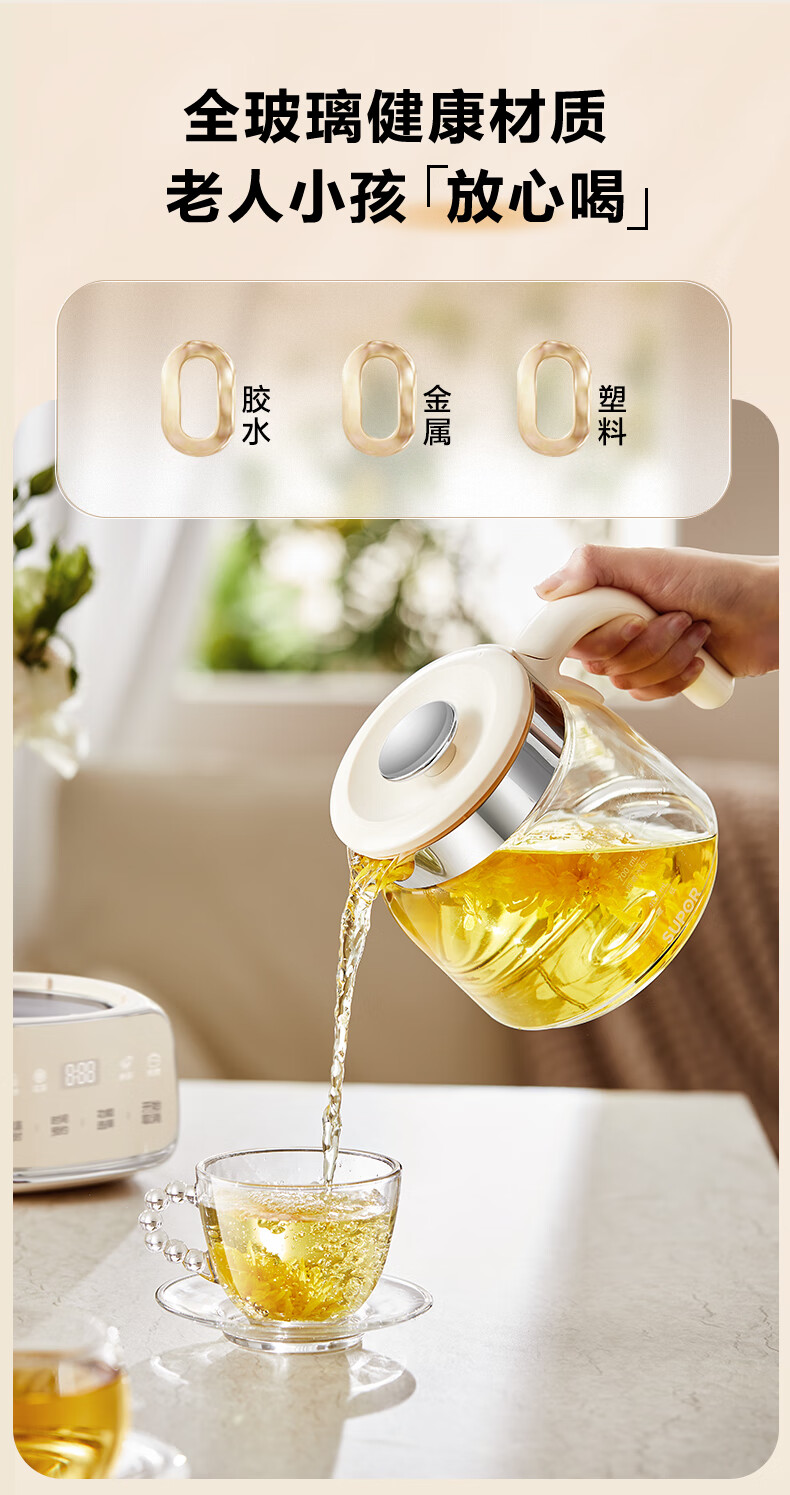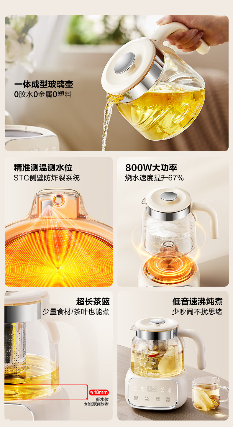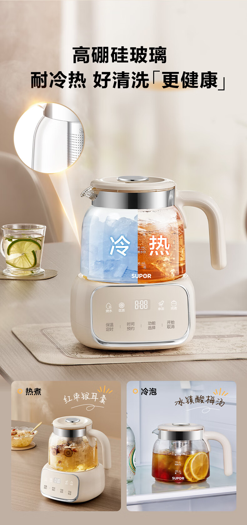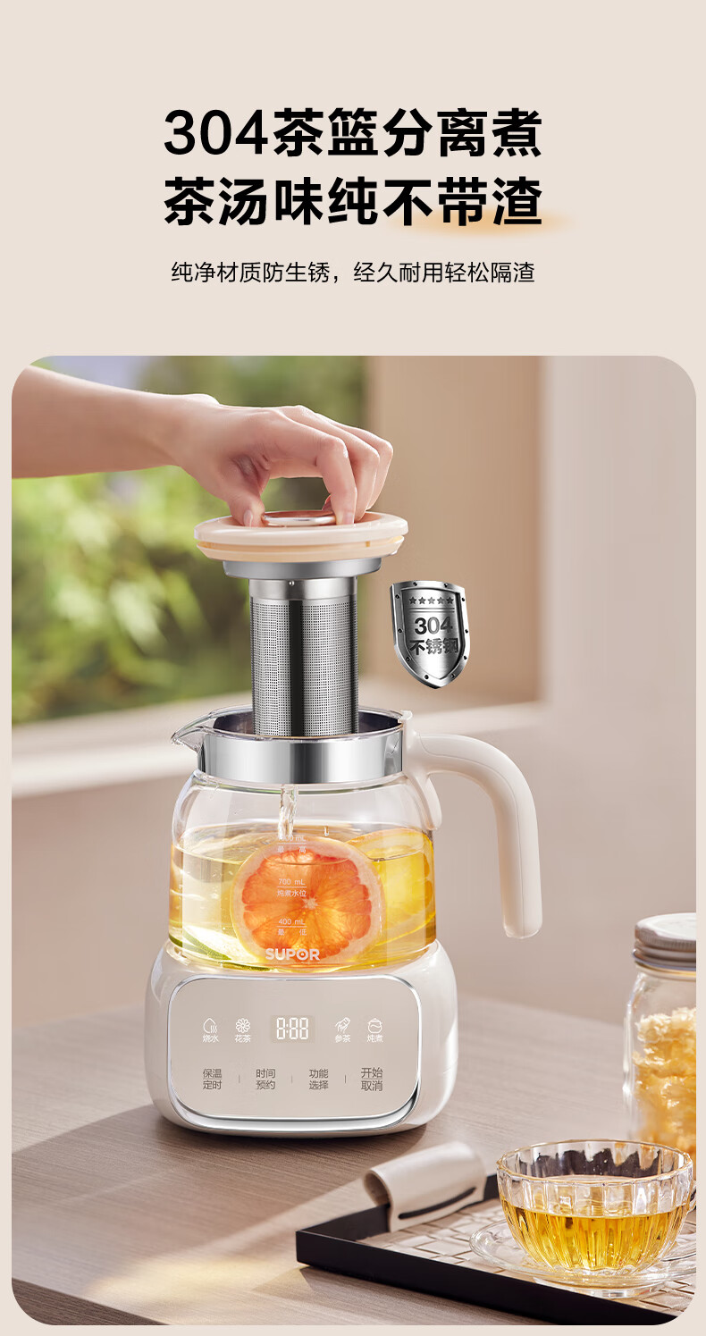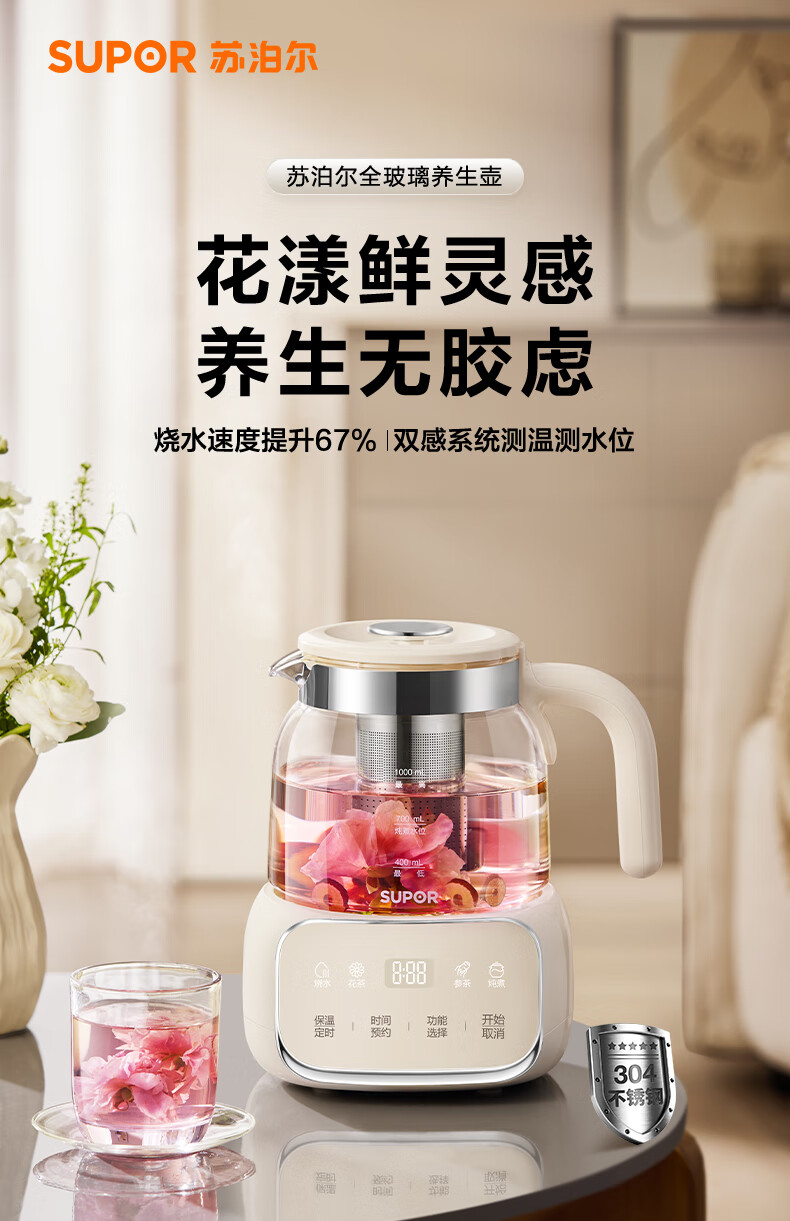 SUPOR health pot all-glass kettle office mini tea maker stew all-in-one teapot household flower teapot small thermostatic pot 0 glue health electric kettle touch + 304 stainless steel filter 1L 10Y02Q