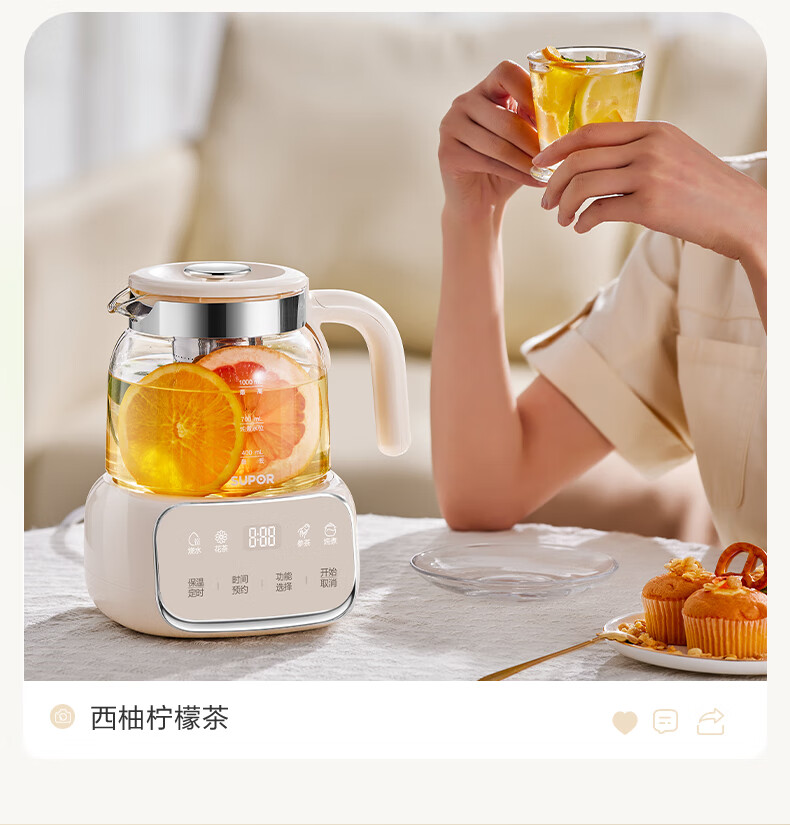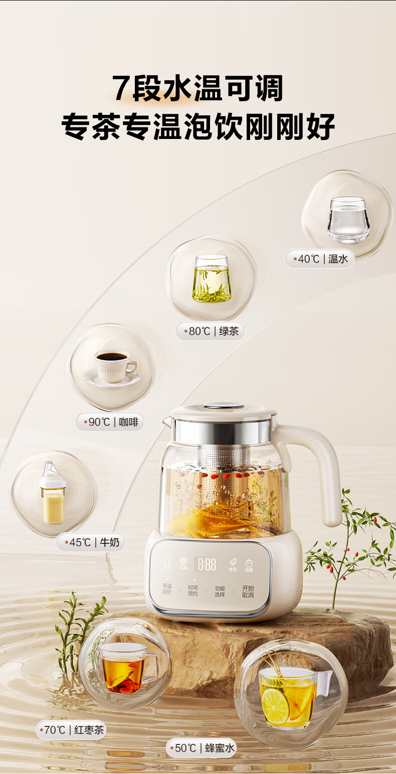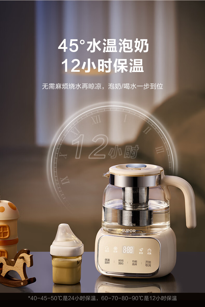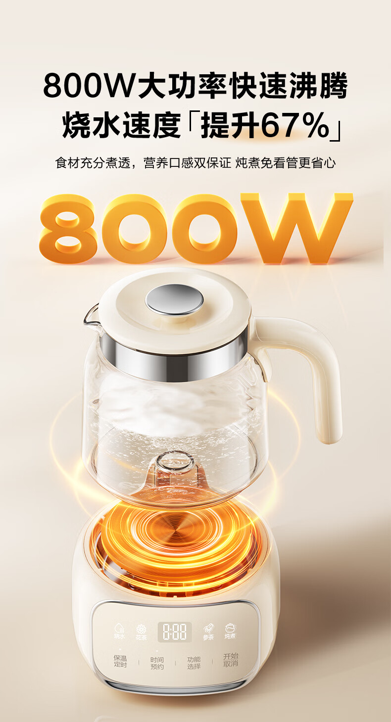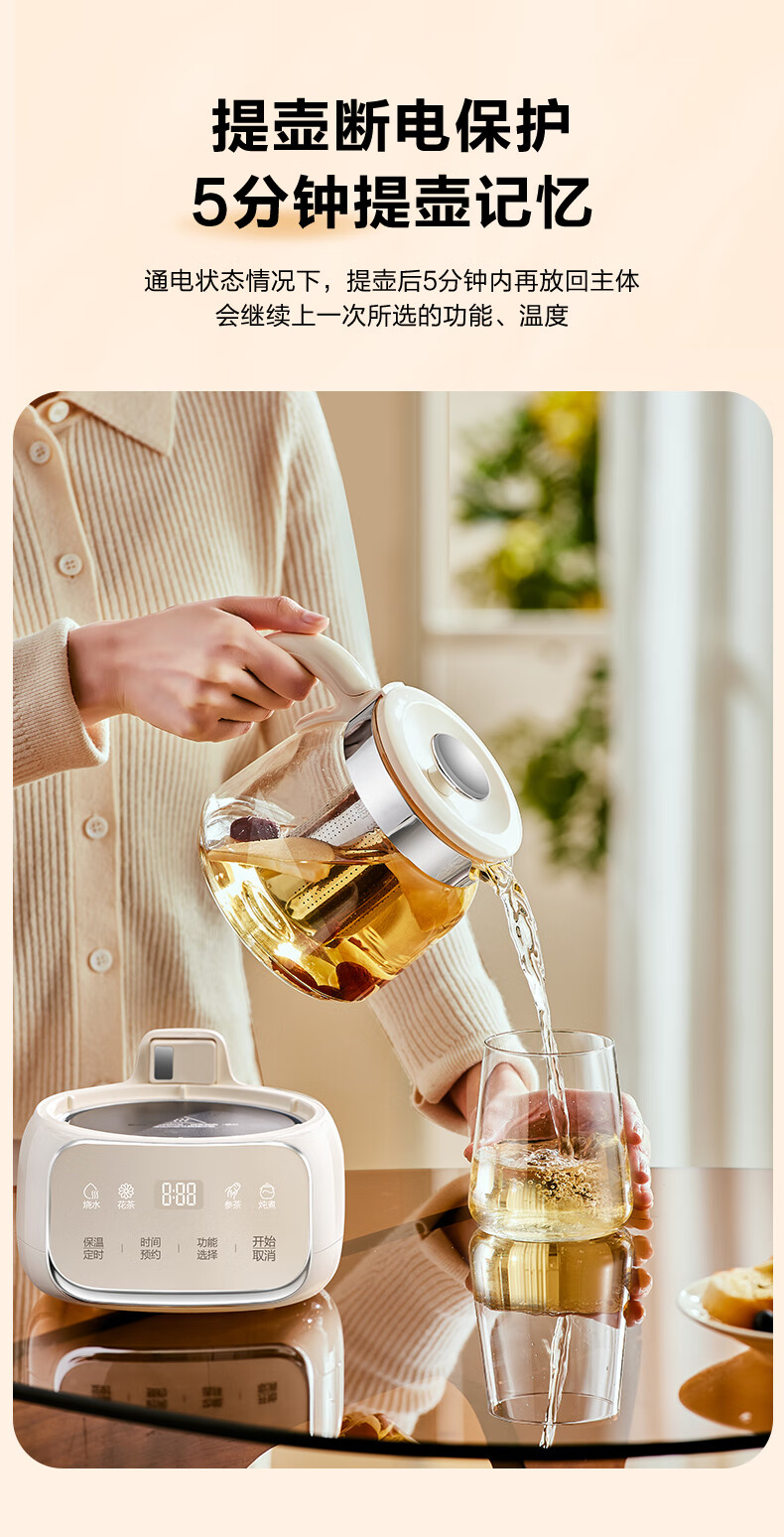 SUPOR health pot all-glass kettle office mini tea maker stew all-in-one teapot household flower teapot small thermostatic pot 0 glue health electric kettle touch + 304 stainless steel filter 1L 10Y02Q