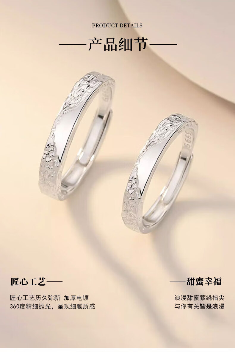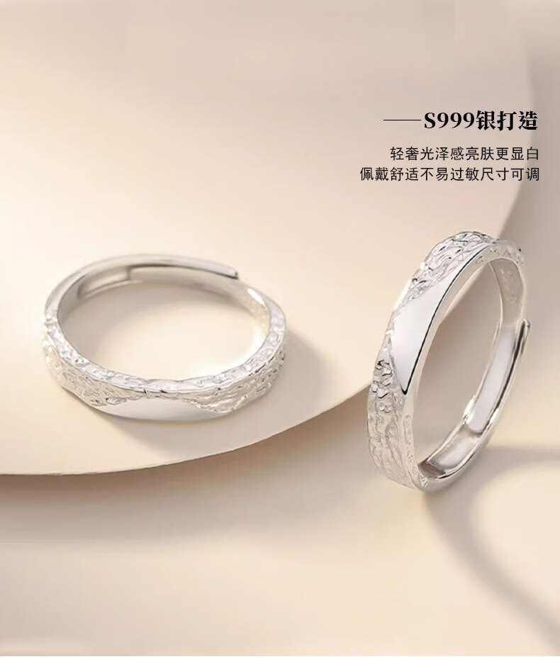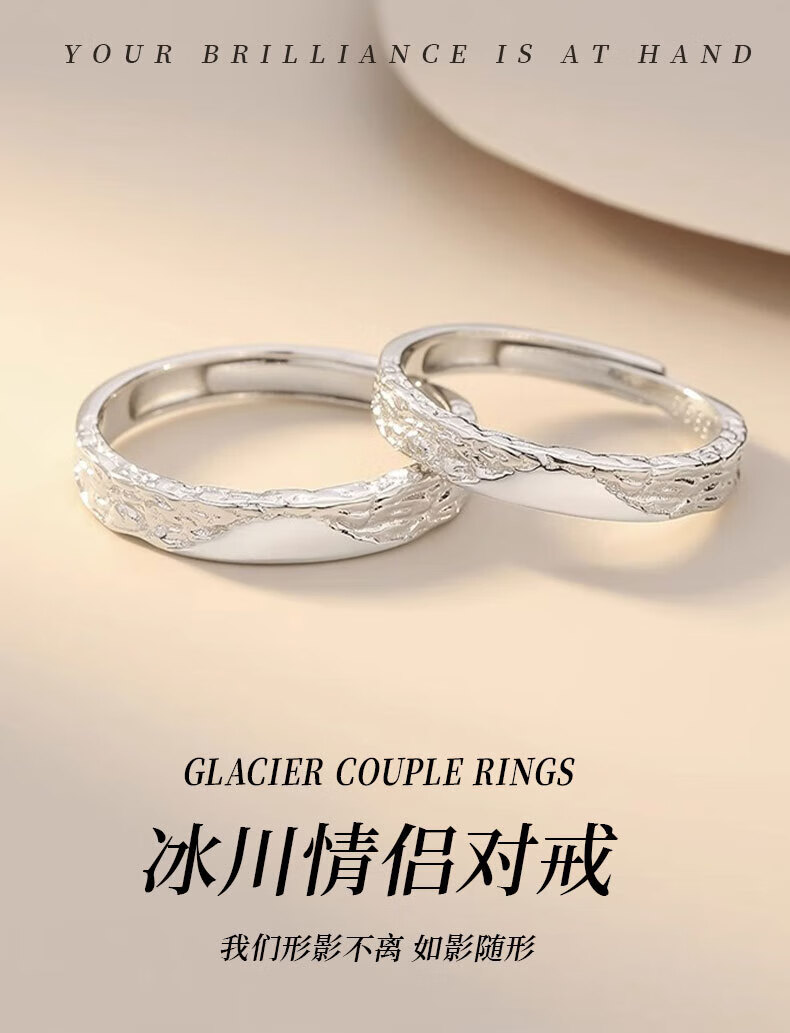 Lao Fengxiang pure silver glacier couple ring men's and women's iceberg live ring pair ring Valentine's Day birthday gift for girlfriend when/next day delivery - glacier ring couple pair