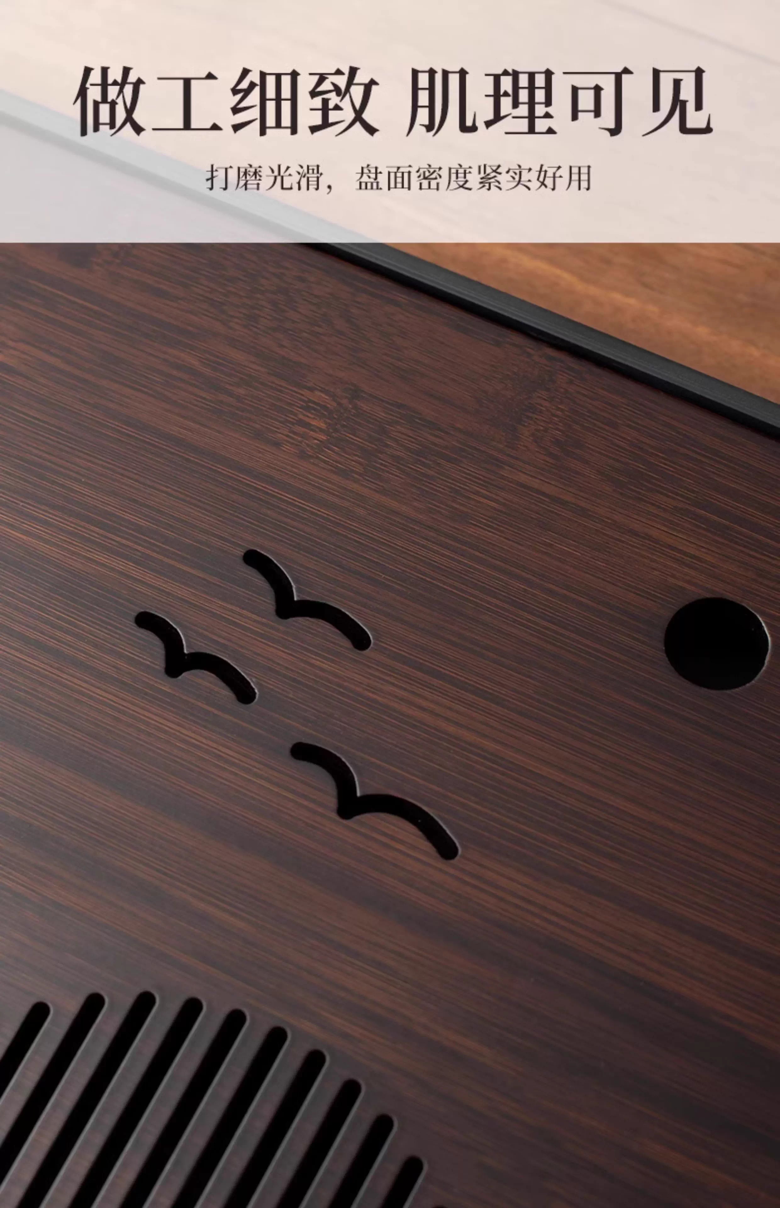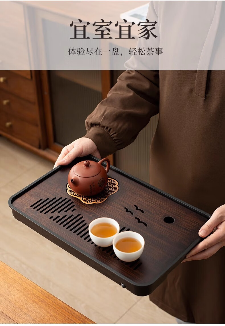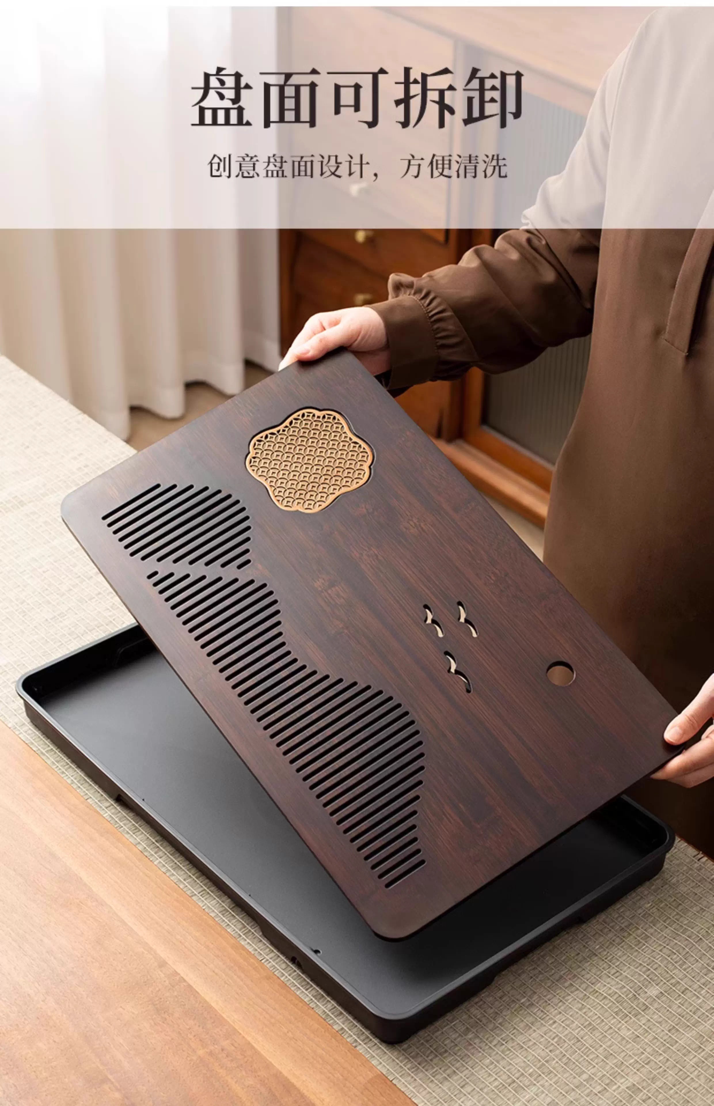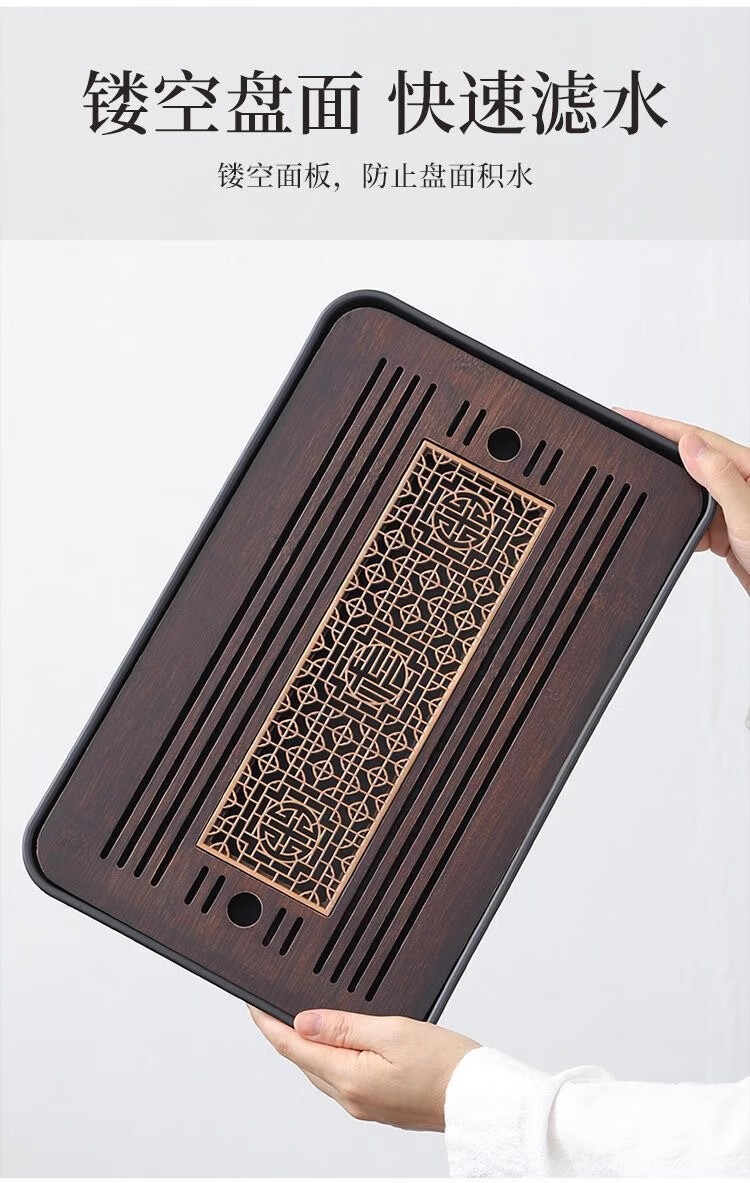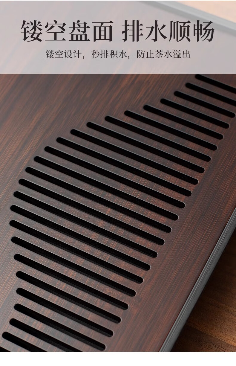 Zhenchu Ju Tea Tray Tray with Drainage Household Solid Bamboo Small Tea Table All-in-one Office Kung Fu Dry Soaking and Draining Tea Set Walnut Color Yuanshan 37*23.5