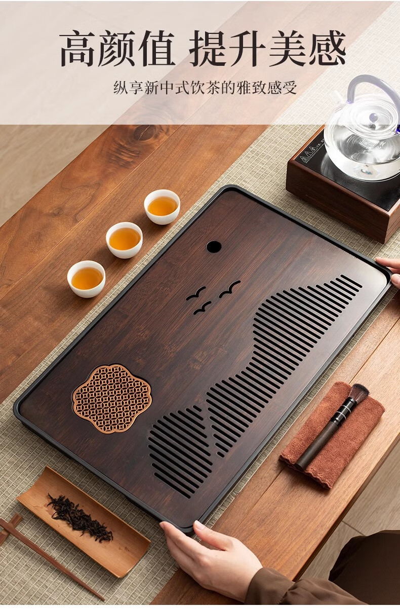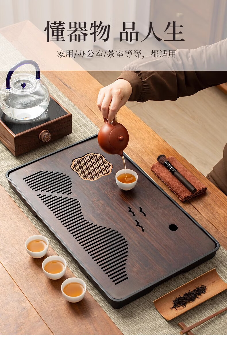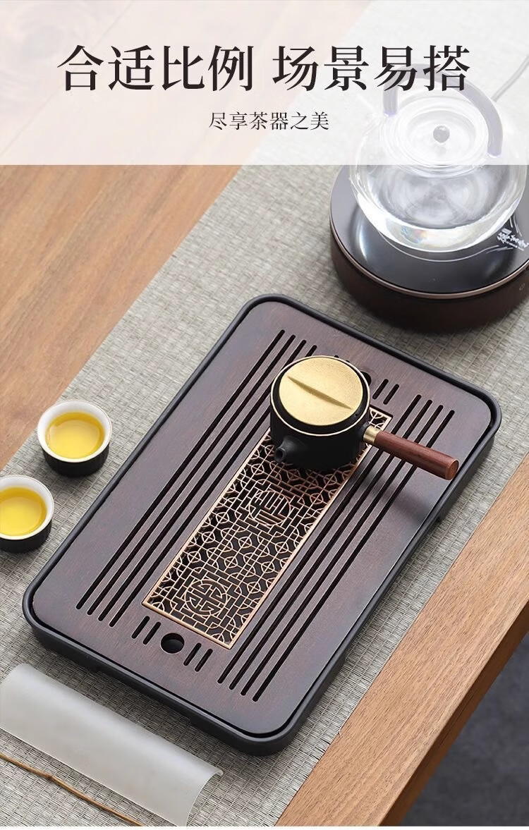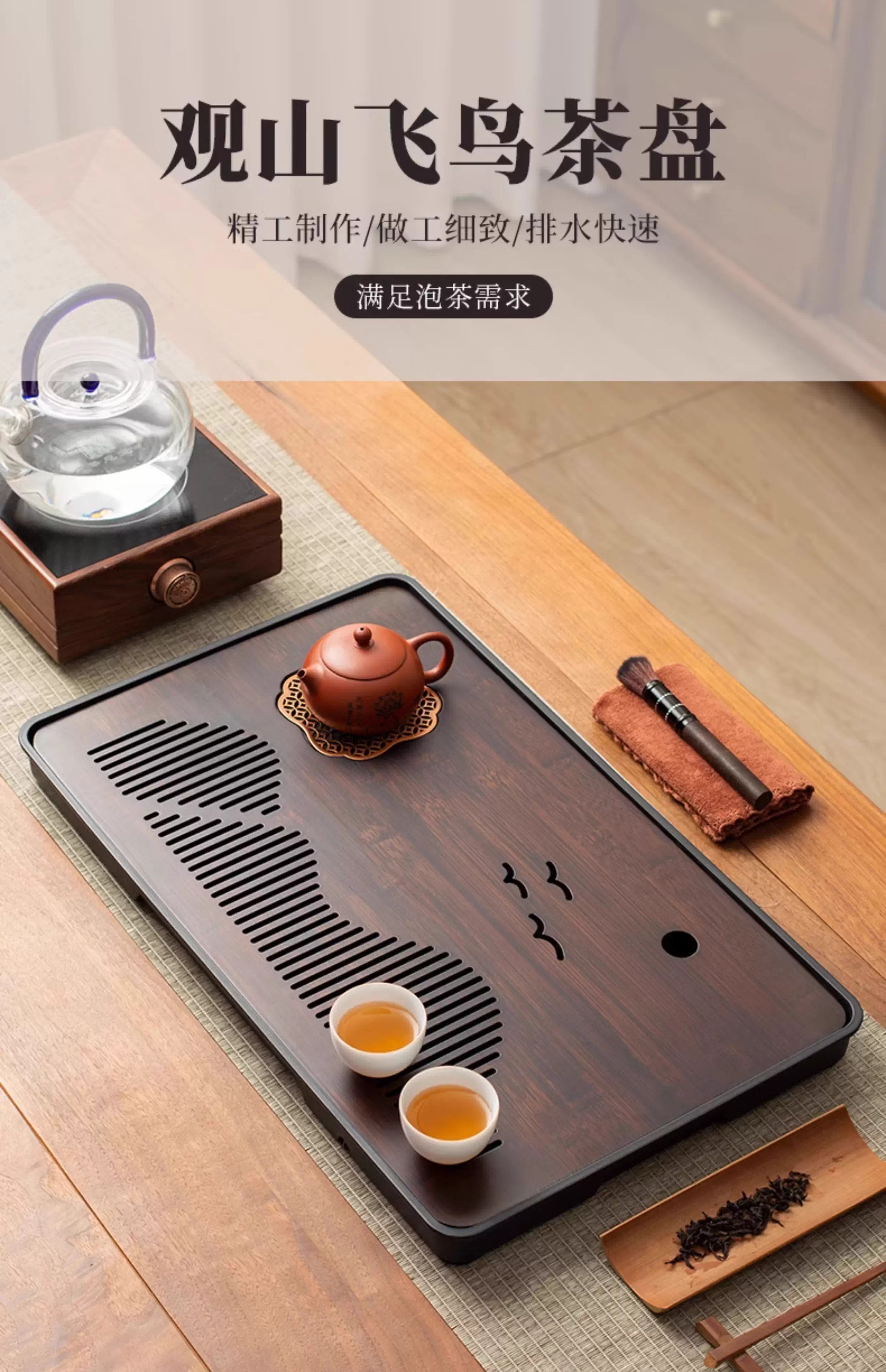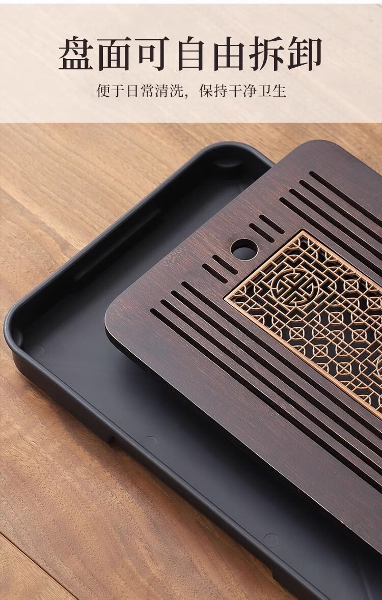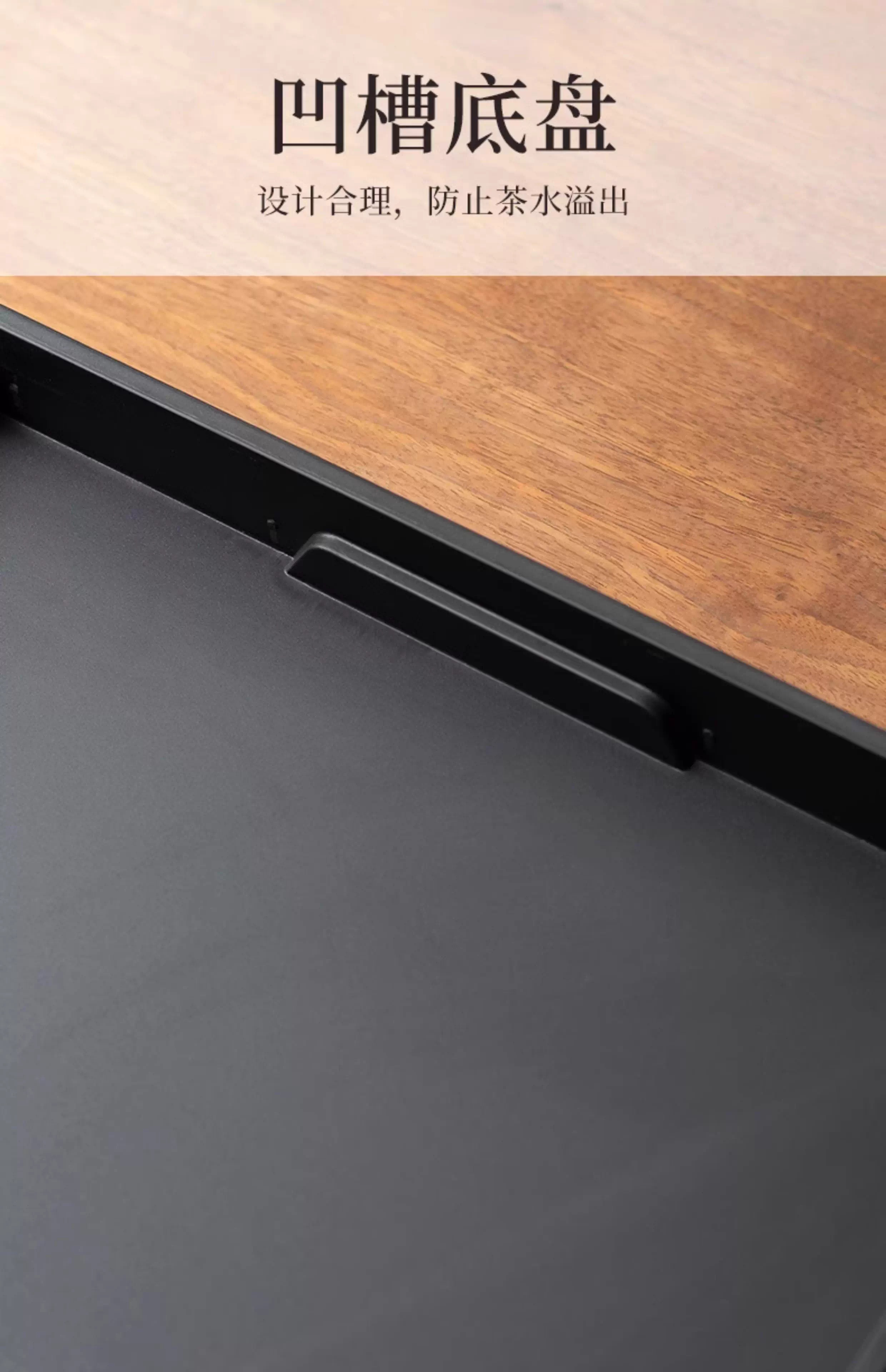 Zhenchu Ju Tea Tray Tray with Drainage Household Solid Bamboo Small Tea Table All-in-one Office Kung Fu Dry Soaking and Draining Tea Set Walnut Color Yuanshan 37*23.5
